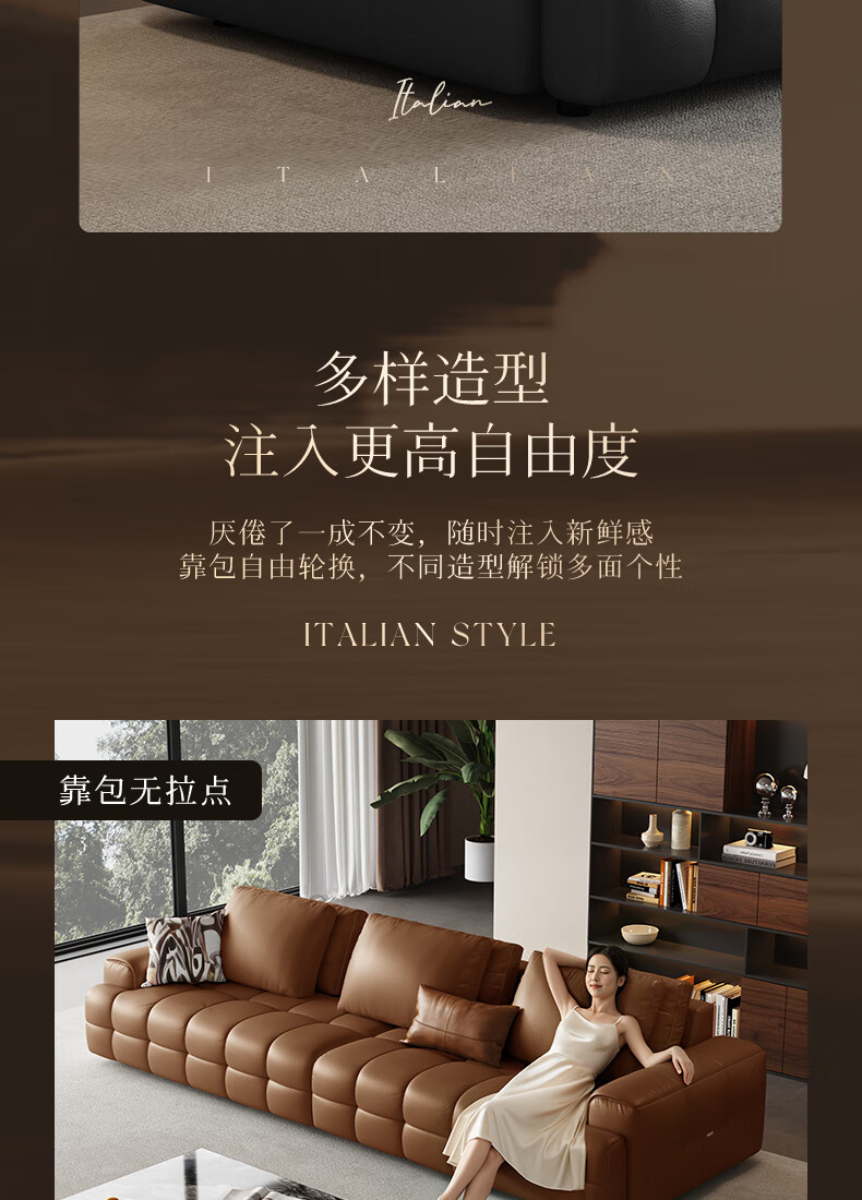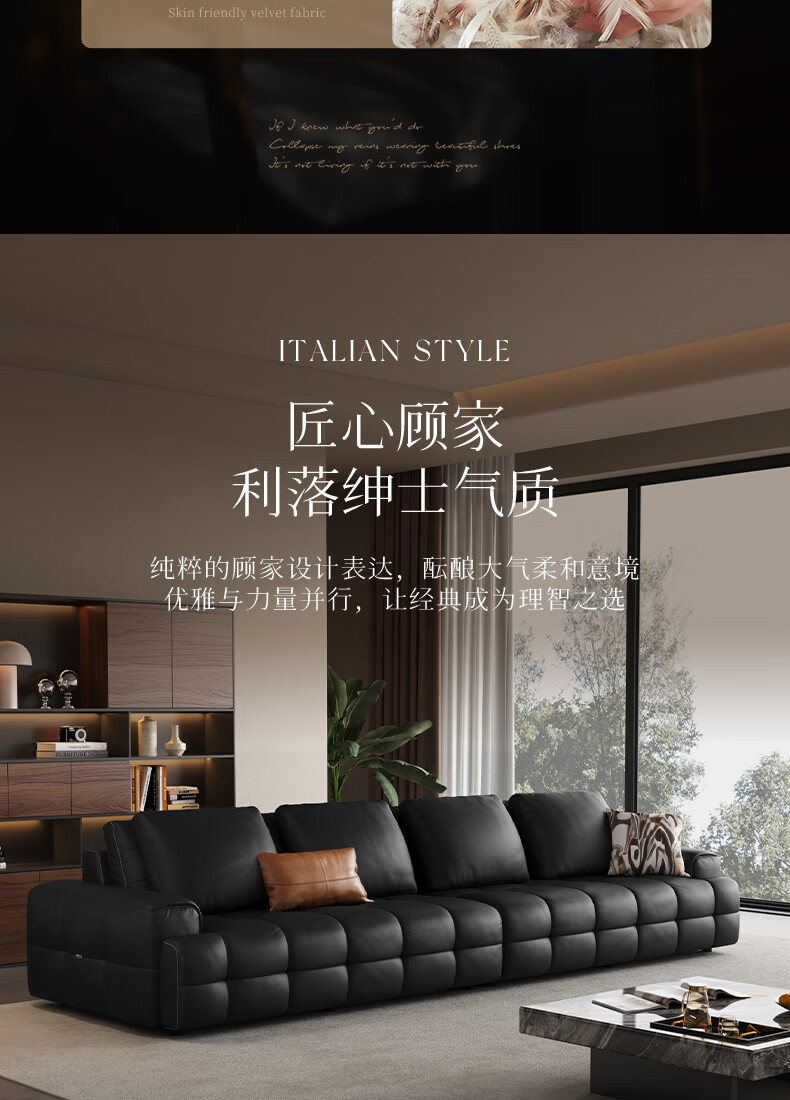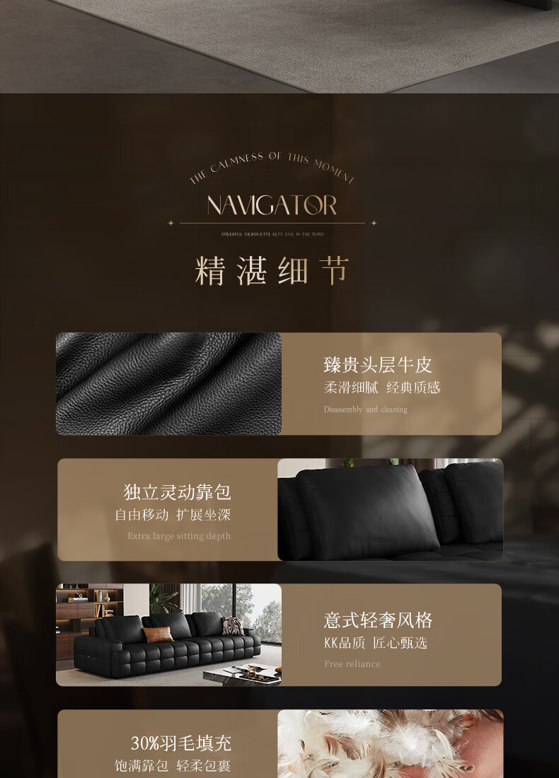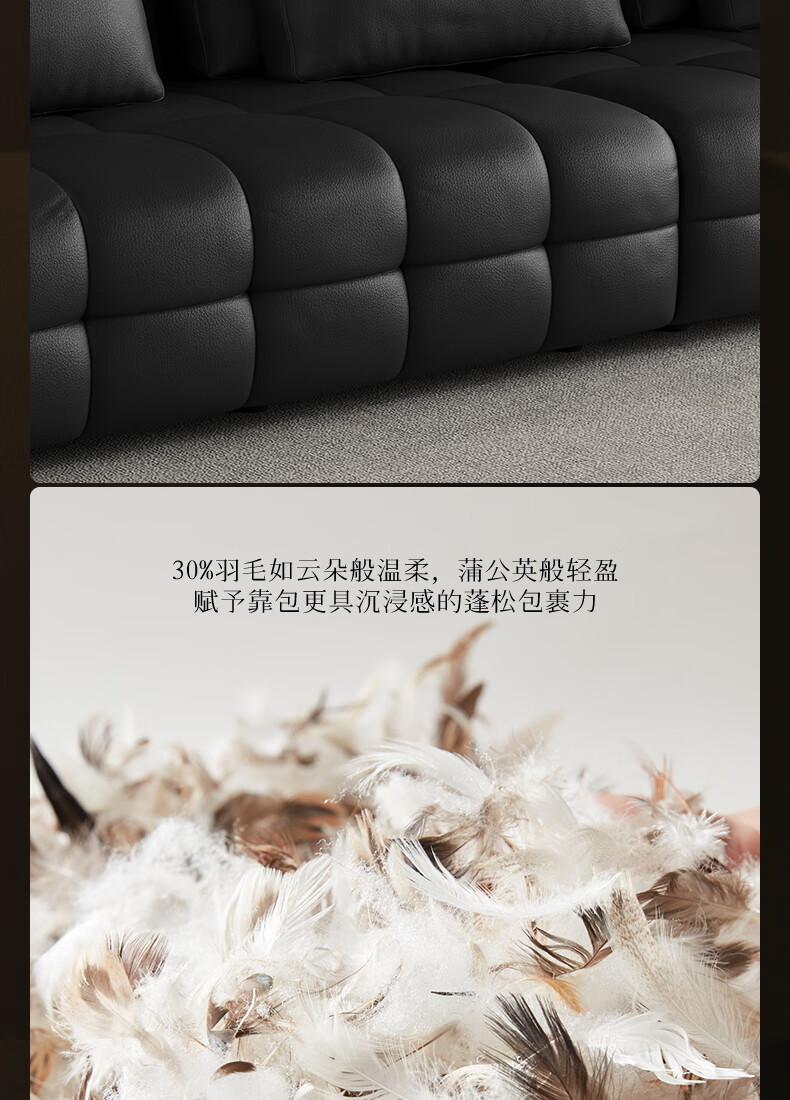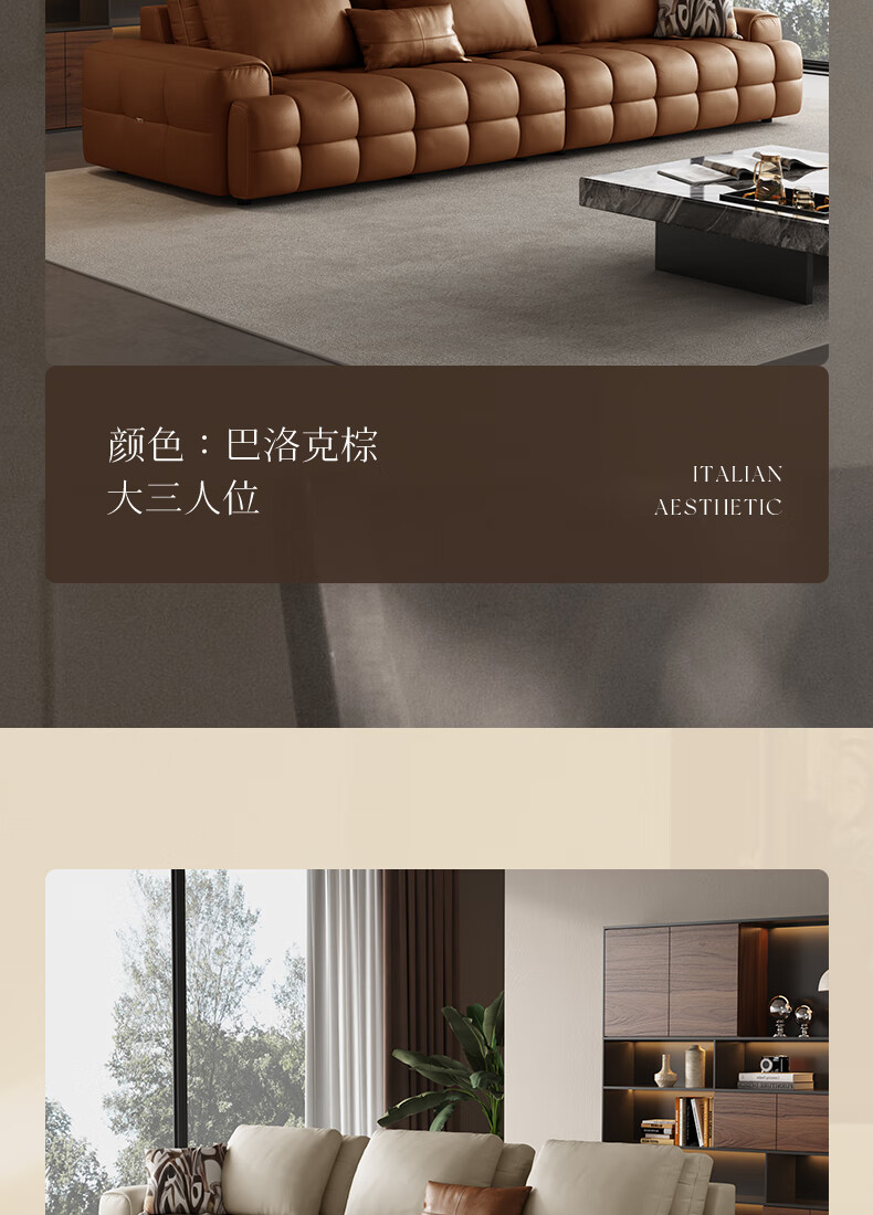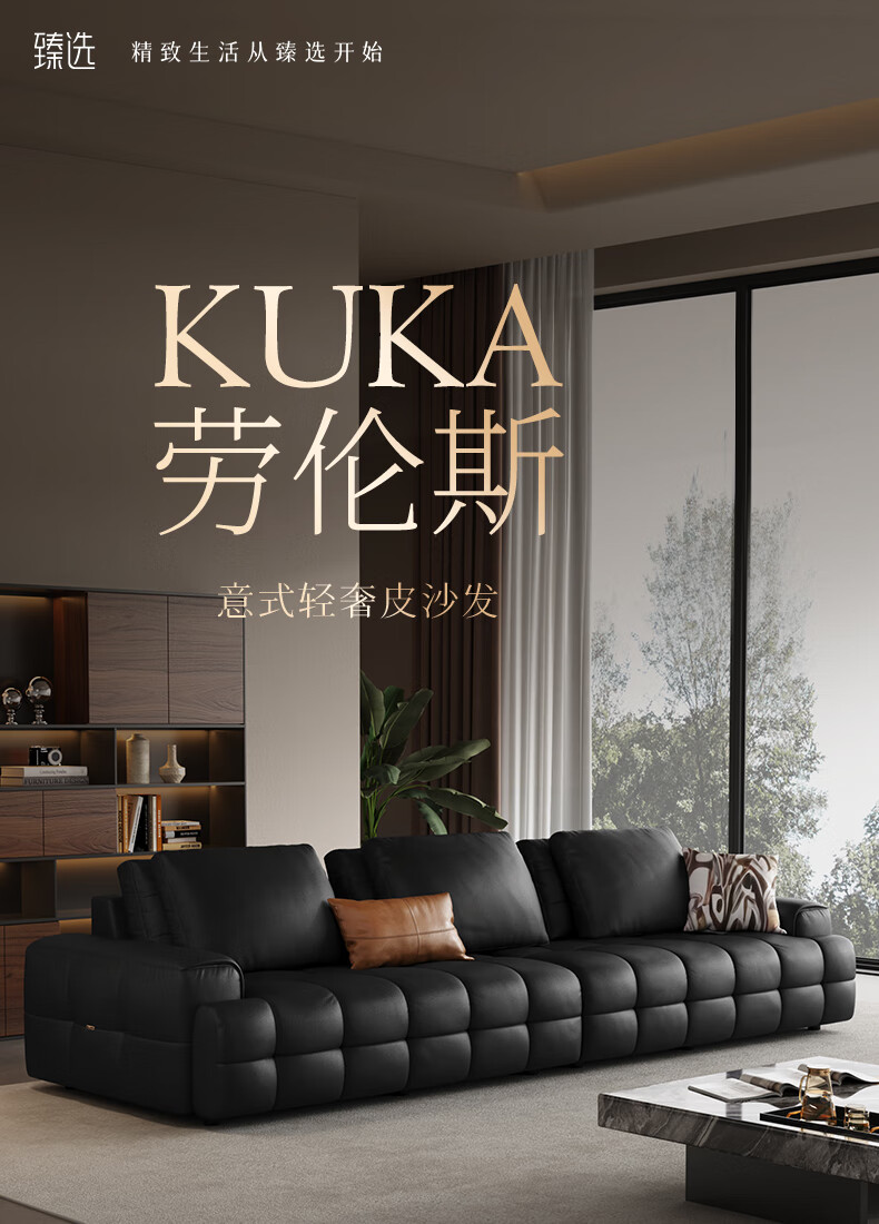 顾家家居(KUKA)【头层牛皮】劳伦斯沙发客厅大户型羽毛填充1286棕四人位3.36m