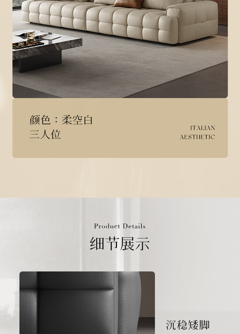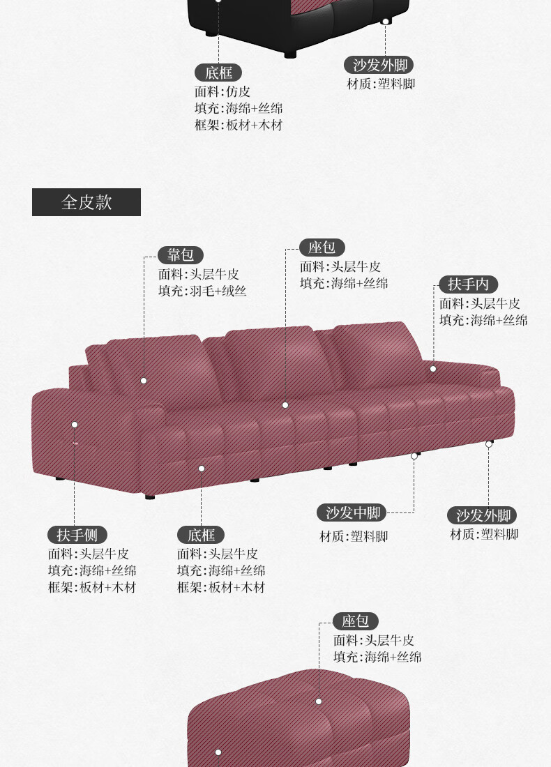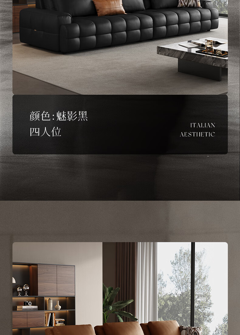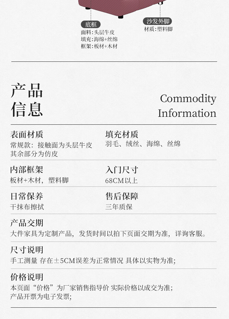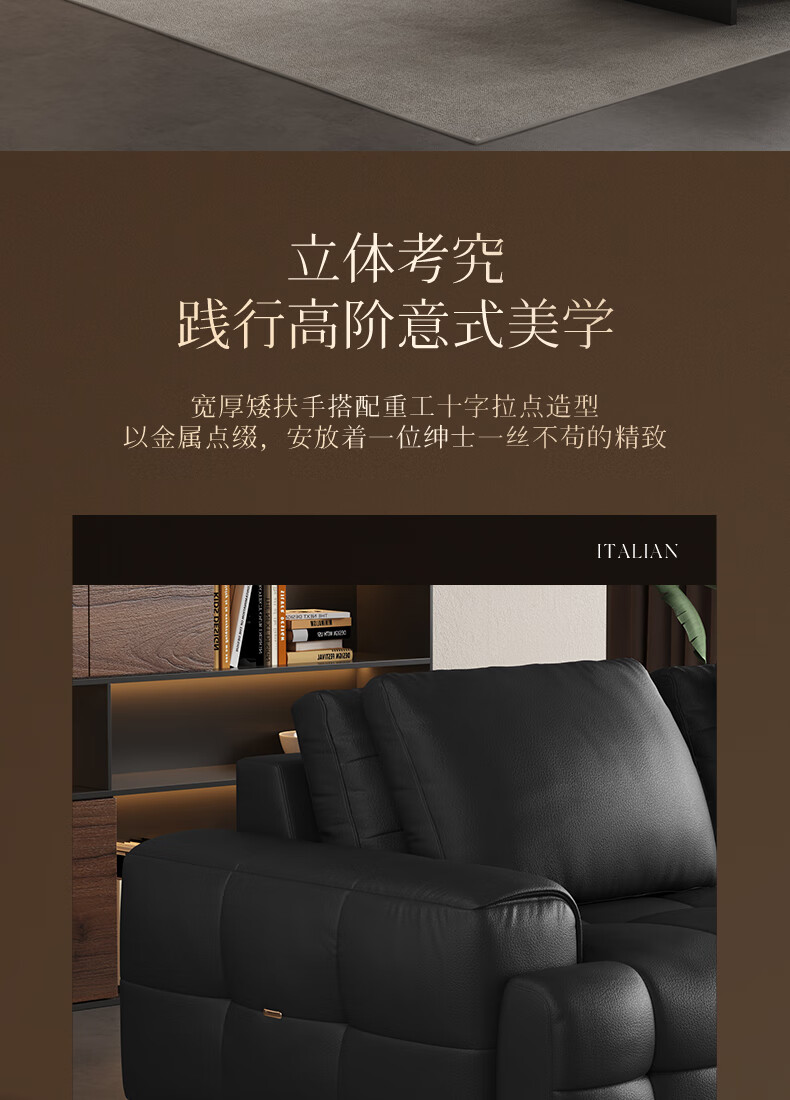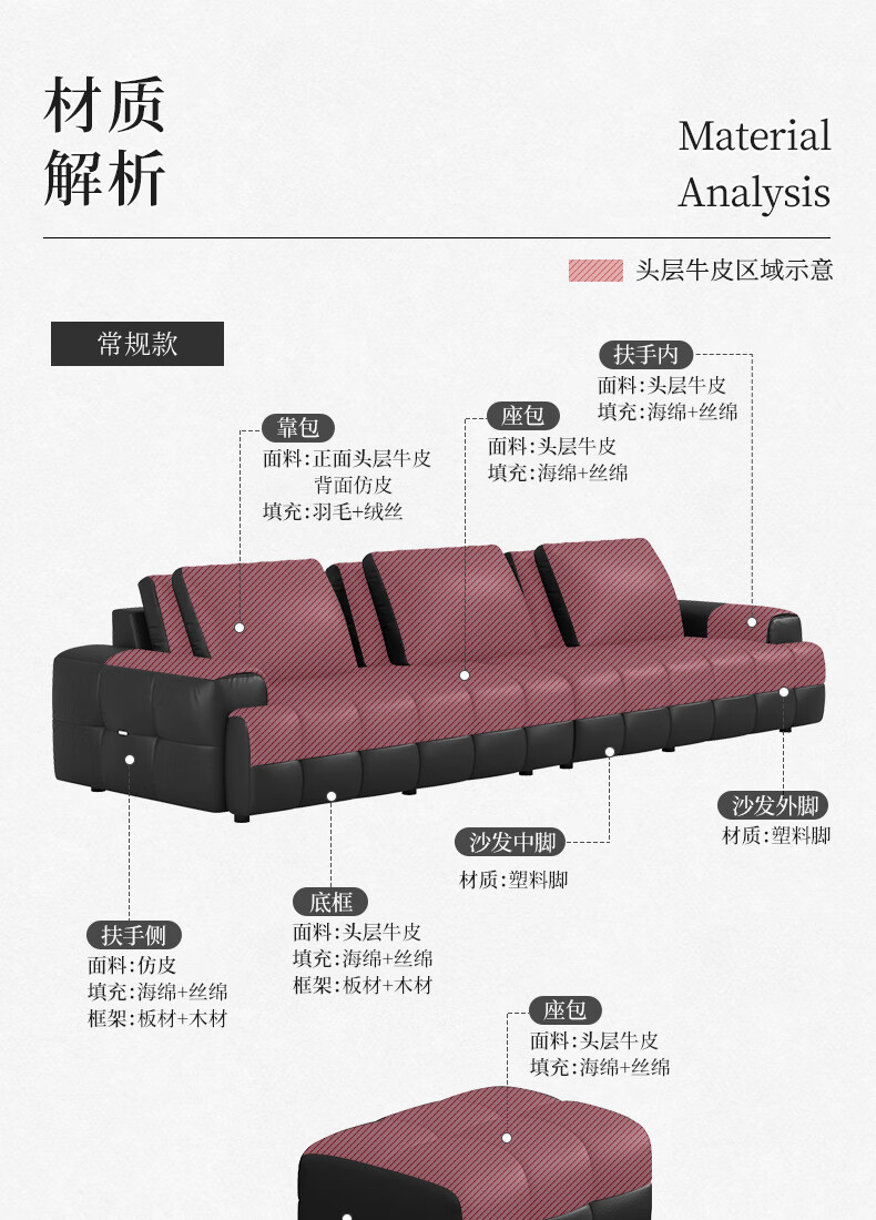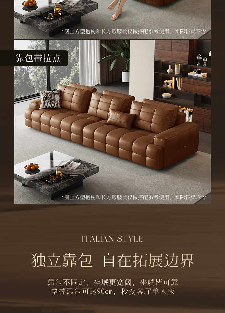 顾家家居(KUKA)【头层牛皮】劳伦斯沙发客厅大户型羽毛填充1286棕四人位3.36m