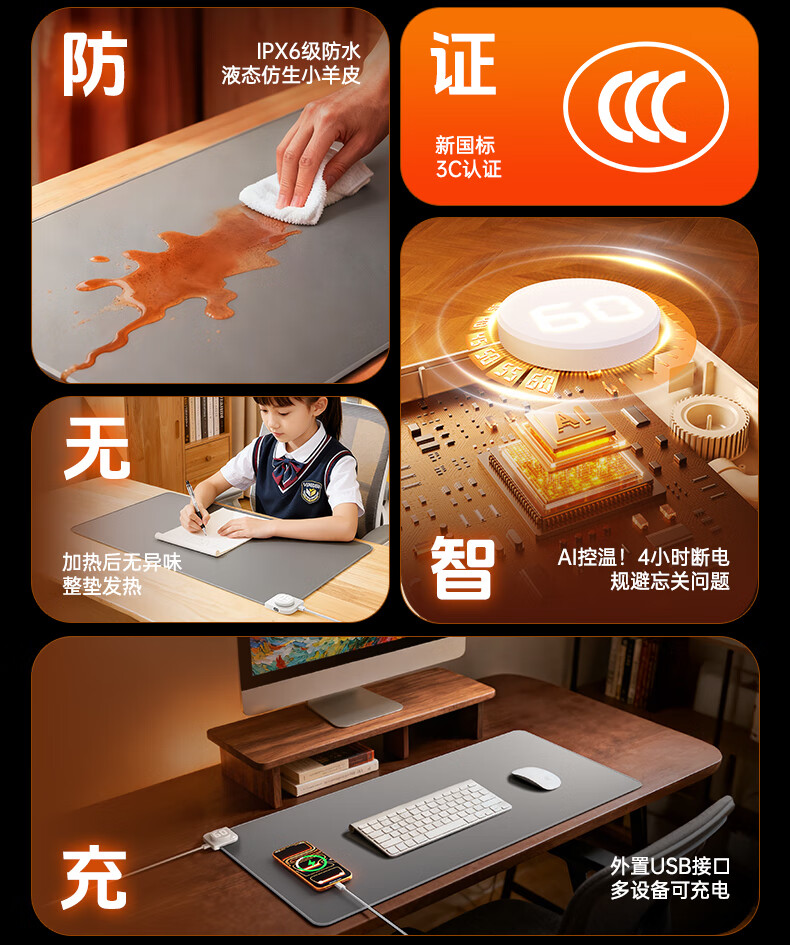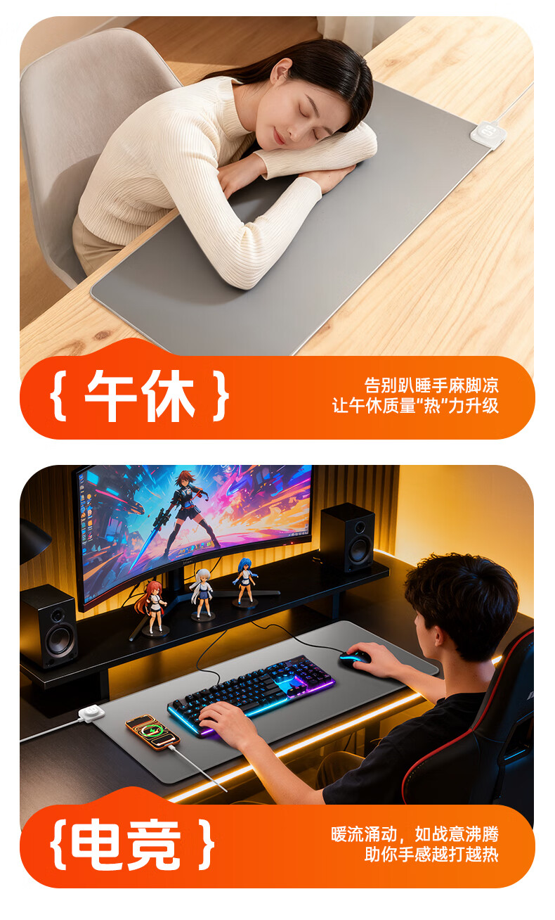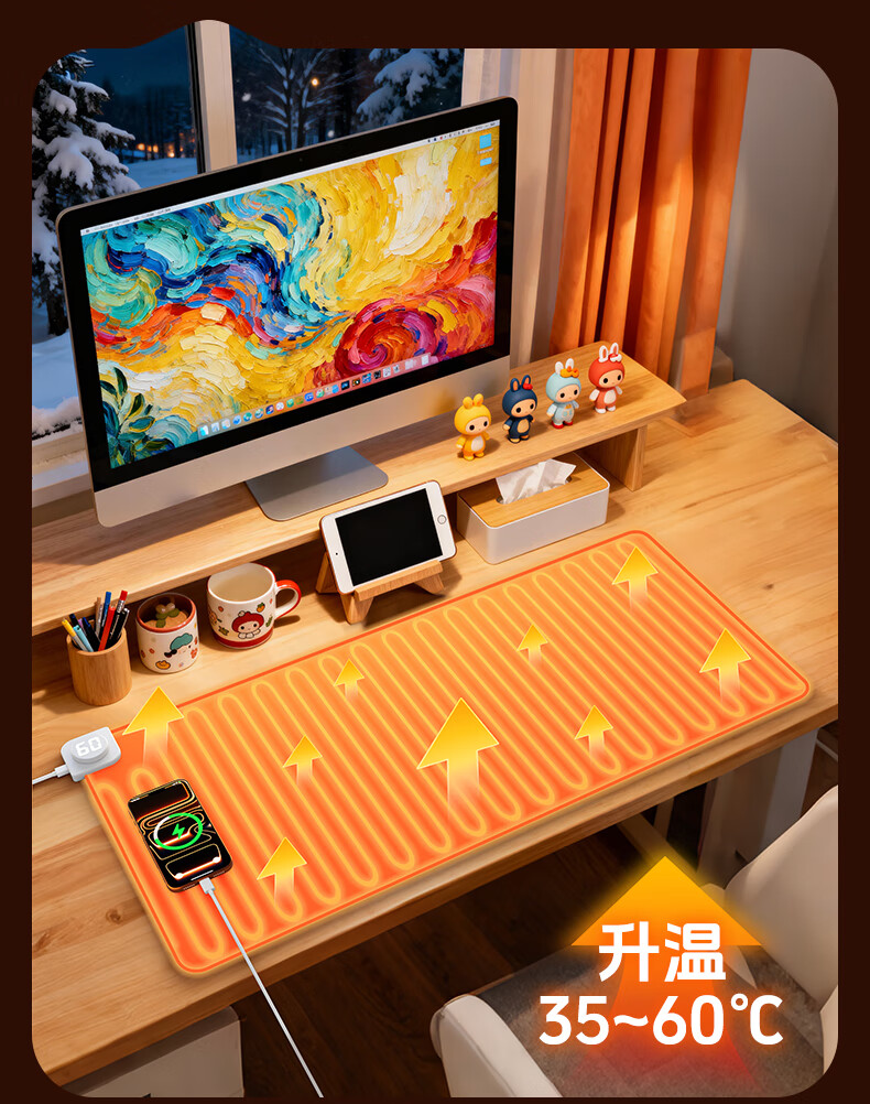 索耐摩【60℃暖全身|一秒升温】加热鼠标垫 加热桌垫鼠标垫加热办公室超大加长暖桌发热垫学生学习暖手垫