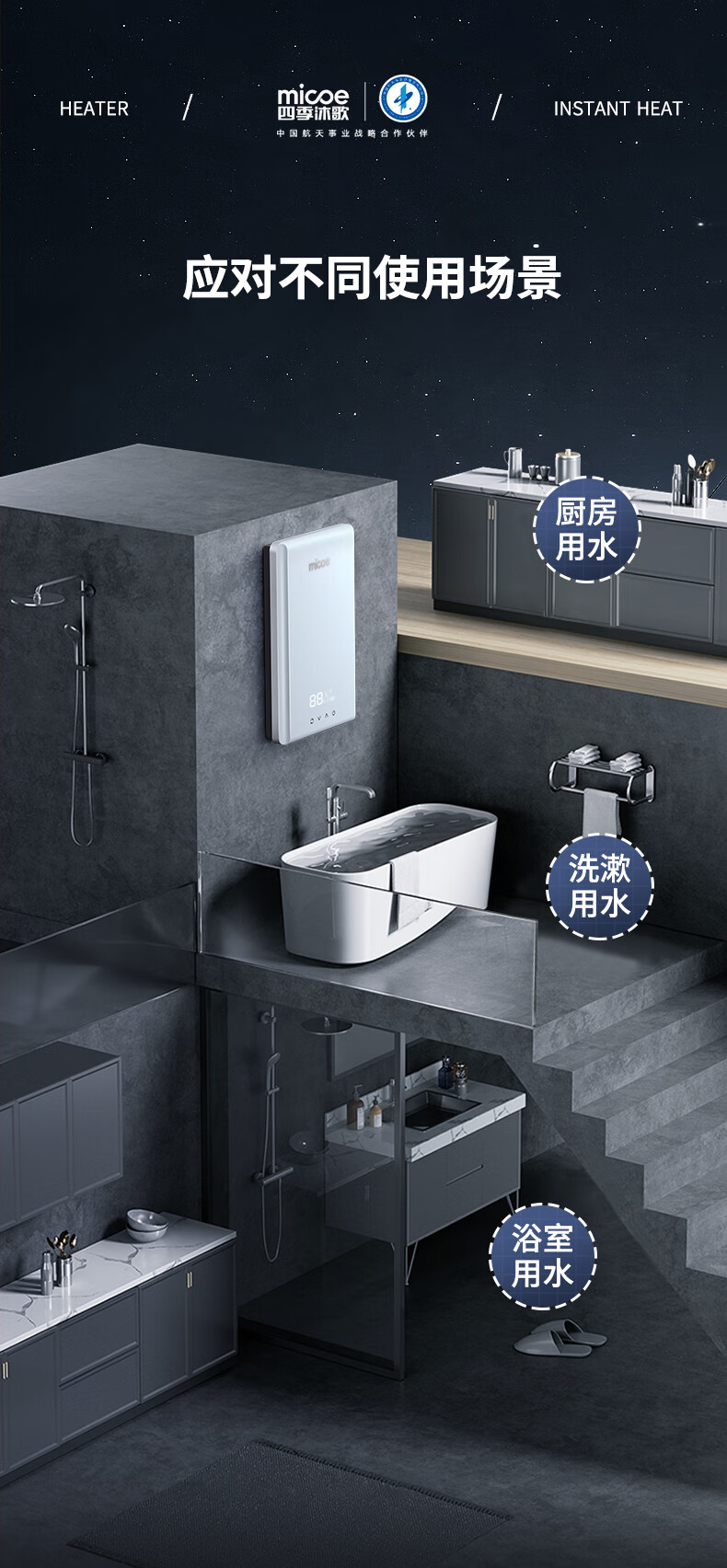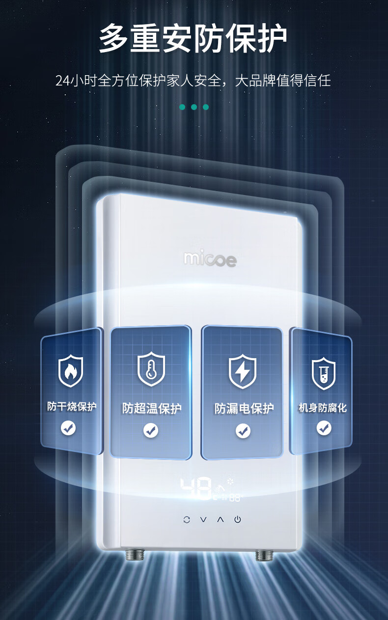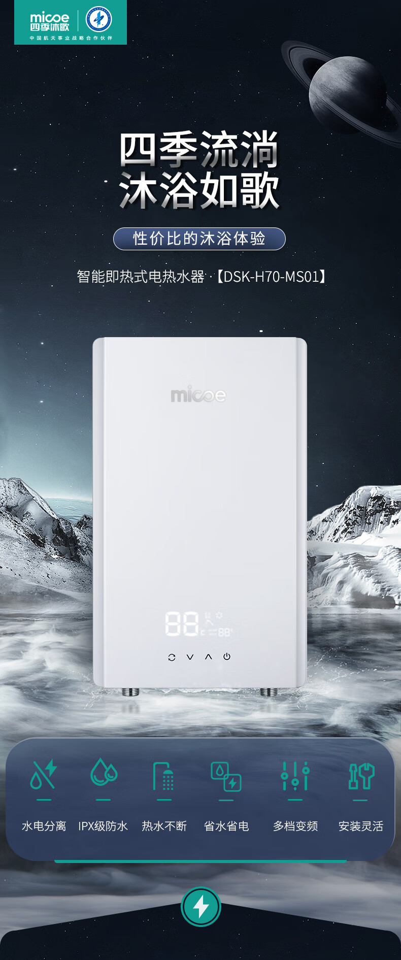 四季沐歌(MICOE)电热水器即热式 家用快热洗澡淋浴恒温免储水超薄过水速热变频智能烧水加热器 上门安装 DSK-H70-MS01【7000W变频】