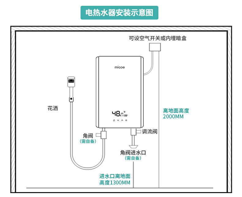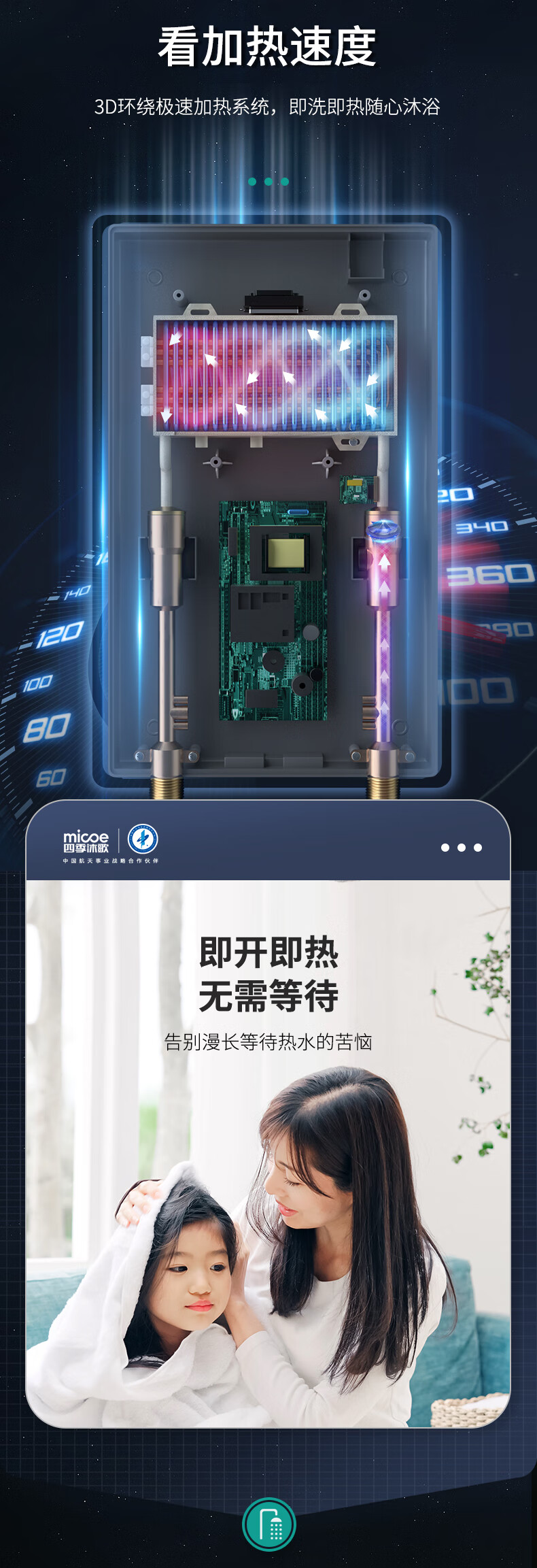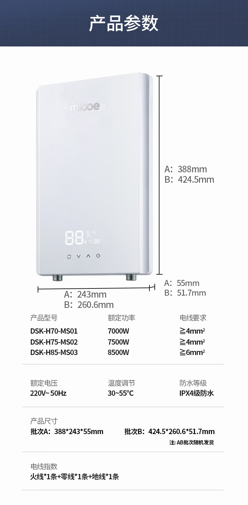 四季沐歌(MICOE)电热水器即热式 家用快热洗澡淋浴恒温免储水超薄过水速热变频智能烧水加热器 上门安装 DSK-H70-MS01【7000W变频】
