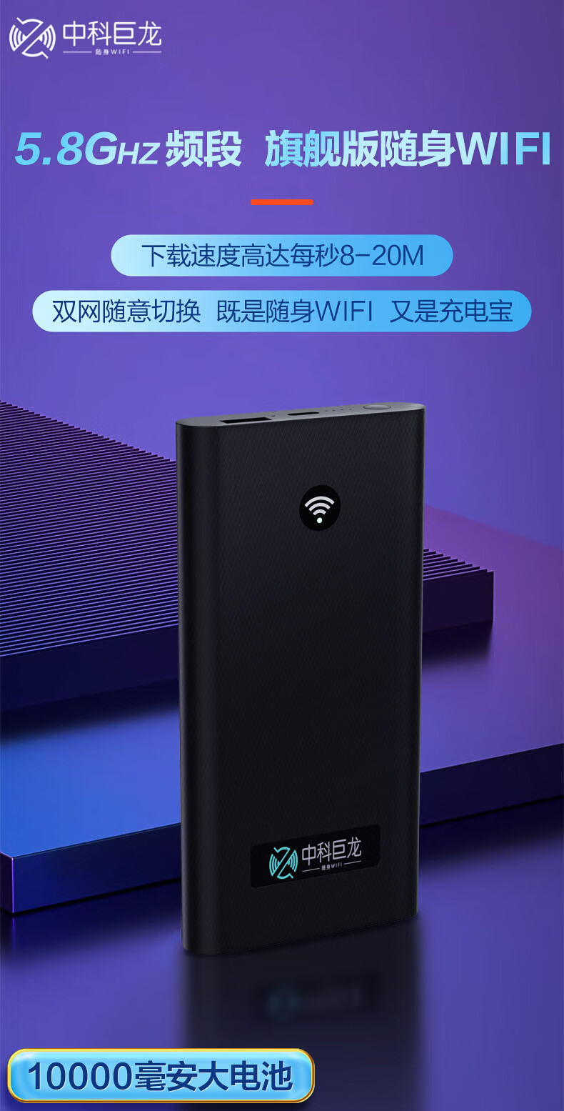 中科巨龙随身wifi移动无线wifi6无线网免插卡5Ghz无限流量2025款无线网卡流量随行便携式上网神器 旗舰款双频wifi6+5Ghz+10000毫安电池
