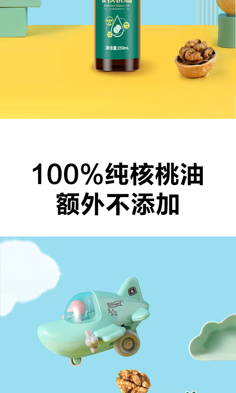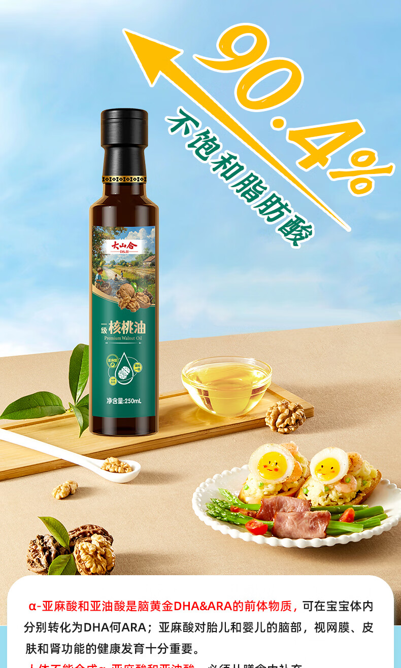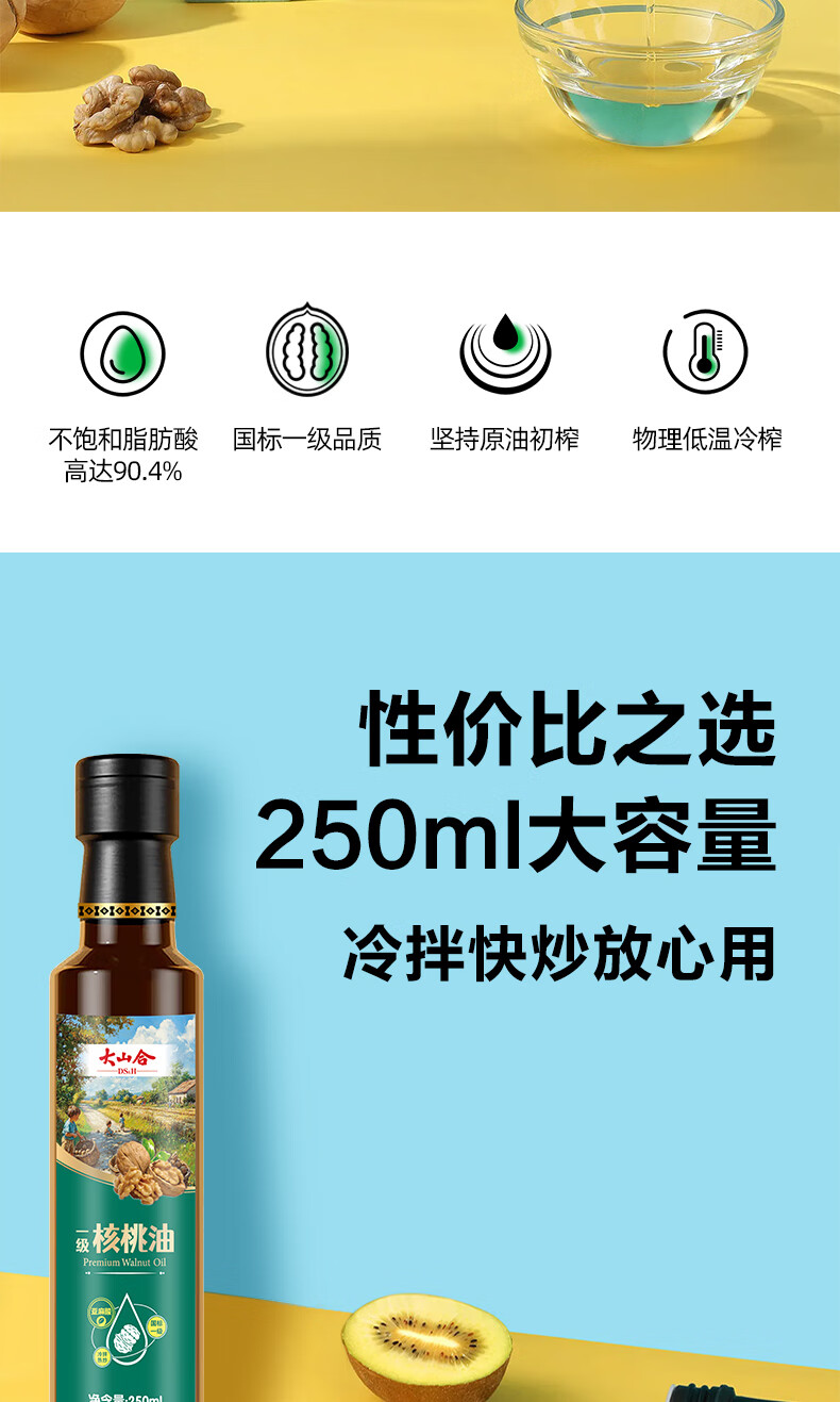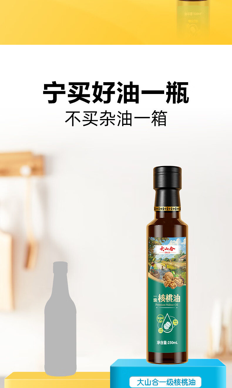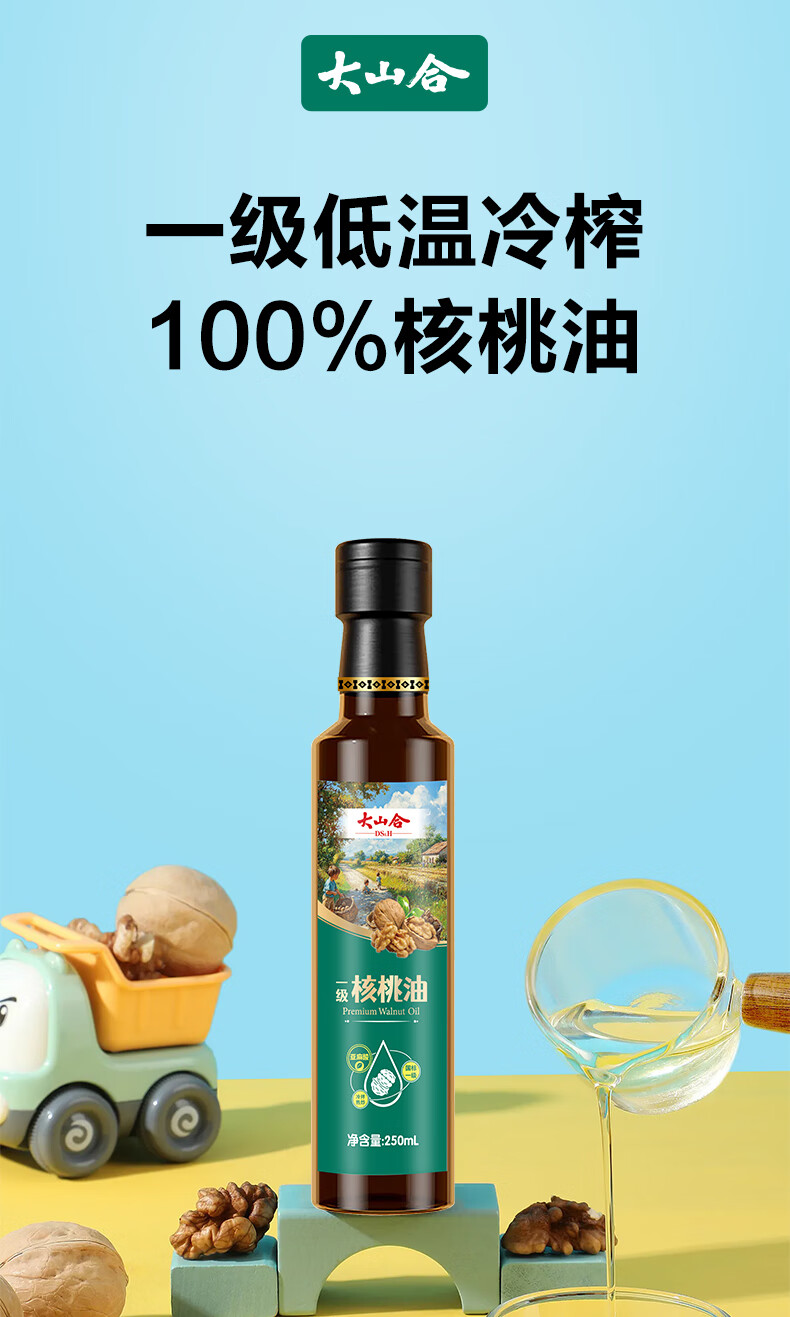 大山合 一级纯核桃油250ml低温冷榨食用油 炒菜营养6个月以上婴幼儿辅食
