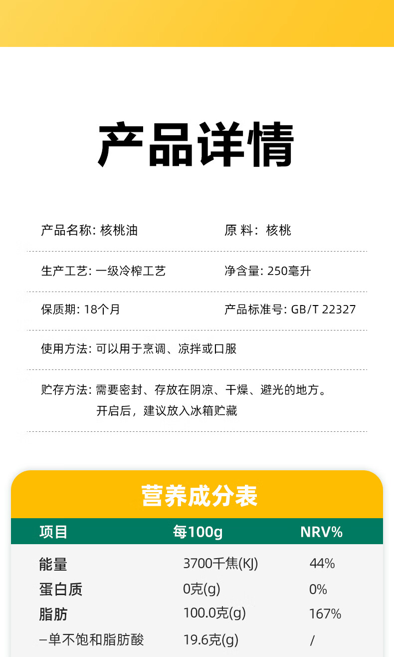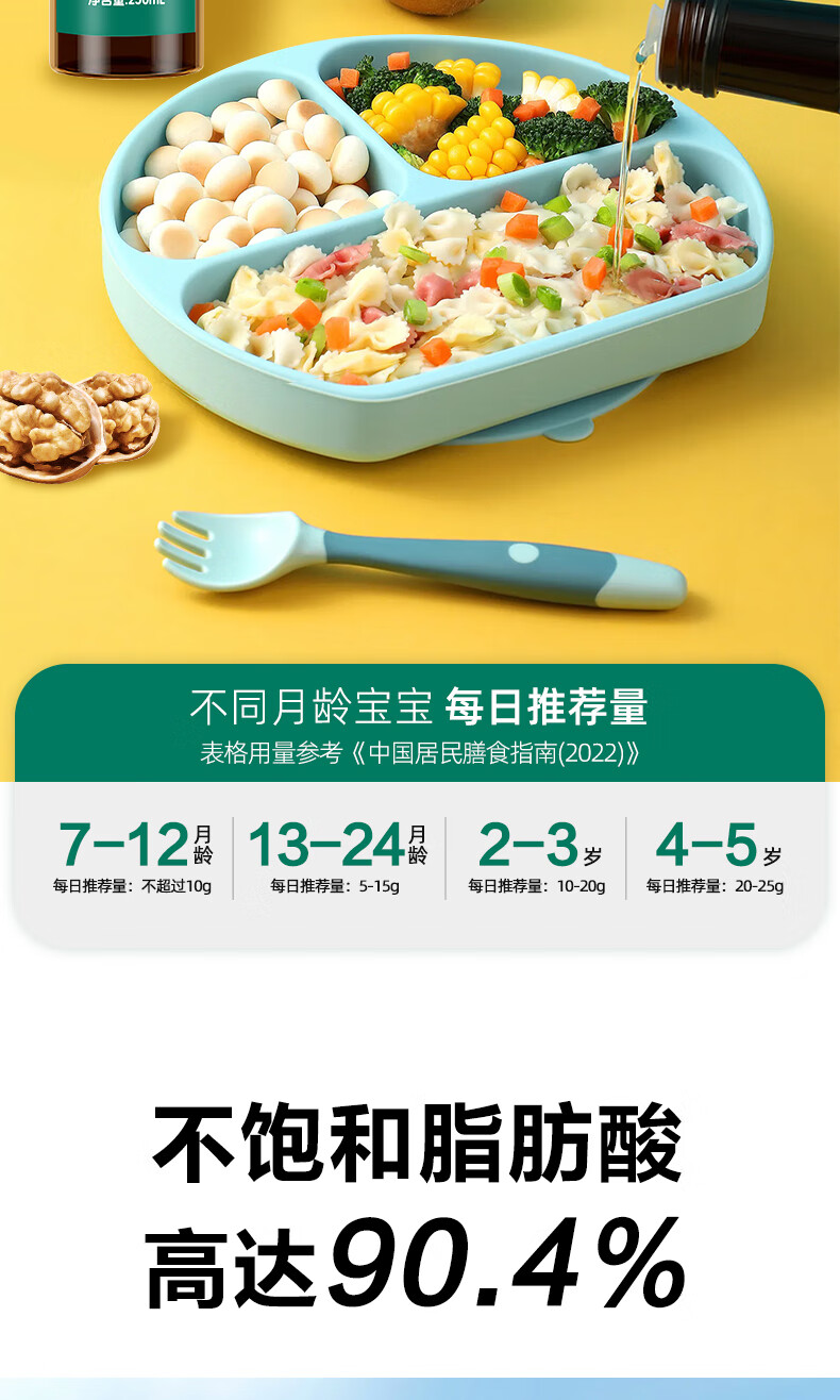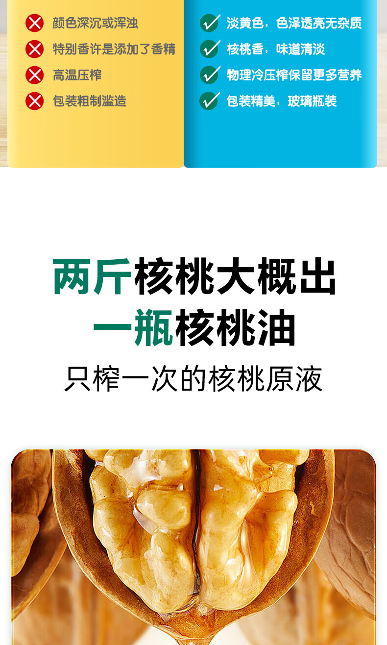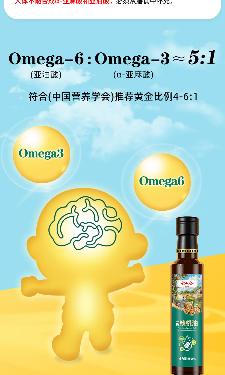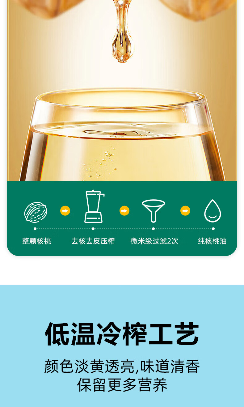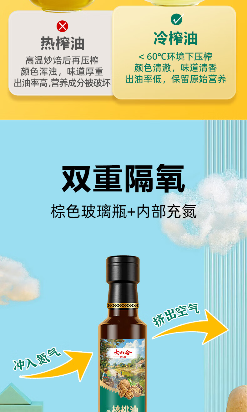 大山合 一级纯核桃油250ml低温冷榨食用油 炒菜营养6个月以上婴幼儿辅食