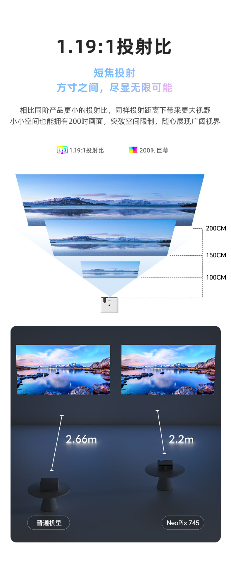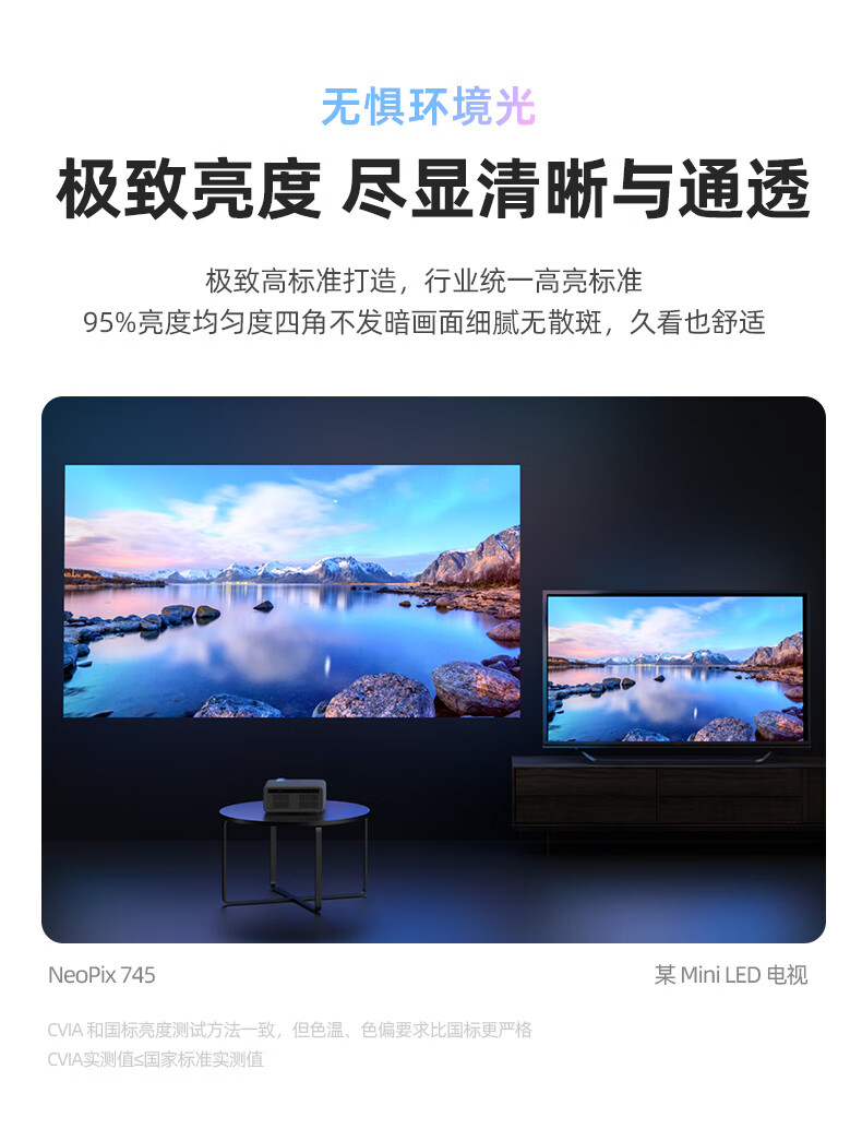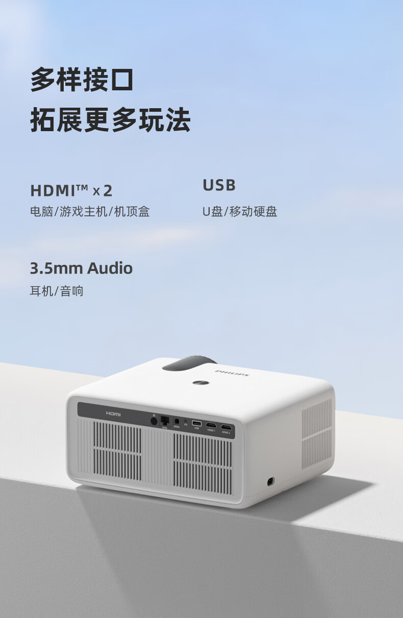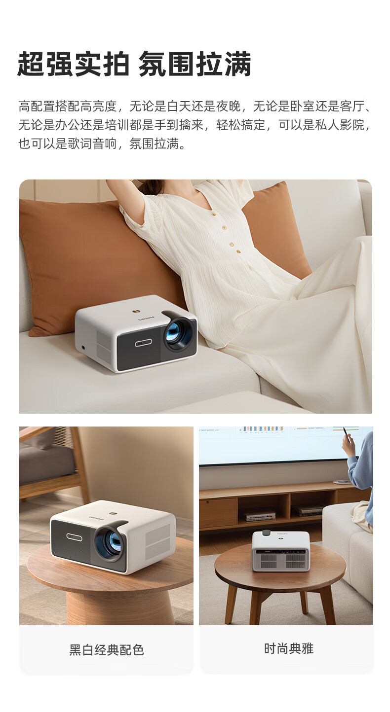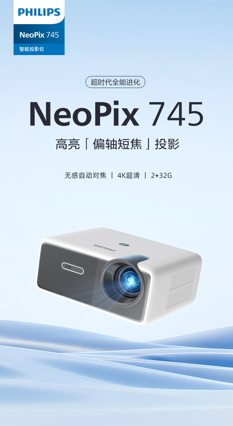 飞利浦(PHILIPS)NeoPix 745投影仪家用 办公培训游戏投影机 智能家庭影院电视(无感自动对焦 超清高亮直投)