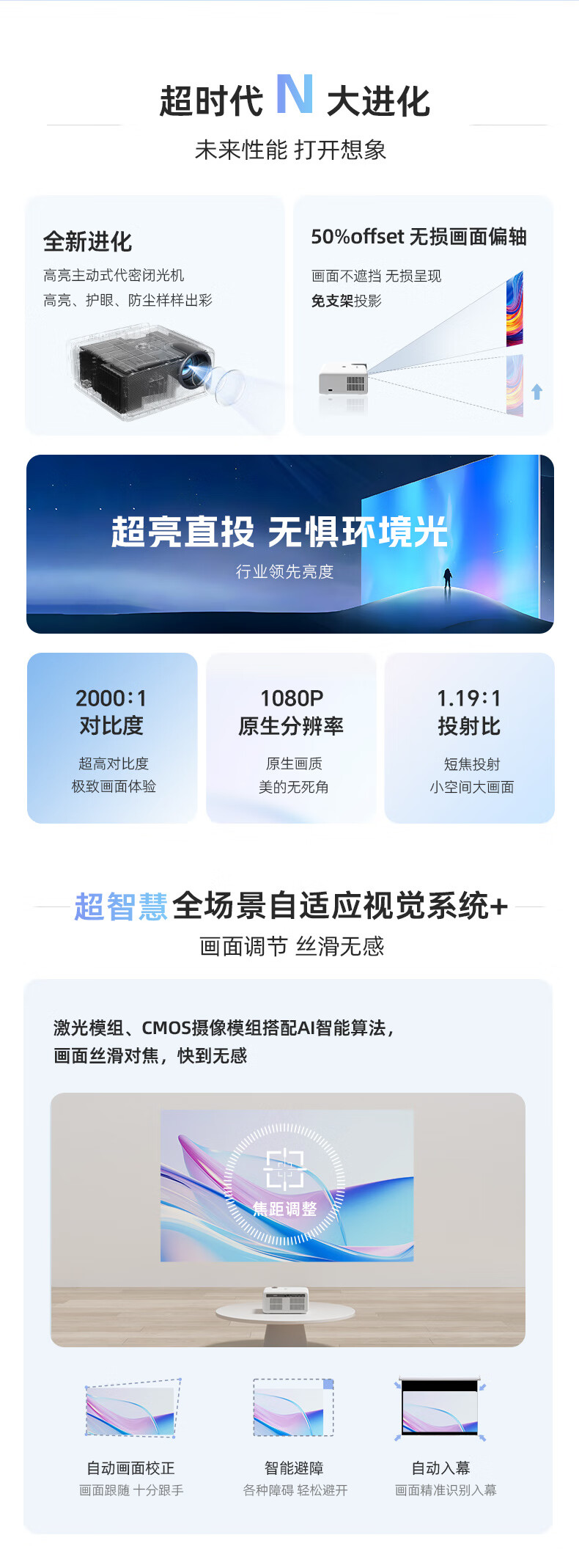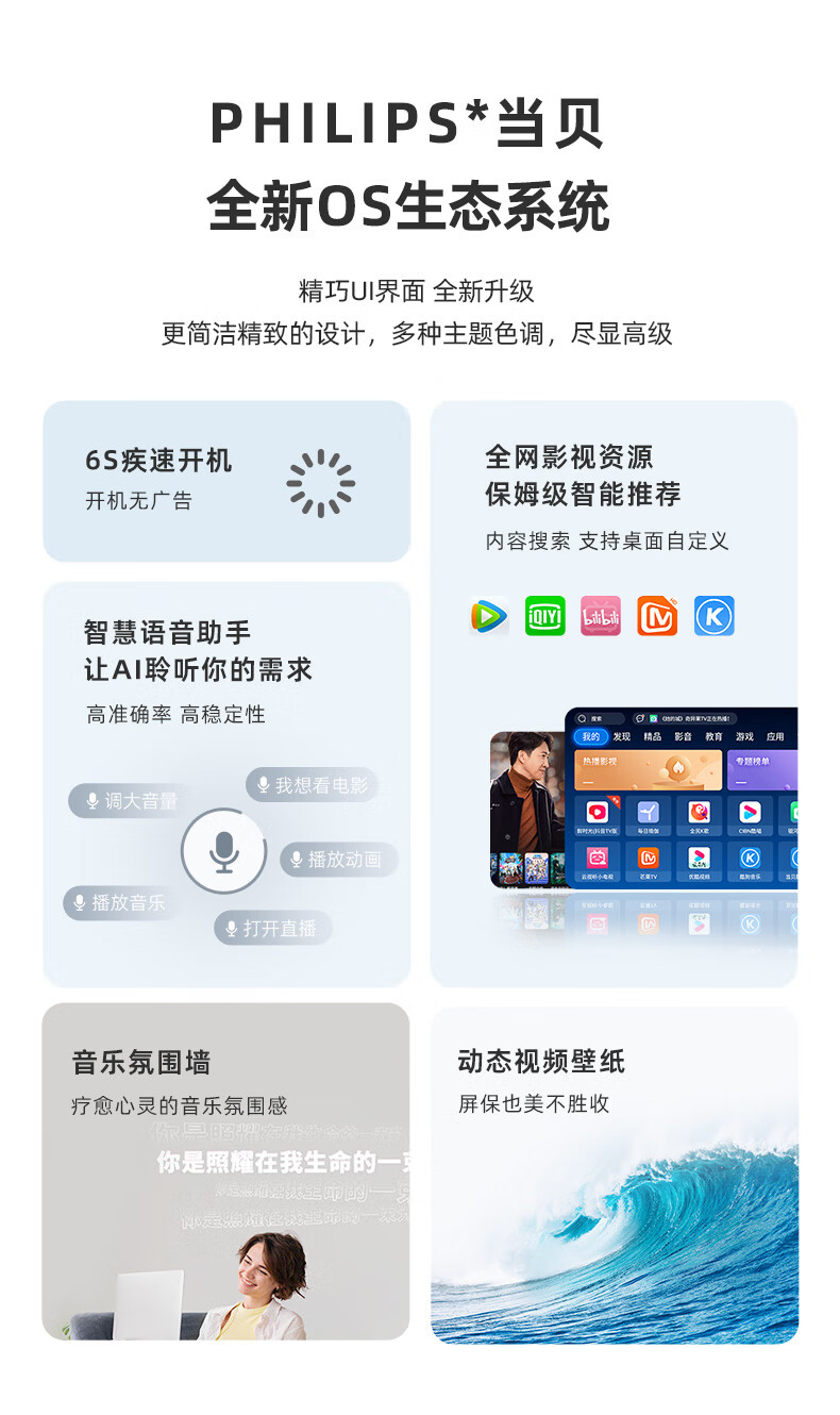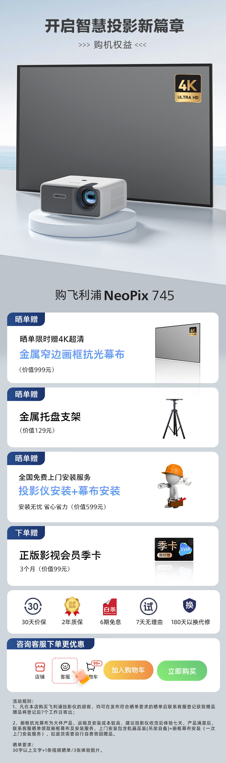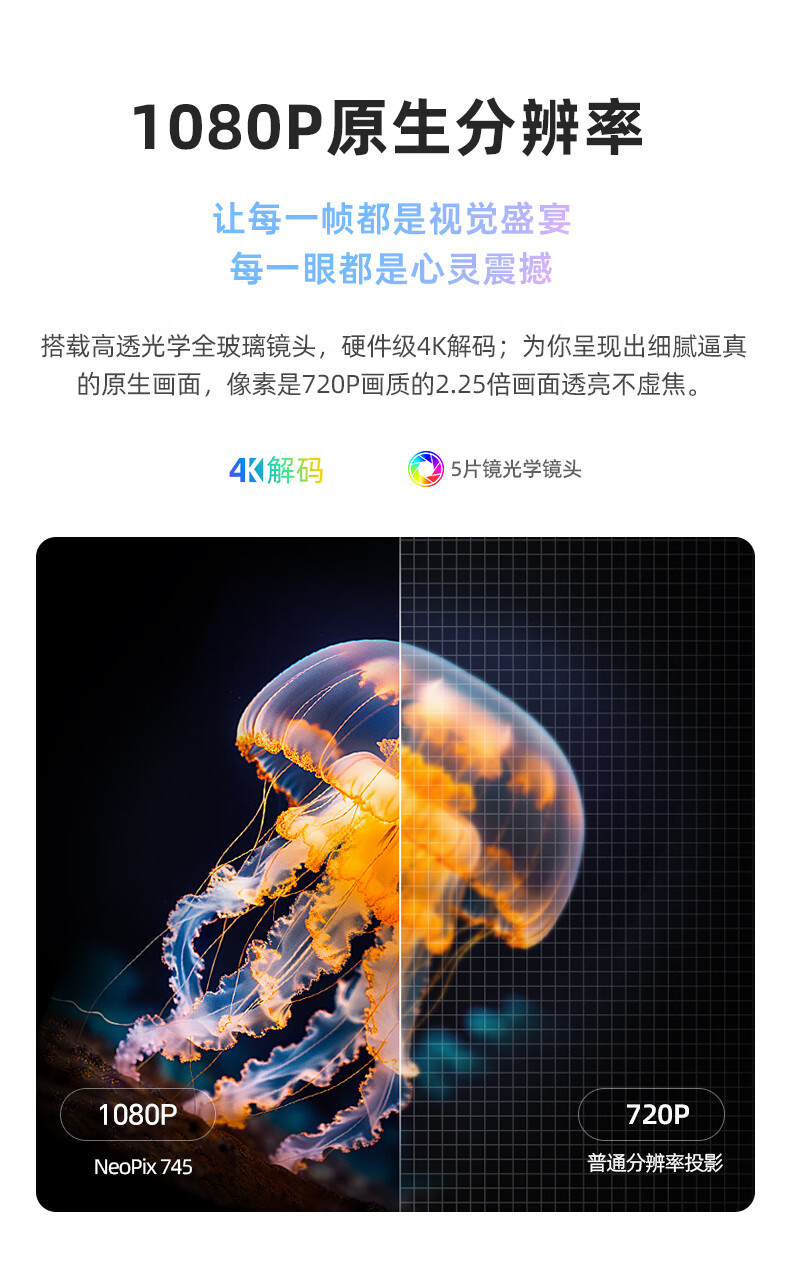 飞利浦(PHILIPS)NeoPix 745投影仪家用 办公培训游戏投影机 智能家庭影院电视(无感自动对焦 超清高亮直投)