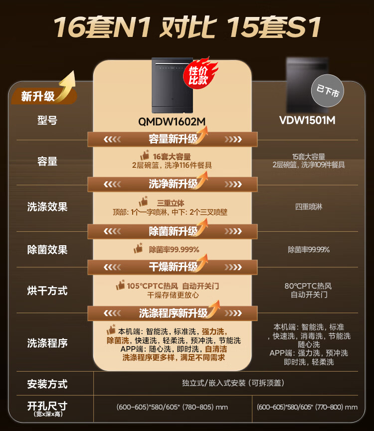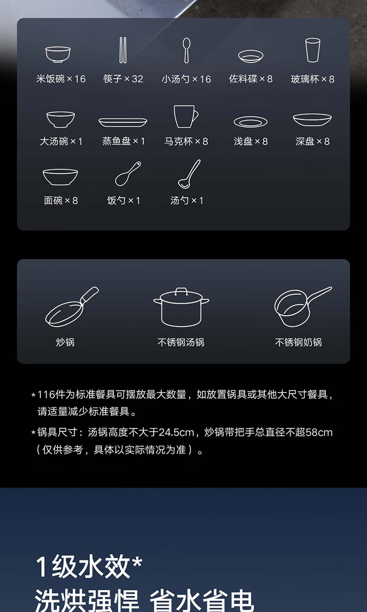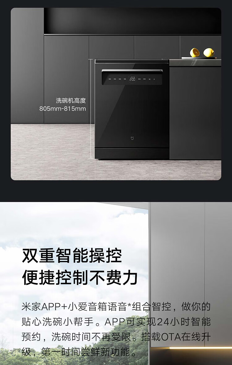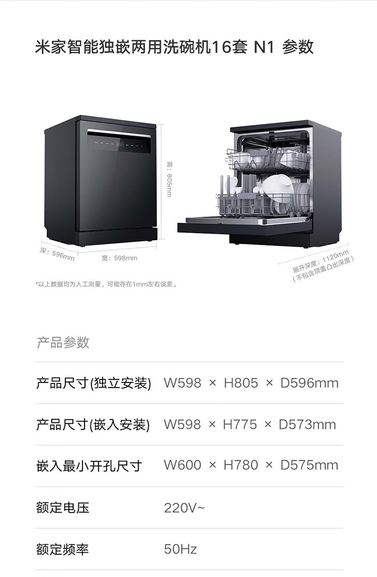 米家小米洗碗机16套N1【智能开关门烘干】大容量嵌入式独立式独嵌两用一级水效QMDW1602M