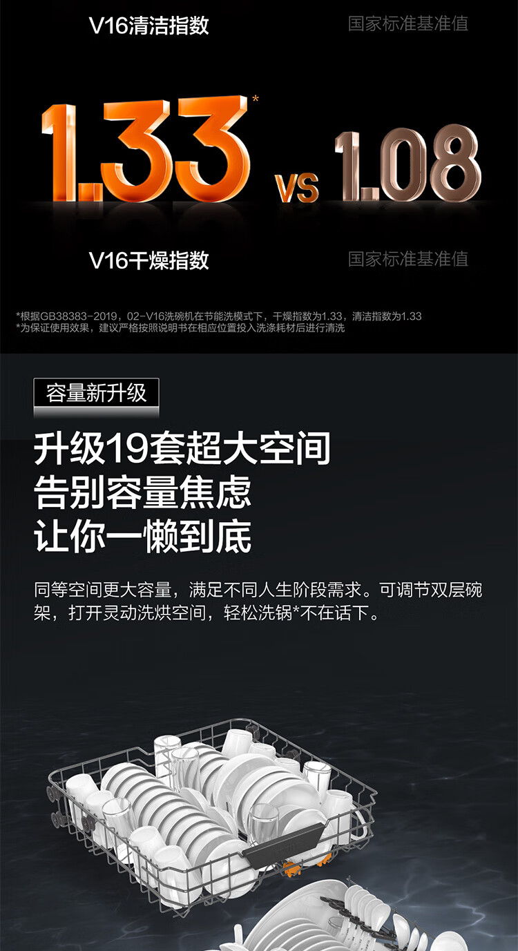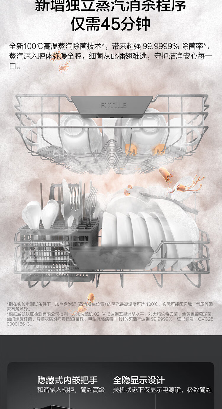方太(FOTILE)【重磅新品】嵌入式家用洗碗机 熊猫系列全新升级19套大容量 独立蒸汽消杀02-V16 国家补贴