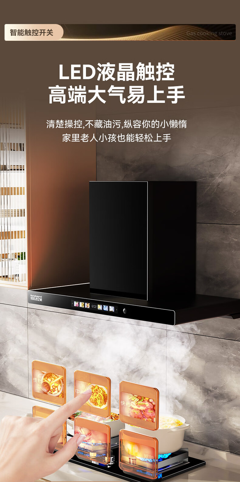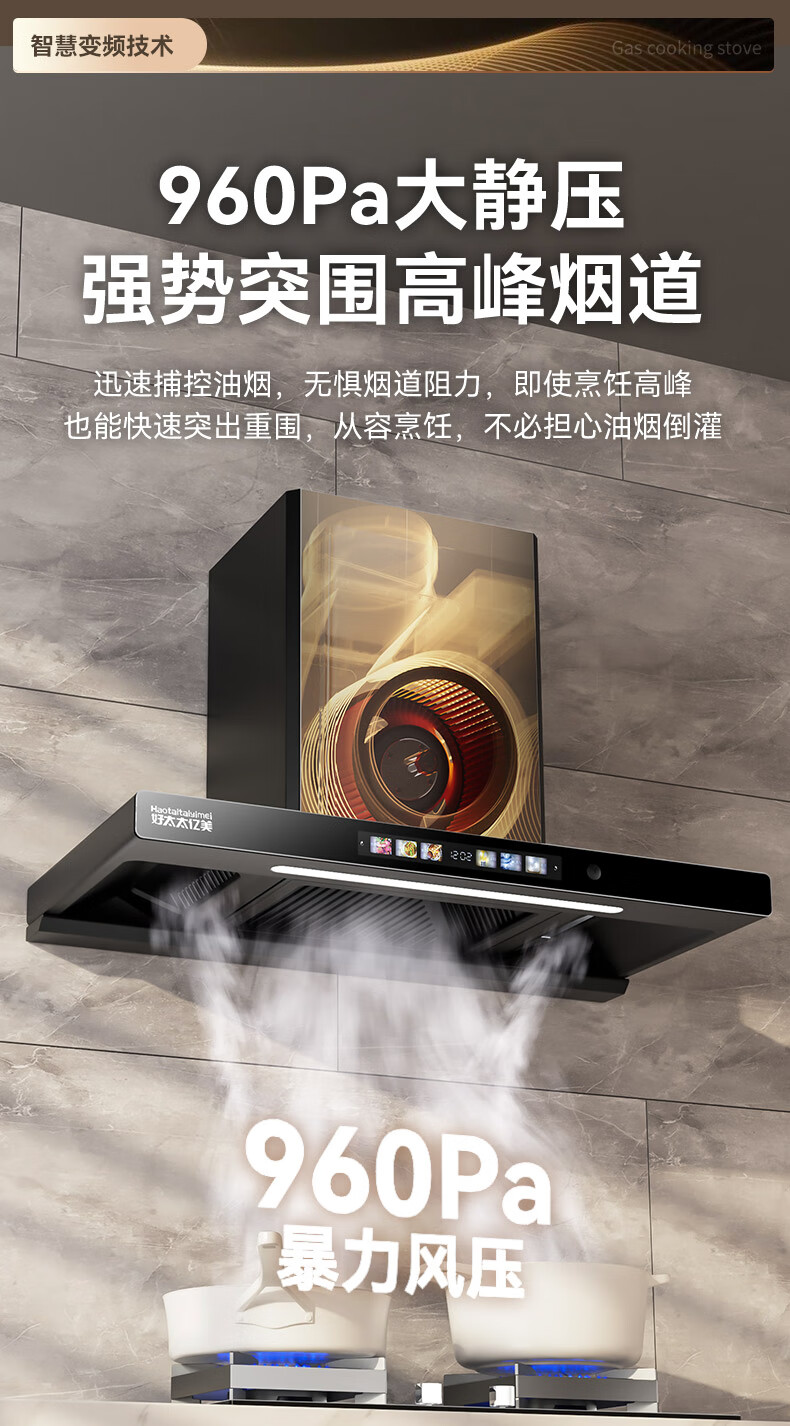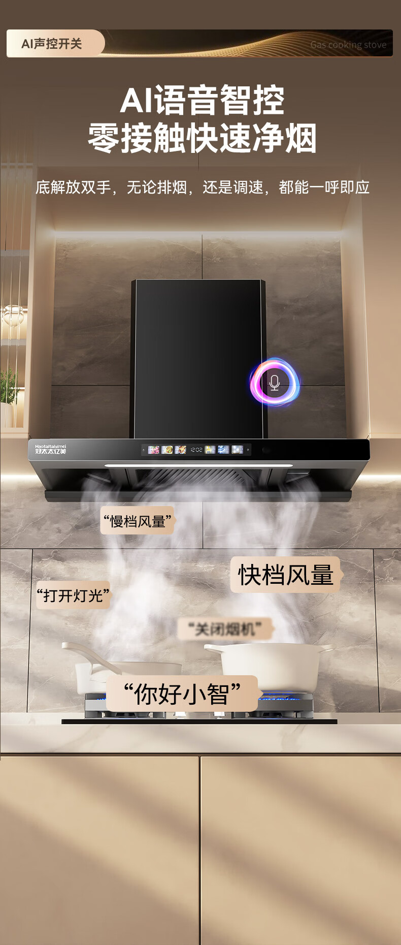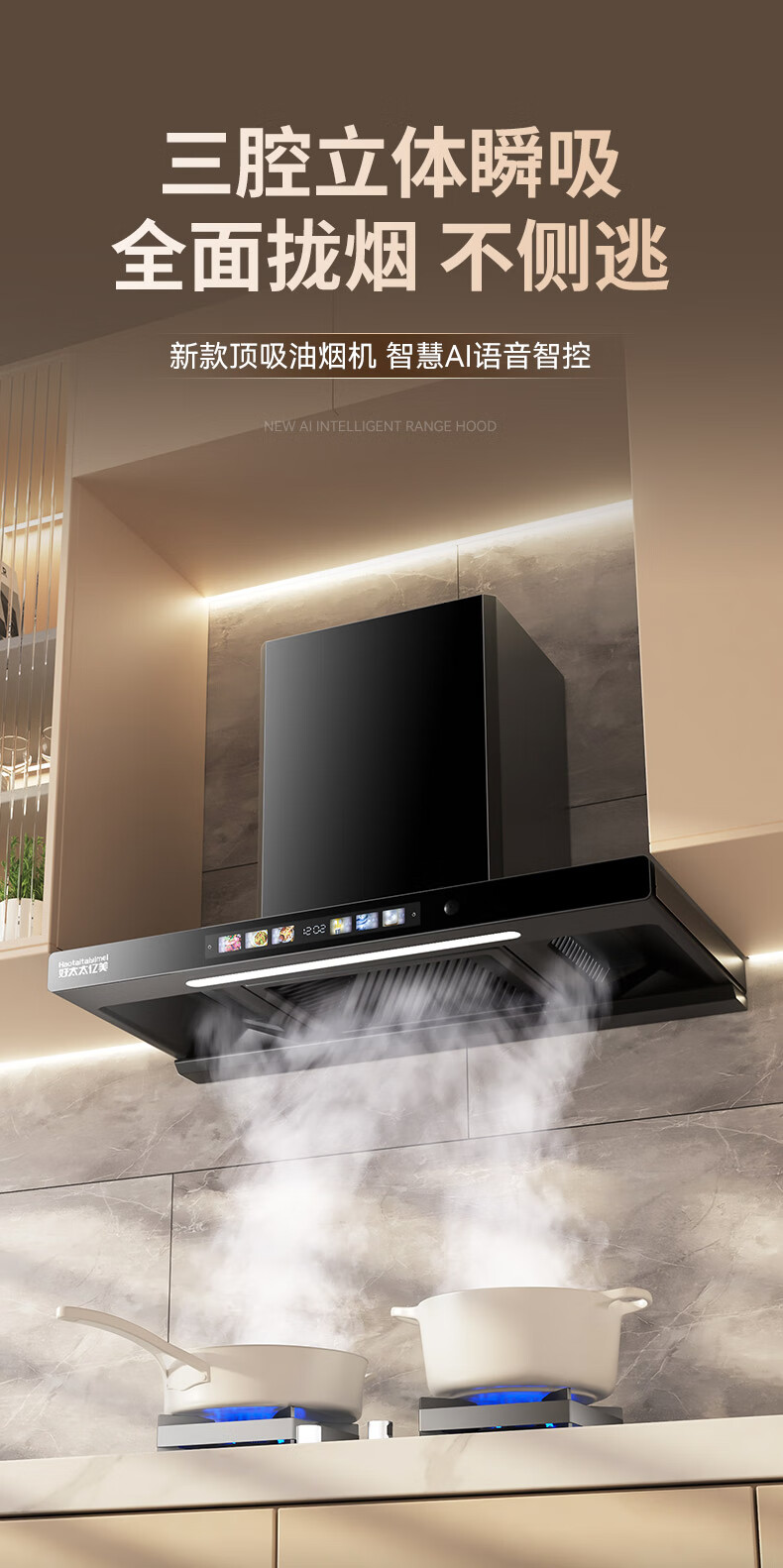 好太太亿美油烟机家用欧式顶吸式一级能效变频32大吸力风量T型机抽油烟机燃气灶具套装厨房大静压低噪音脱排 顶配款-90cm语音控制+38m³大吸力+挥手智控 联系客服上门安装(含全国联保)