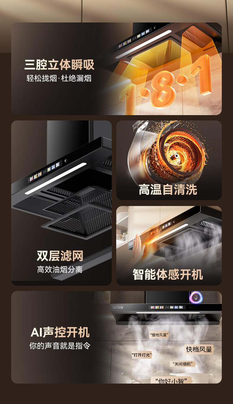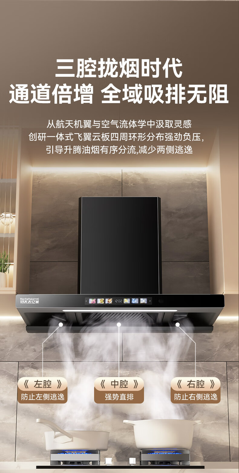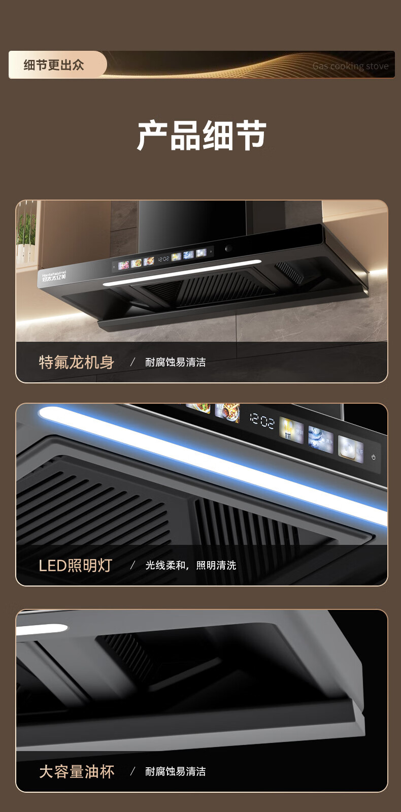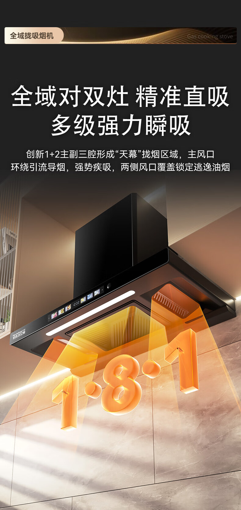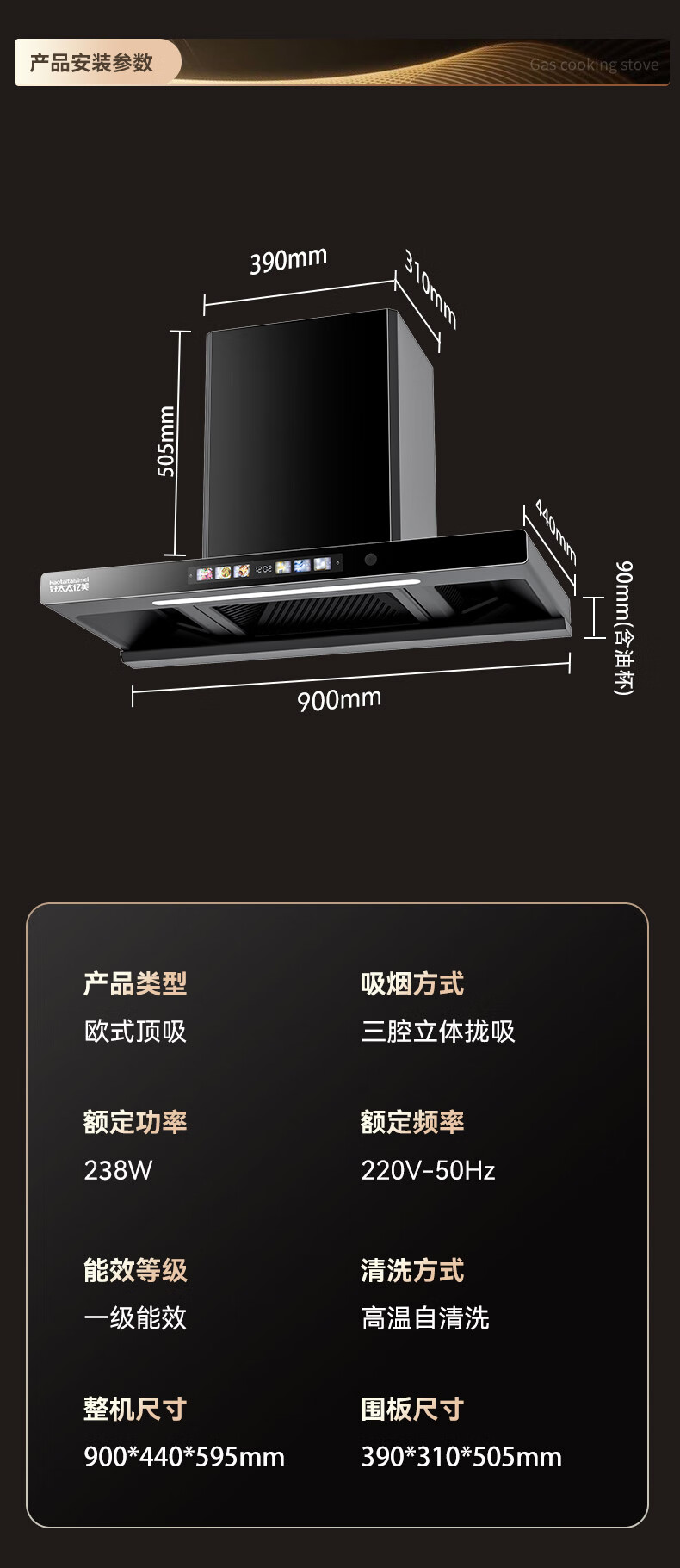 好太太亿美油烟机家用欧式顶吸式一级能效变频32大吸力风量T型机抽油烟机燃气灶具套装厨房大静压低噪音脱排 顶配款-90cm语音控制+38m³大吸力+挥手智控 联系客服上门安装(含全国联保)