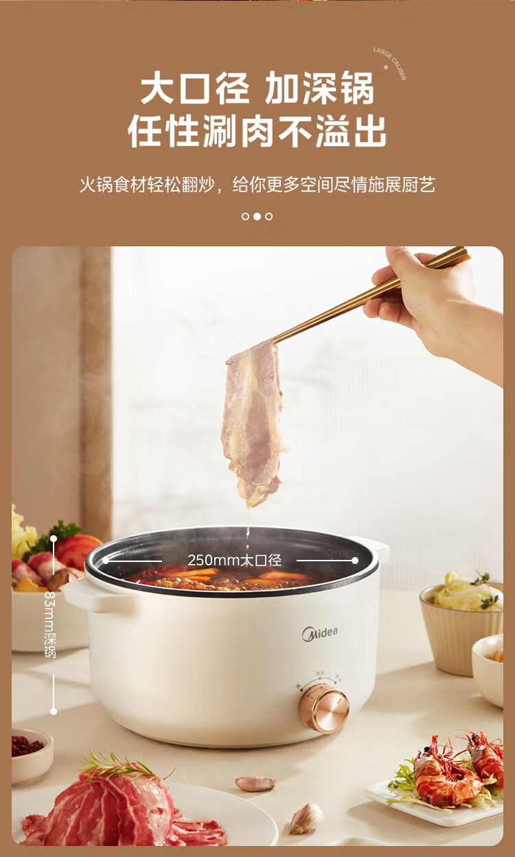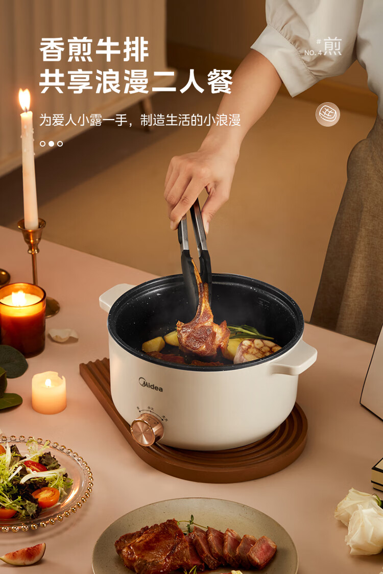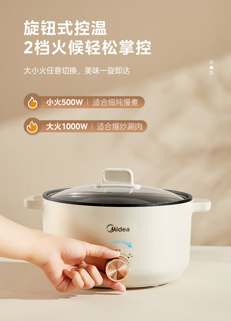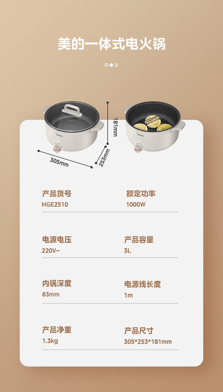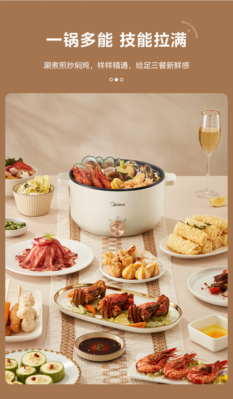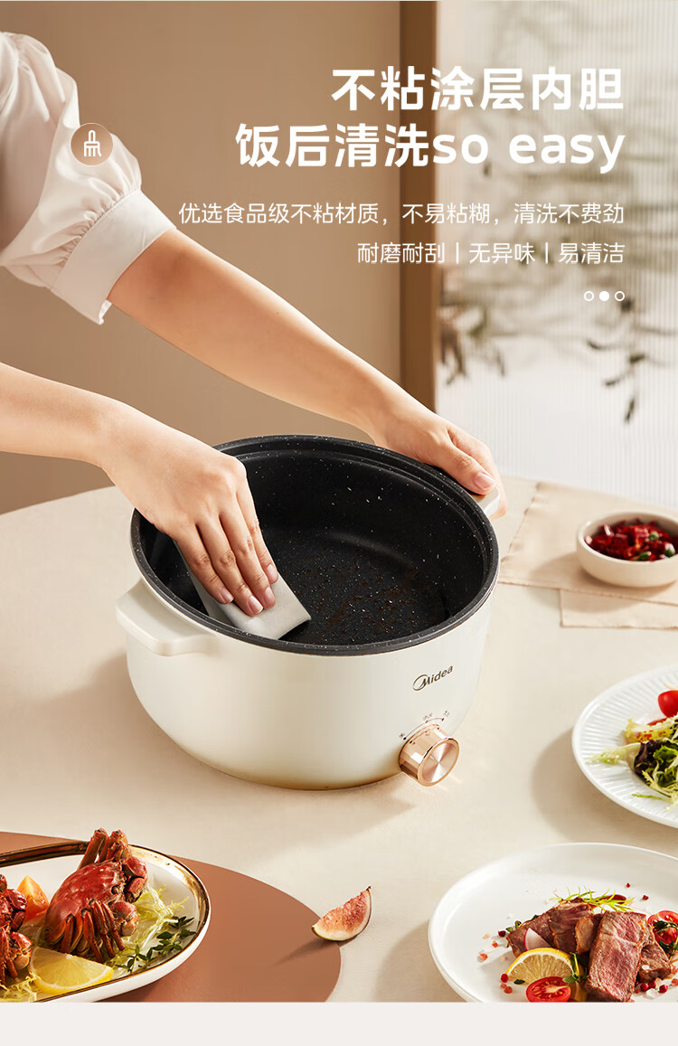 美的(Midea)电煮锅 电火锅 宿舍小电锅 电热锅 3L多功能多用途锅煮煎炒锅泡面锅 HGE2510 【国家补贴】