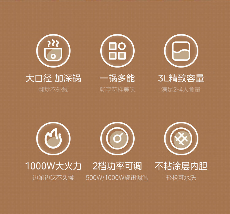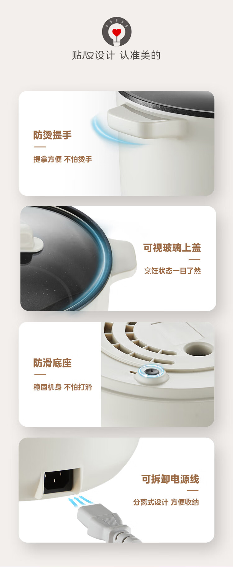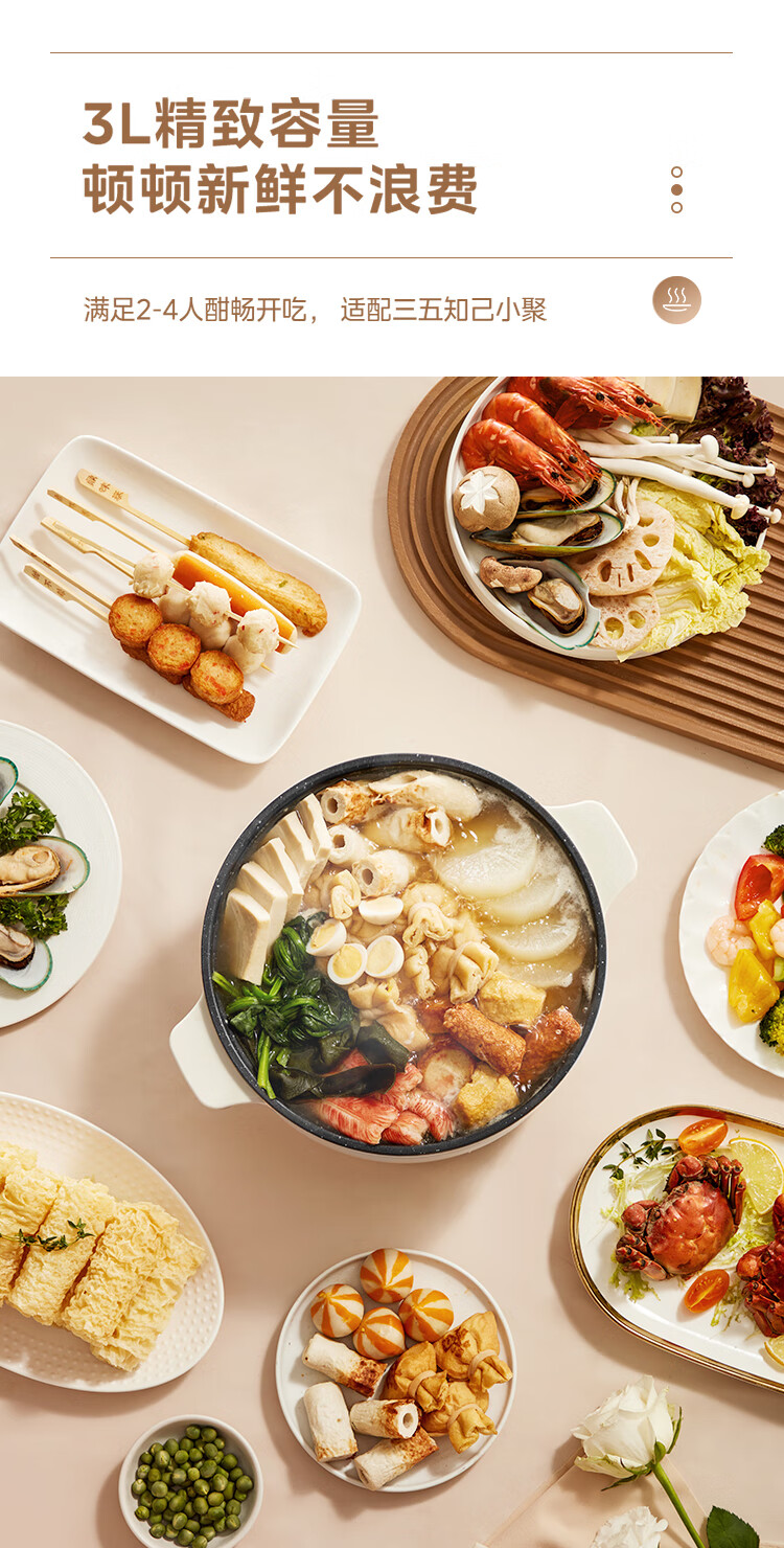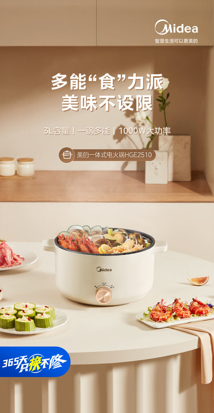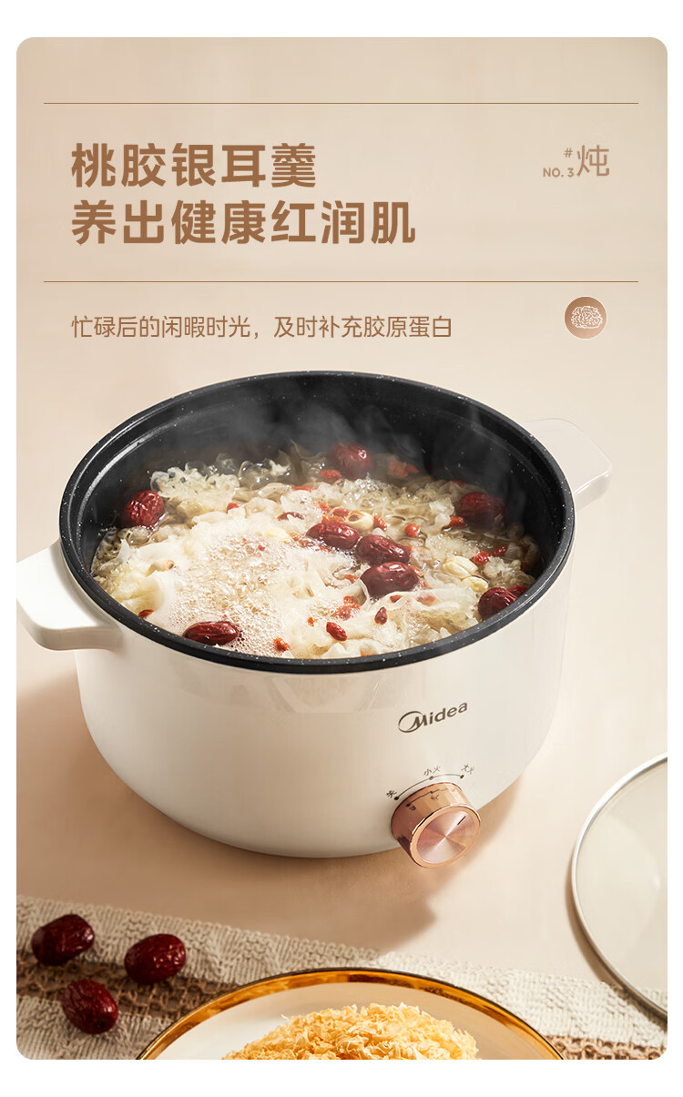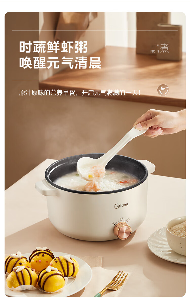 美的(Midea)电煮锅 电火锅 宿舍小电锅 电热锅 3L多功能多用途锅煮煎炒锅泡面锅 HGE2510 【国家补贴】