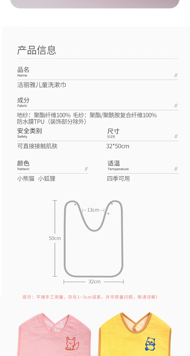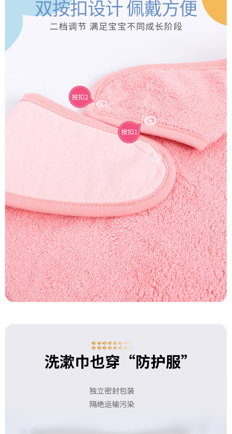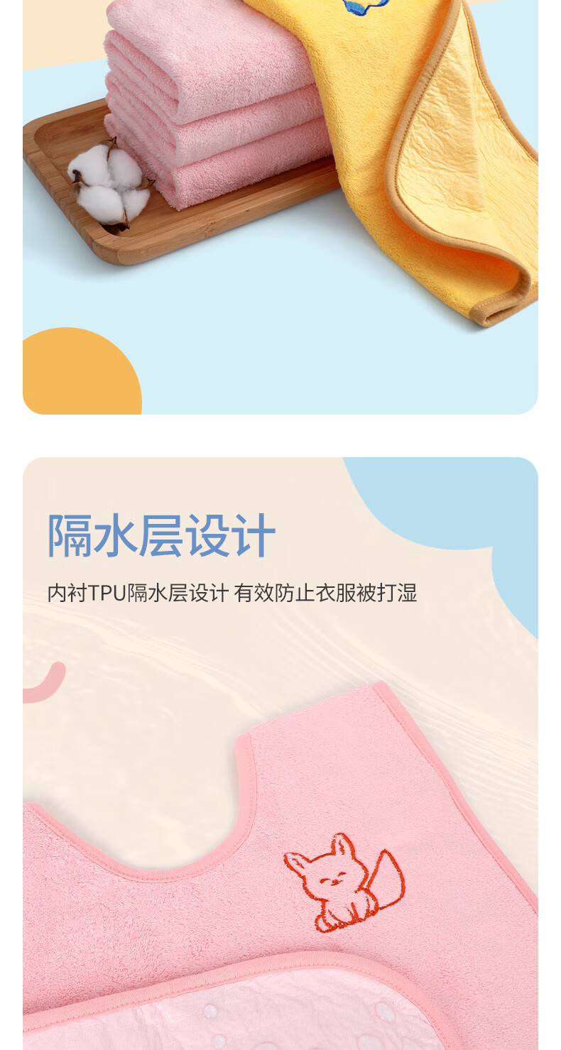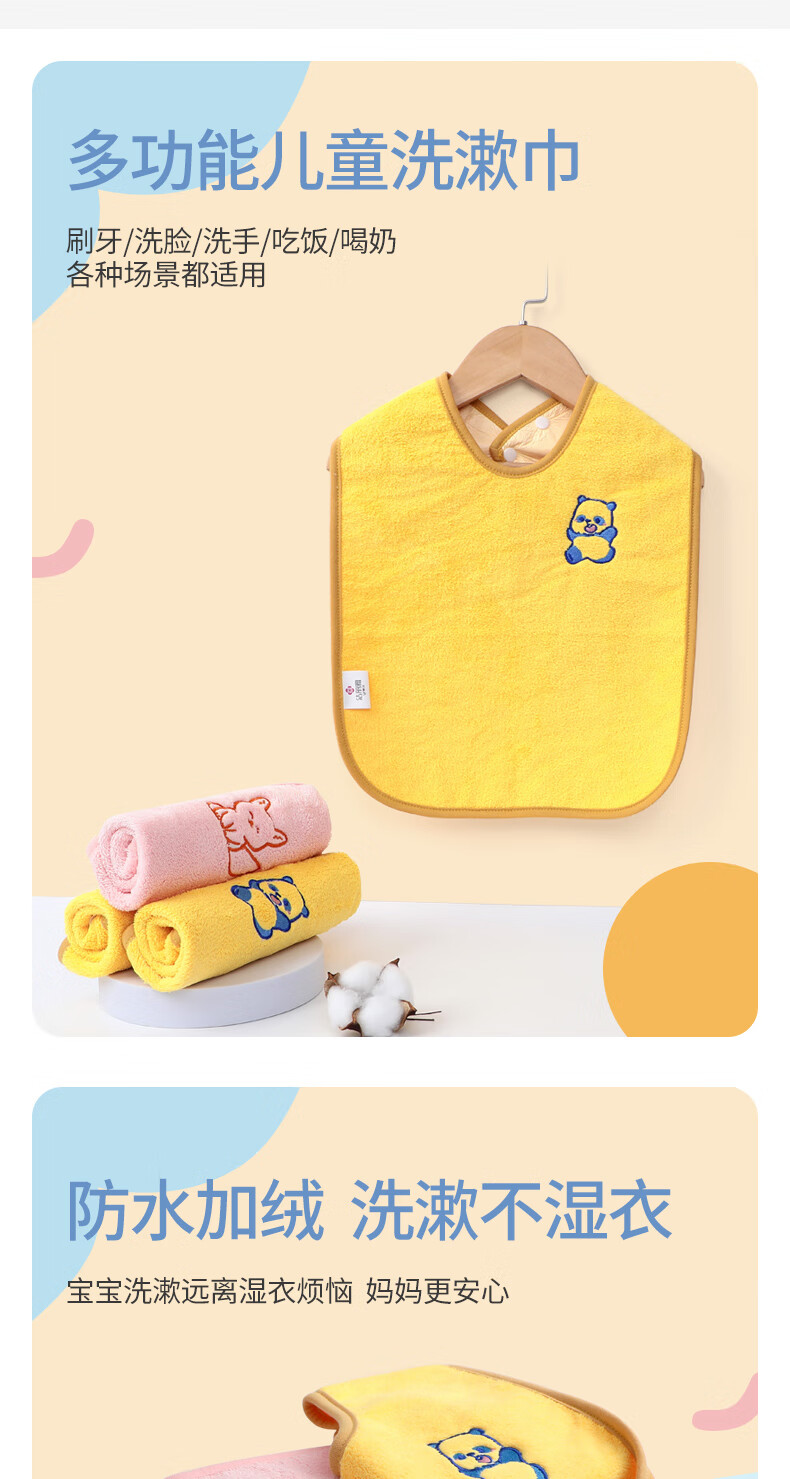 洁丽雅(Grace)儿童洗漱巾防水内衬刷牙洗脸吃饭可调节宝宝卡通围兜口水巾