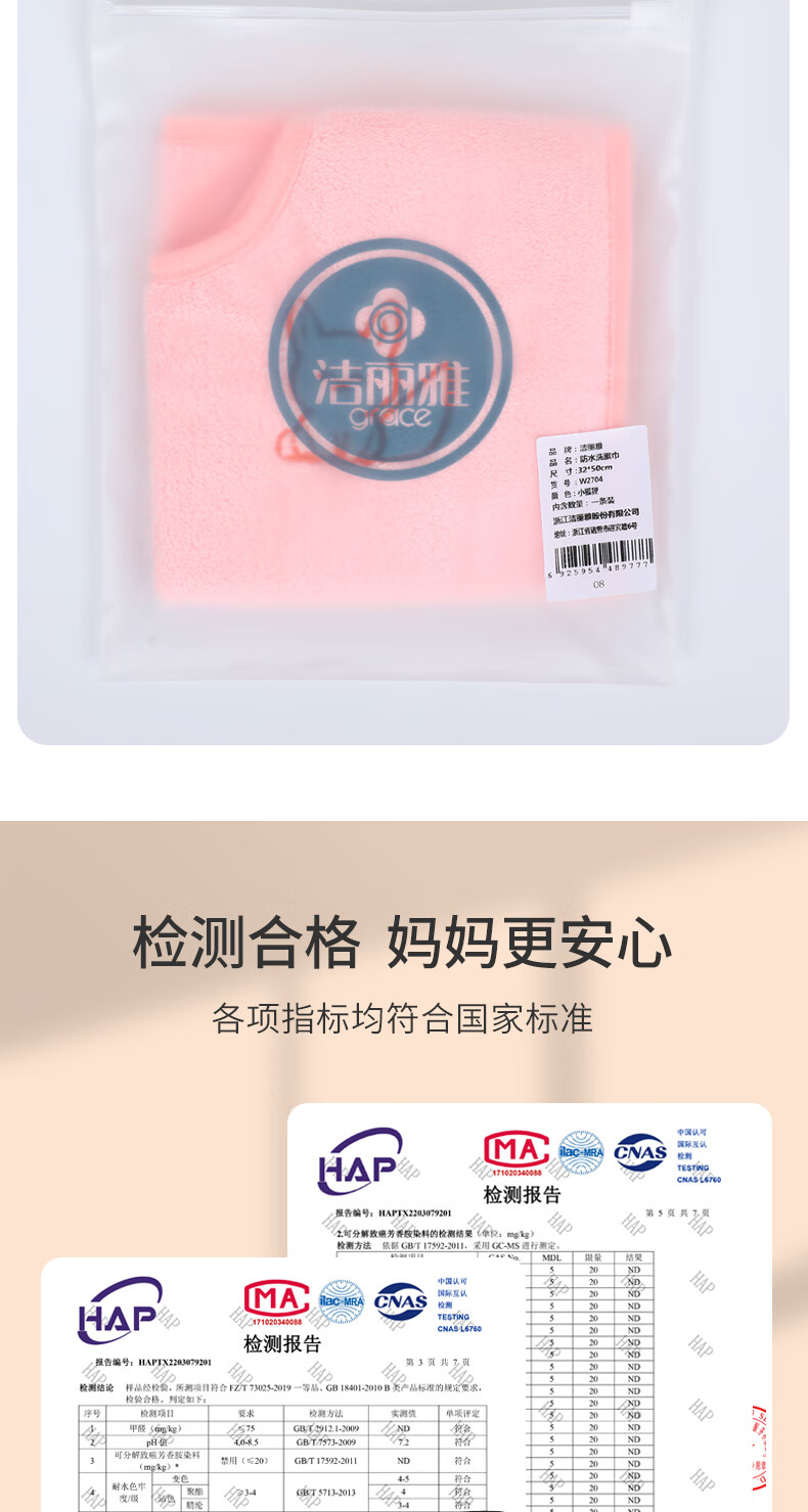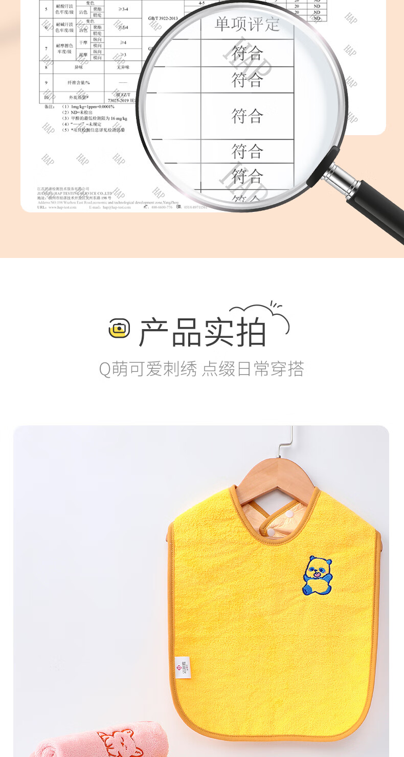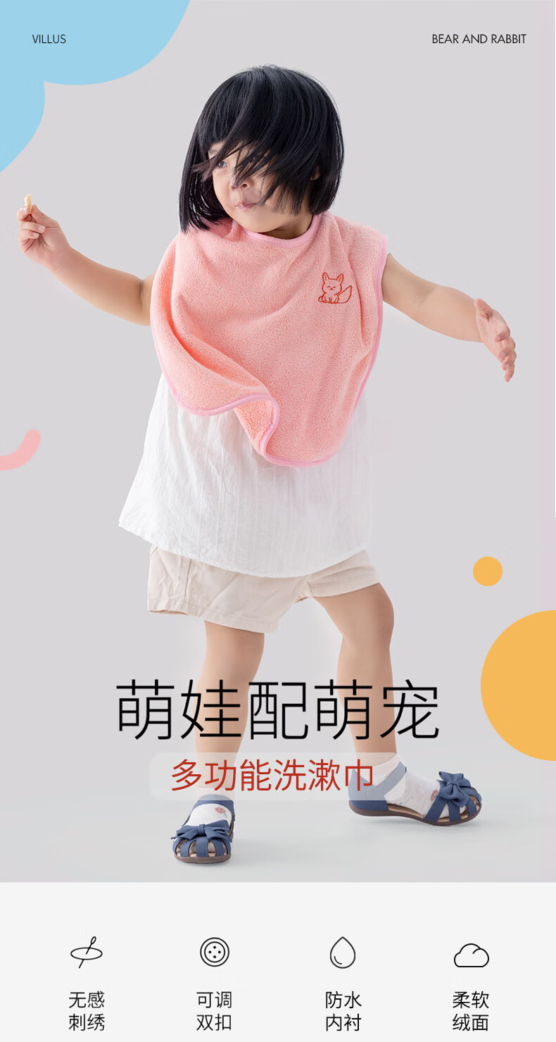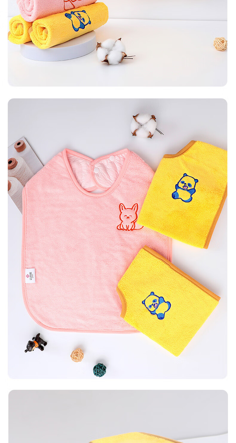 洁丽雅(Grace)儿童洗漱巾防水内衬刷牙洗脸吃饭可调节宝宝卡通围兜口水巾