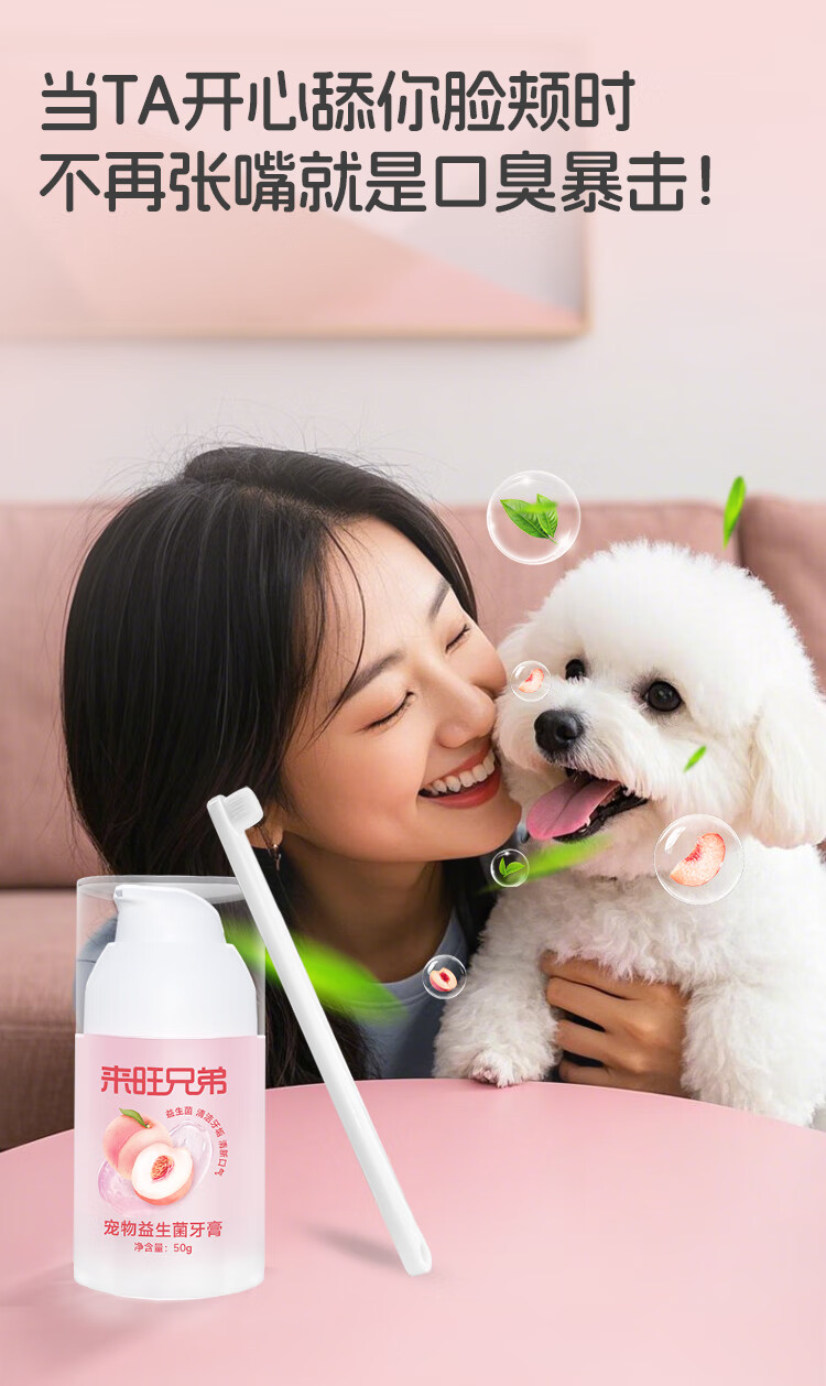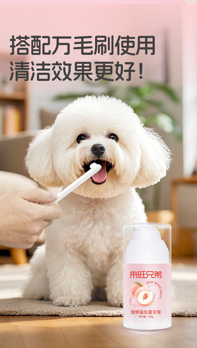 来旺兄弟狗狗牙刷宠物牙膏猫咪益生菌牙膏牙刷套装可食用口臭牙结石清洁