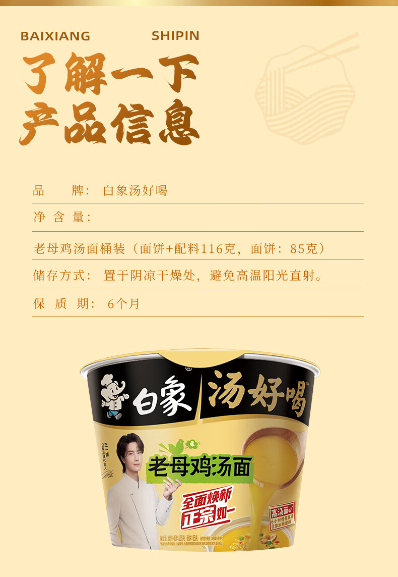 白象 【王一博代言】方便面 汤好喝老母鸡汤面116g*12桶泡面整箱装