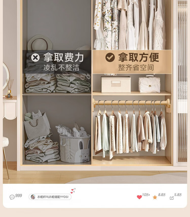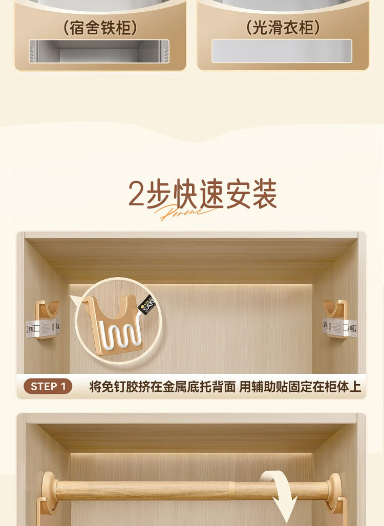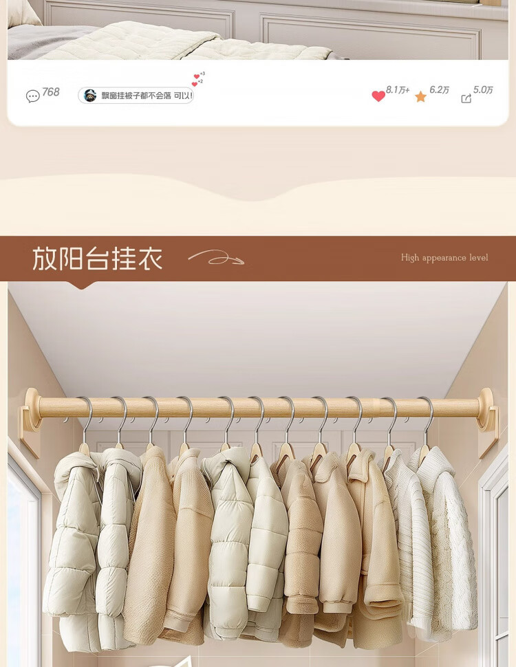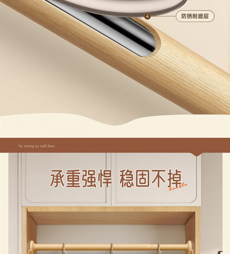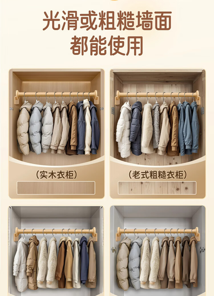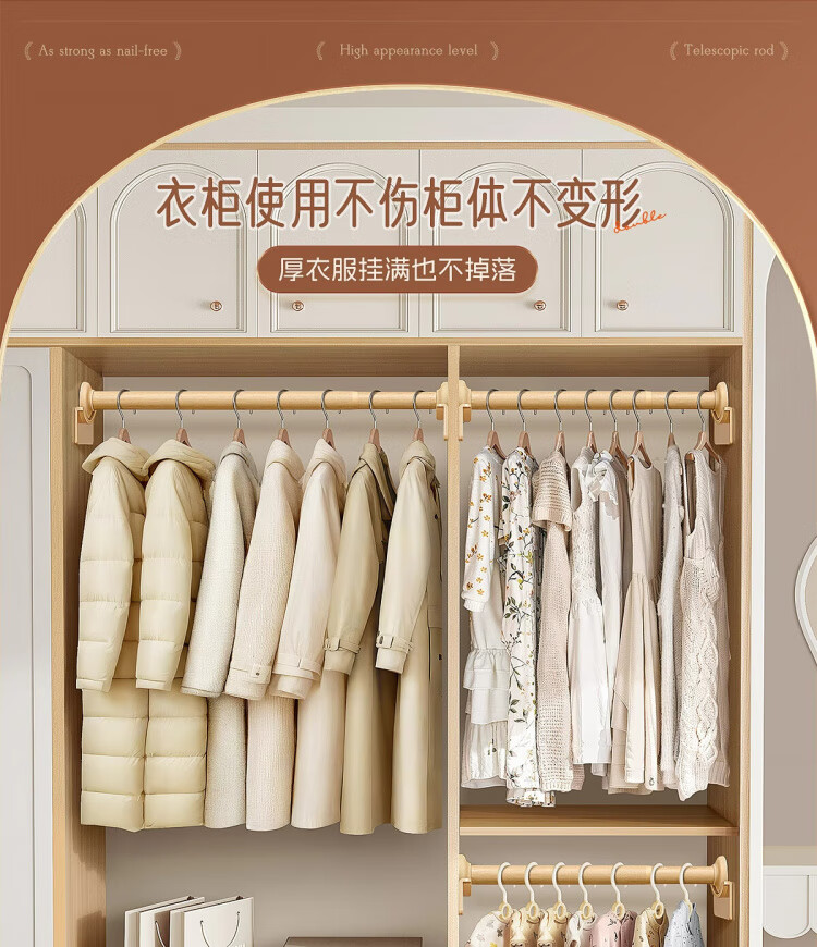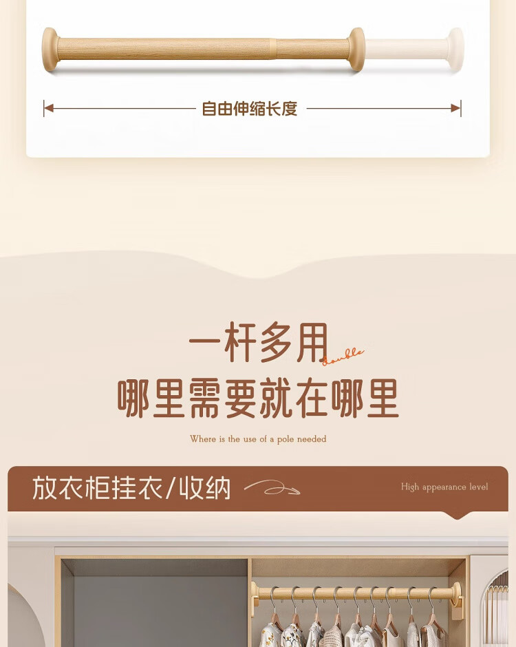 WCZ德国挂衣杆免打孔可伸缩衣柜内固定晾衣杆浴帘杆衣服撑杆架 【0.5~0.8米】/可伸缩