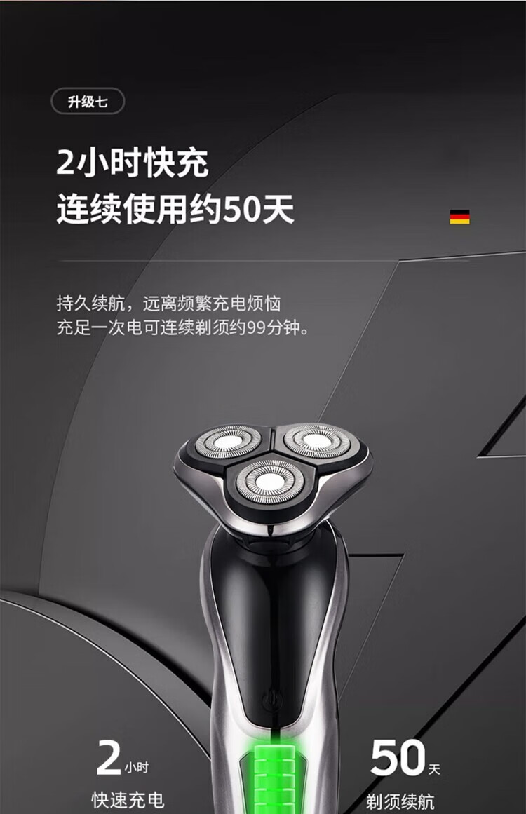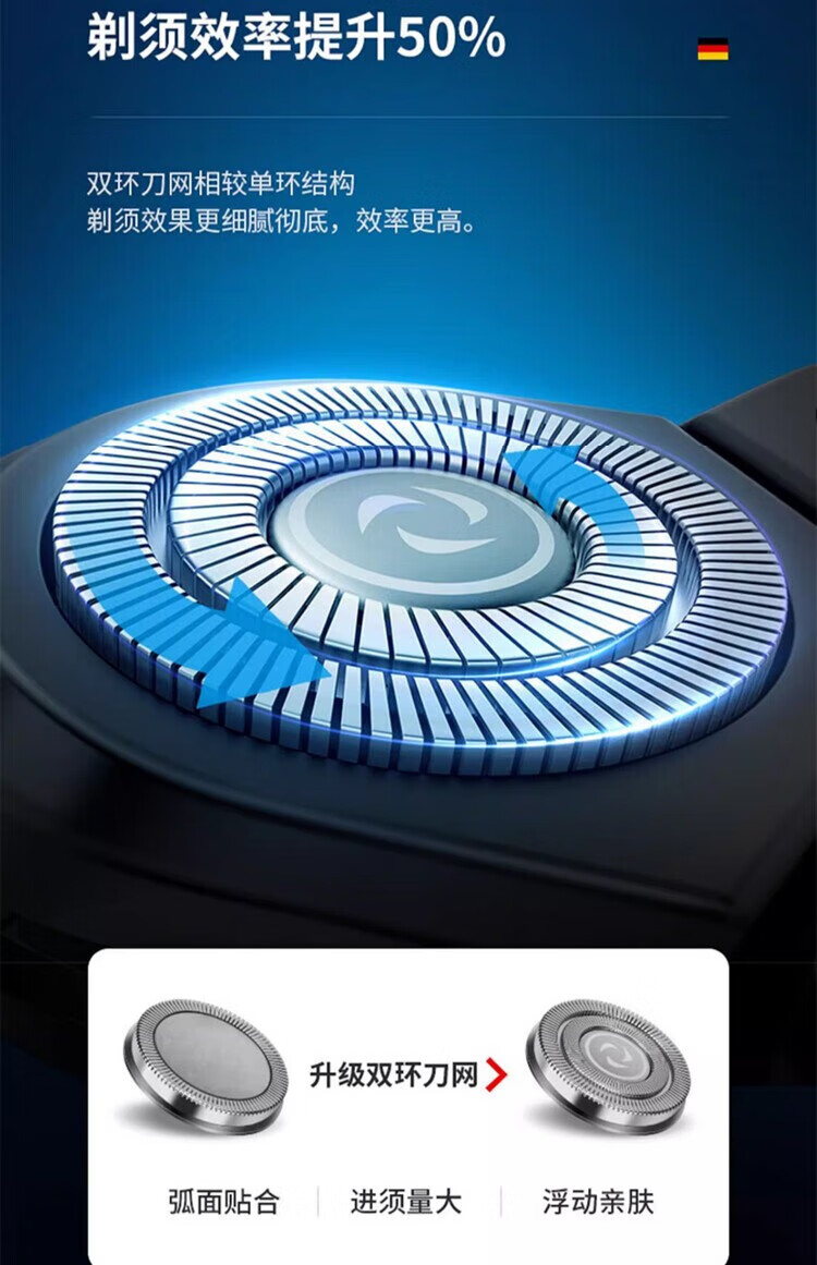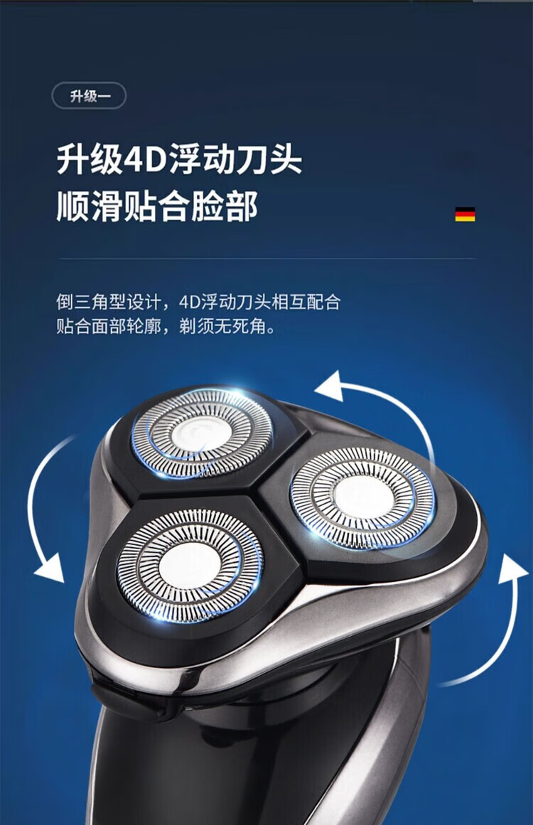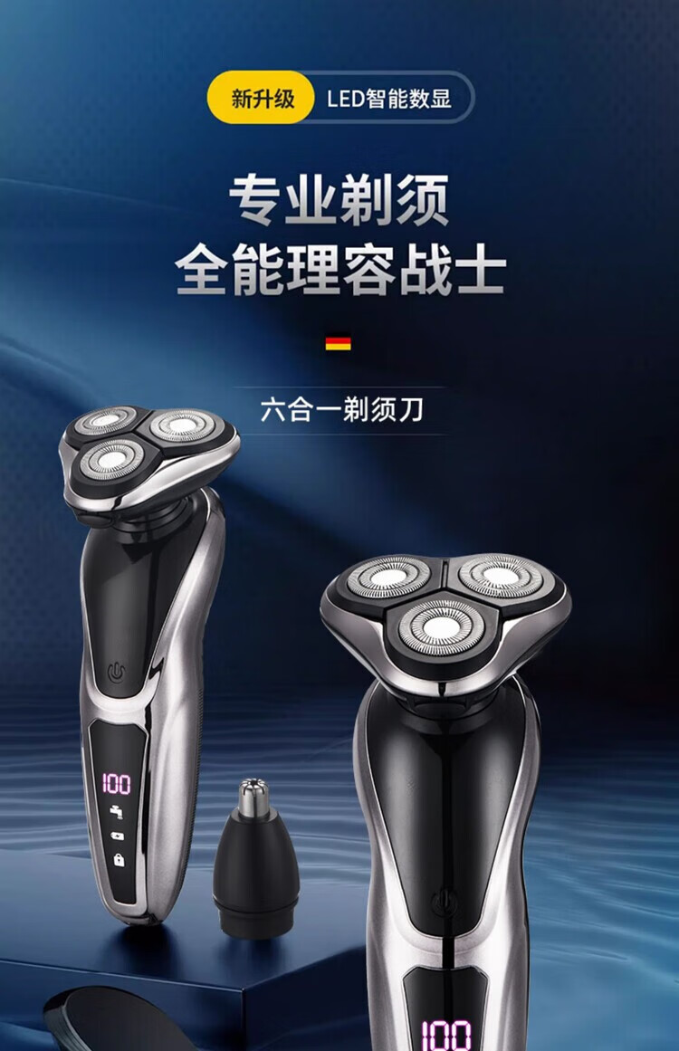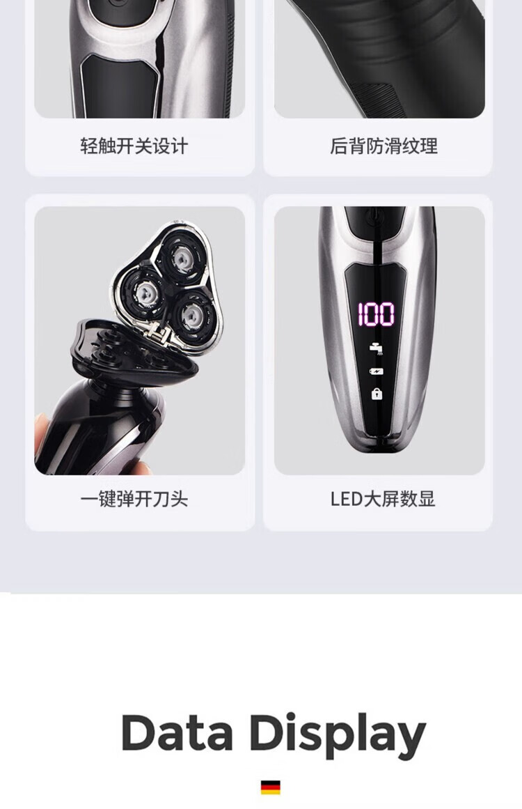 户璃德国剃须刀男士电动刮胡刀2025新款多功能旋转式胡须刀送父亲生日礼物送爸爸长辈圣诞节礼物 升级数显+备用刀头