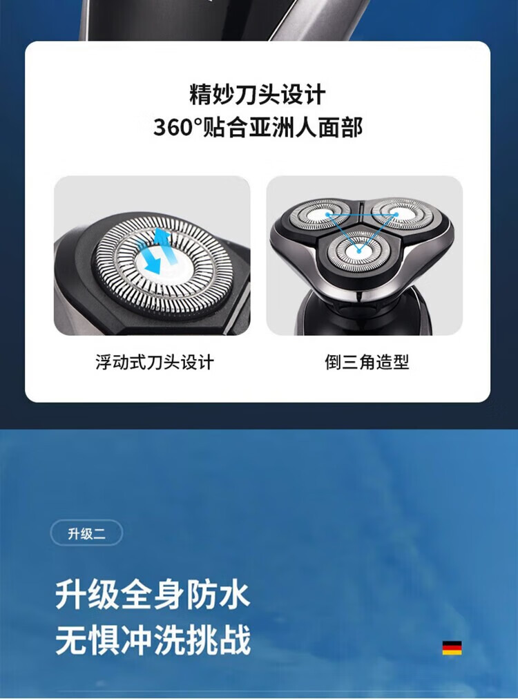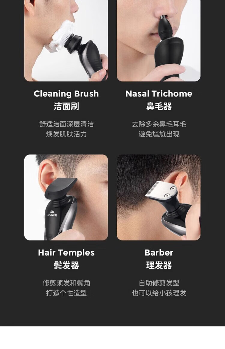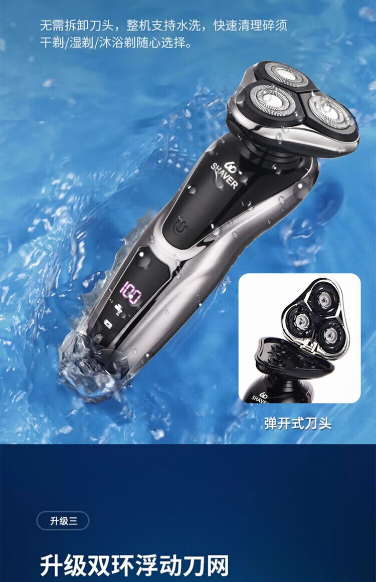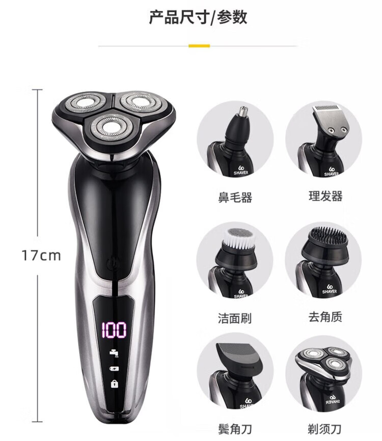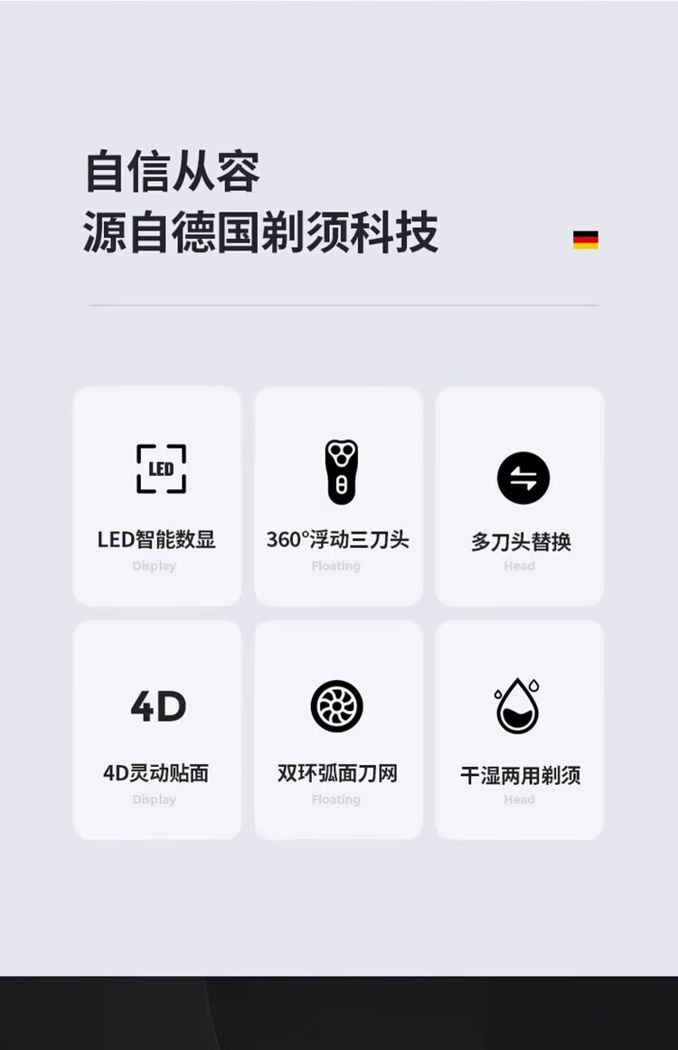 户璃德国剃须刀男士电动刮胡刀2025新款多功能旋转式胡须刀送父亲生日礼物送爸爸长辈圣诞节礼物 升级数显+备用刀头