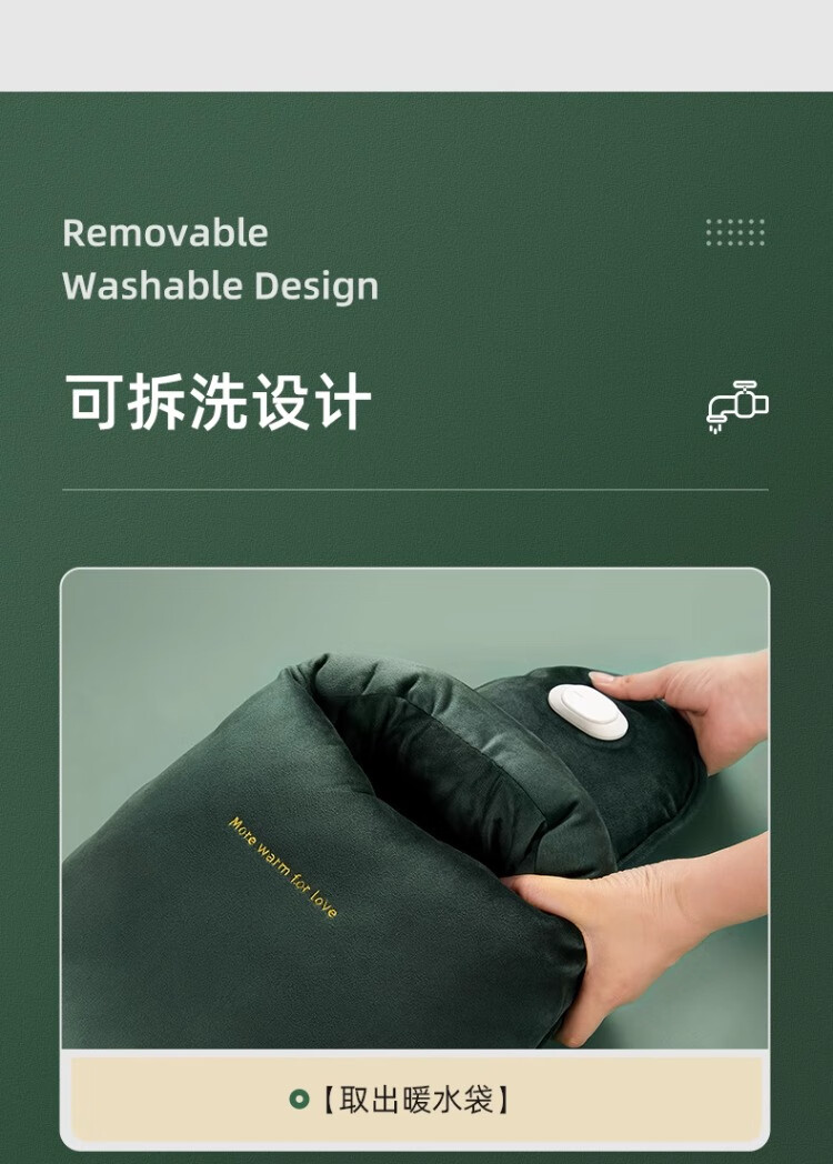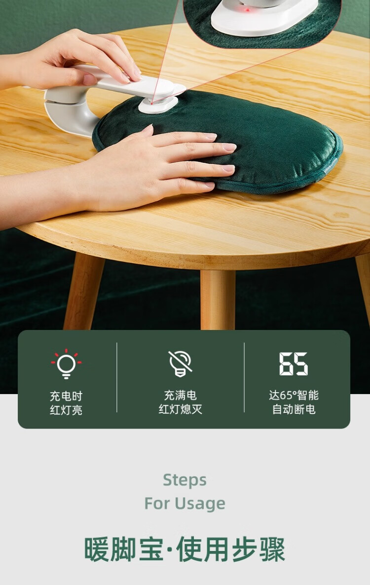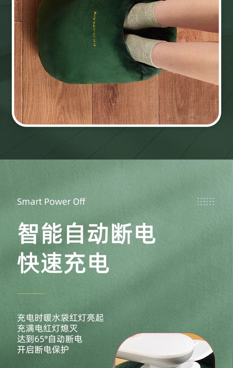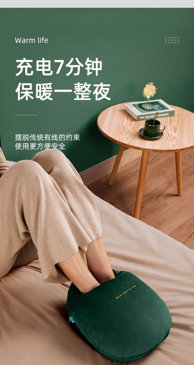 WCZ德国暖脚宝床上睡觉被窝用充电热水袋取暖足冬天保暖神器 墨绿持续暖脚8h高密度丝绒可拆洗