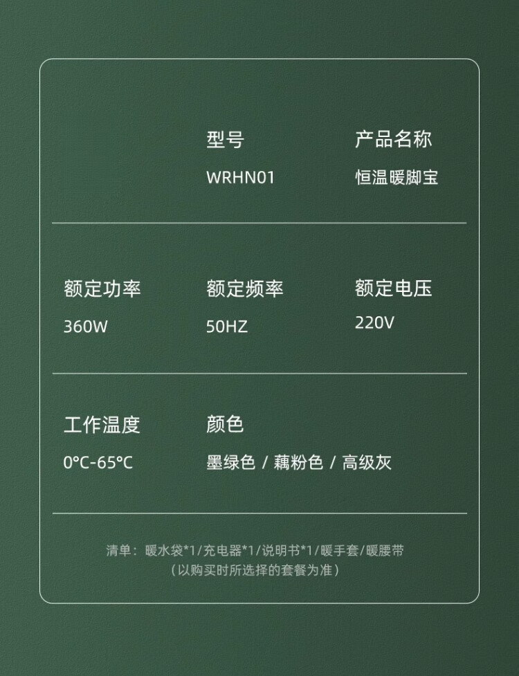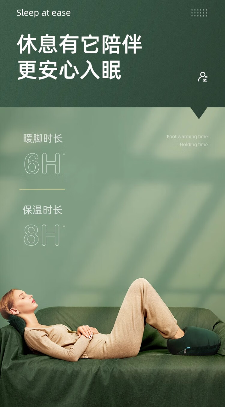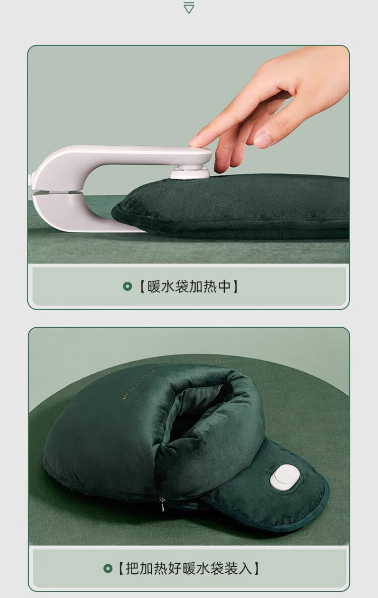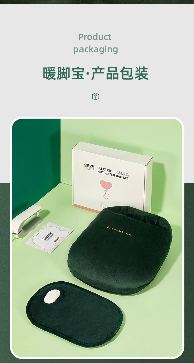 WCZ德国暖脚宝床上睡觉被窝用充电热水袋取暖足冬天保暖神器 墨绿持续暖脚8h高密度丝绒可拆洗