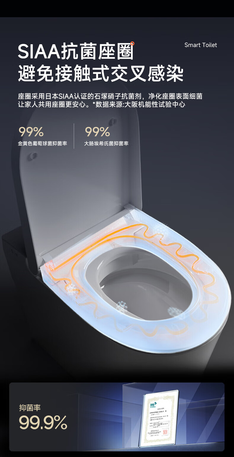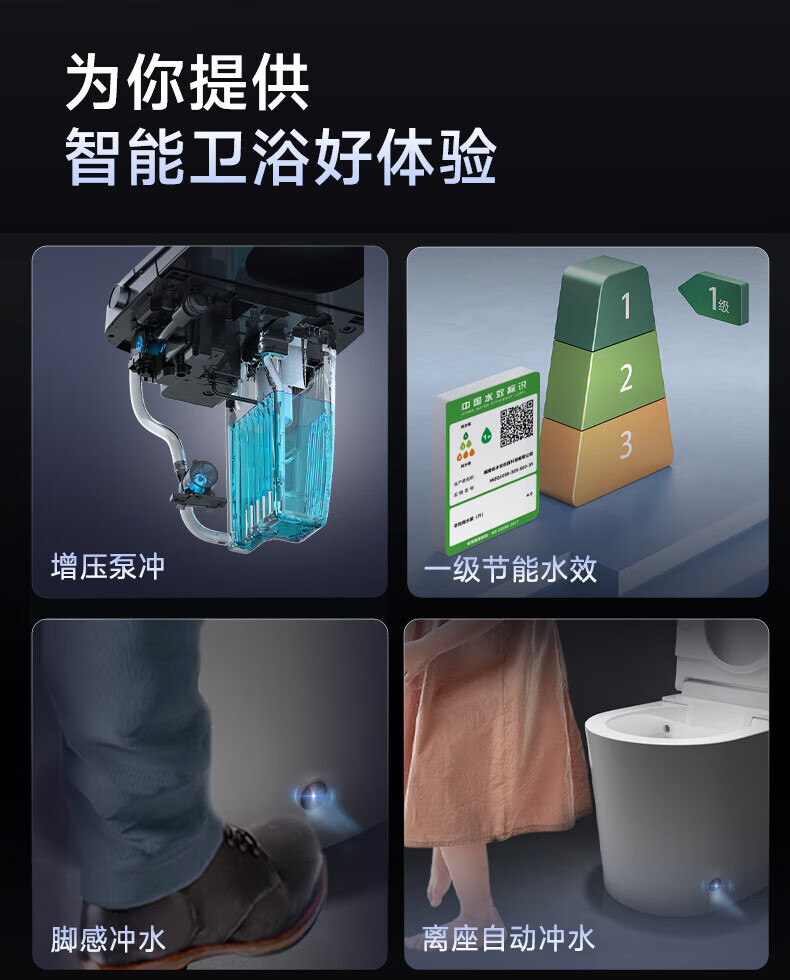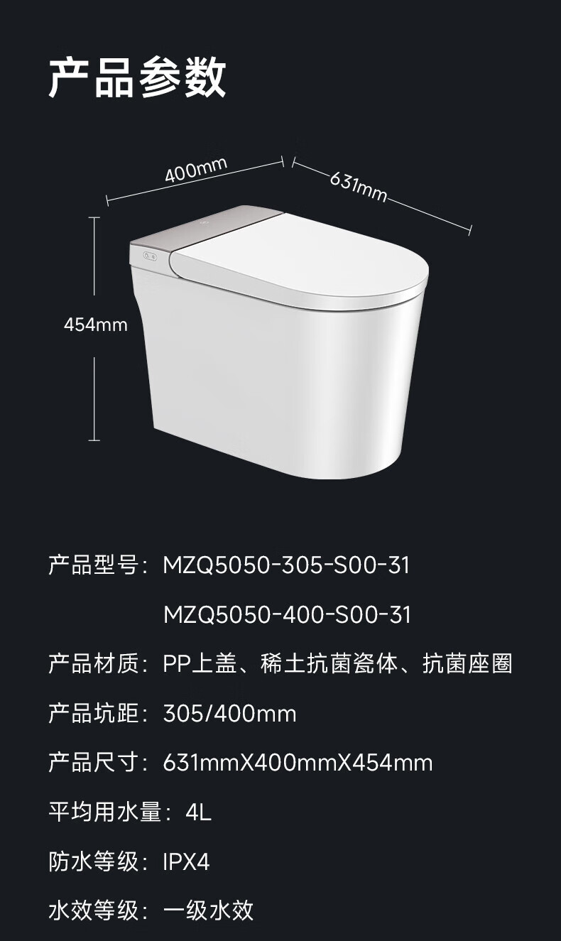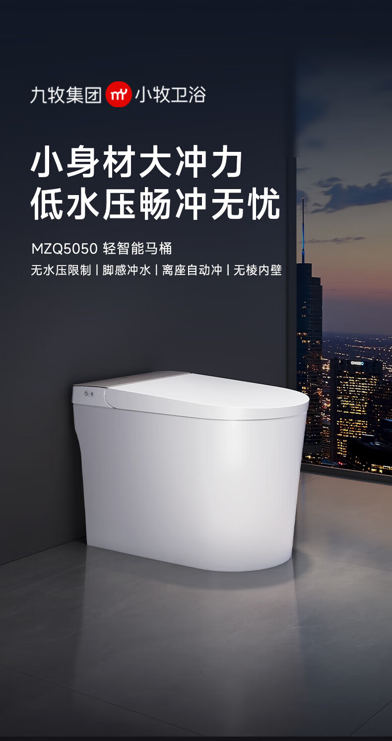 小牧卫浴轻智能马桶 畅冲无忧 轻音 虹吸式坐便器 离座自动冲+无棱内壁+无水压限制 | S3e-50 400mm 【390以上选择】