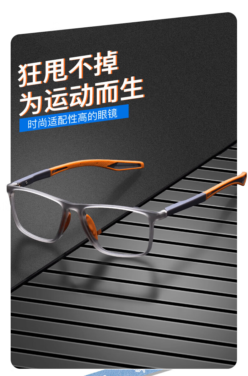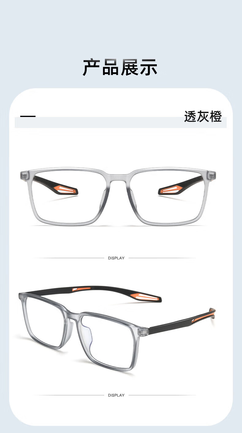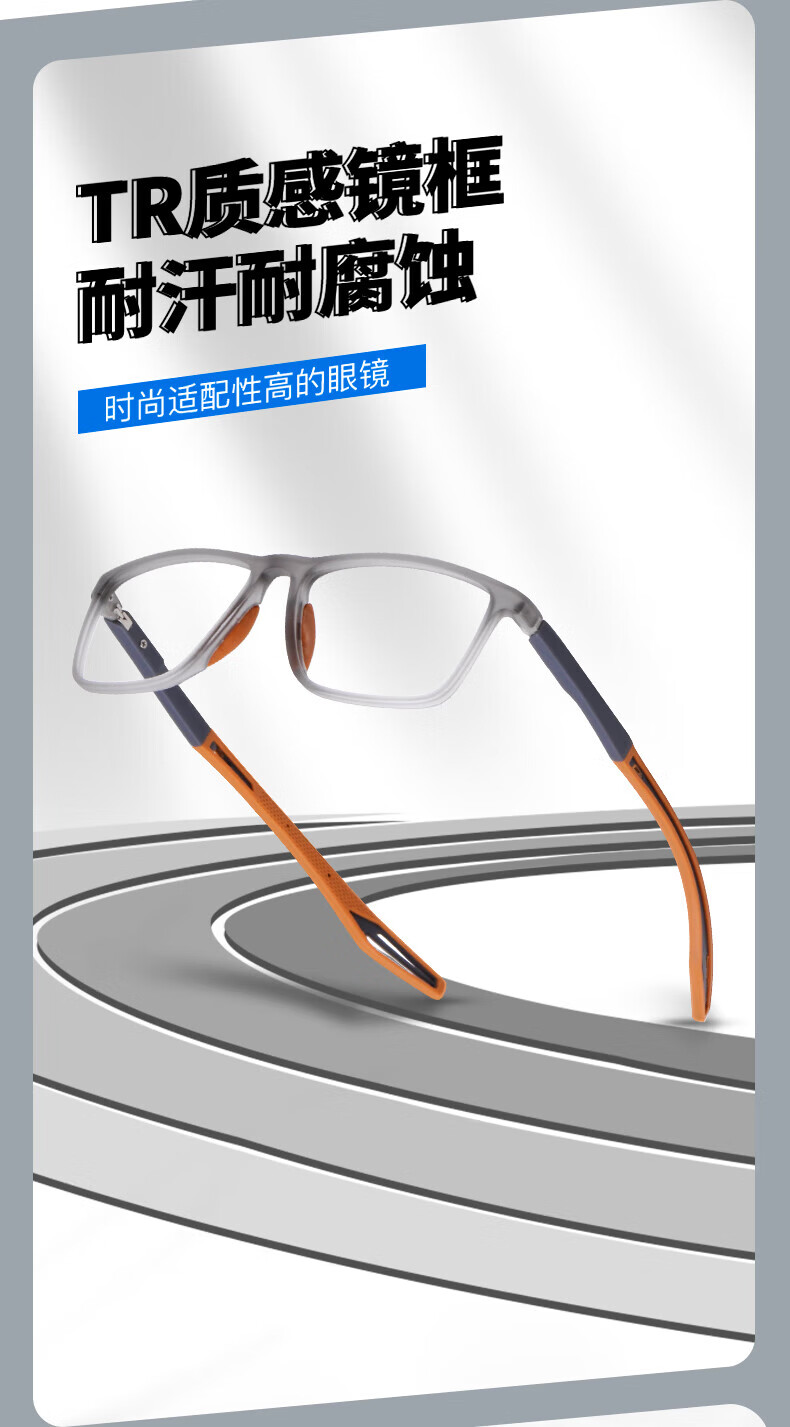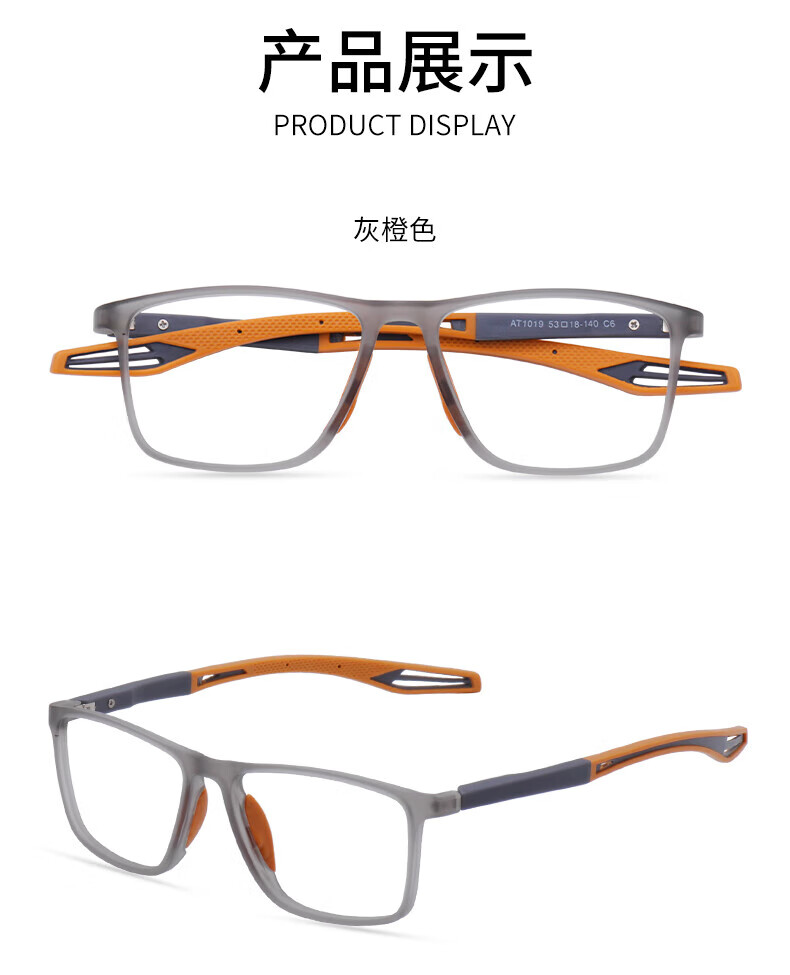 潮库超轻TR90运动男款可配近视眼镜架合集 1019灰橙 配1.67防蓝光0-1000度