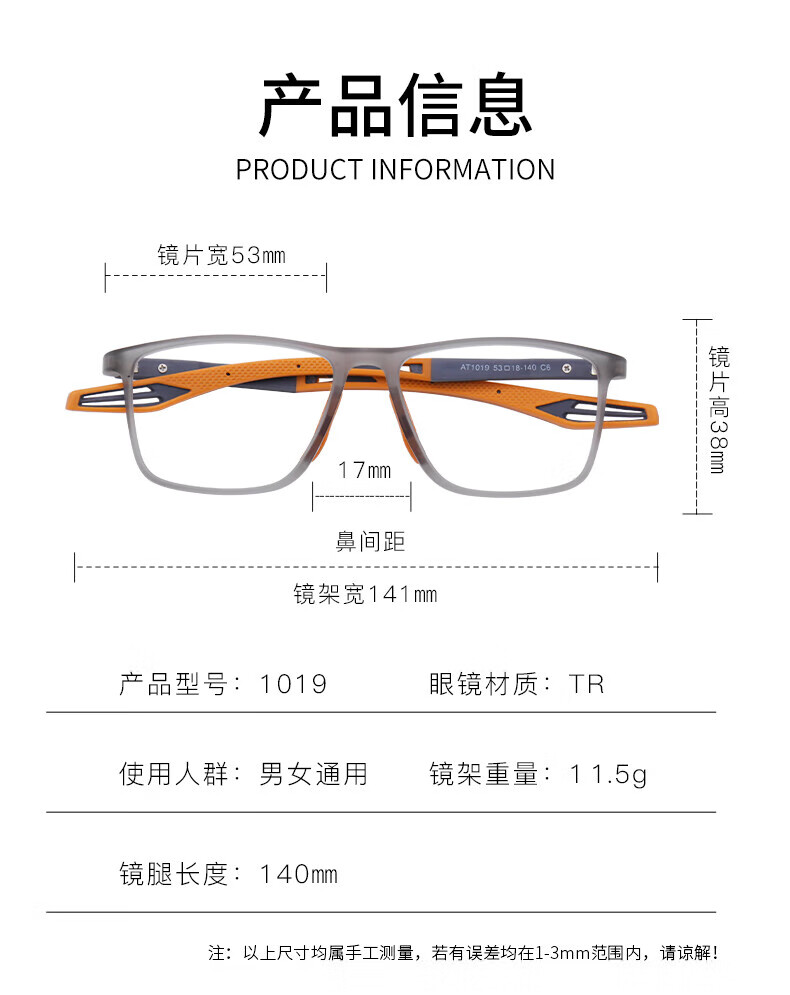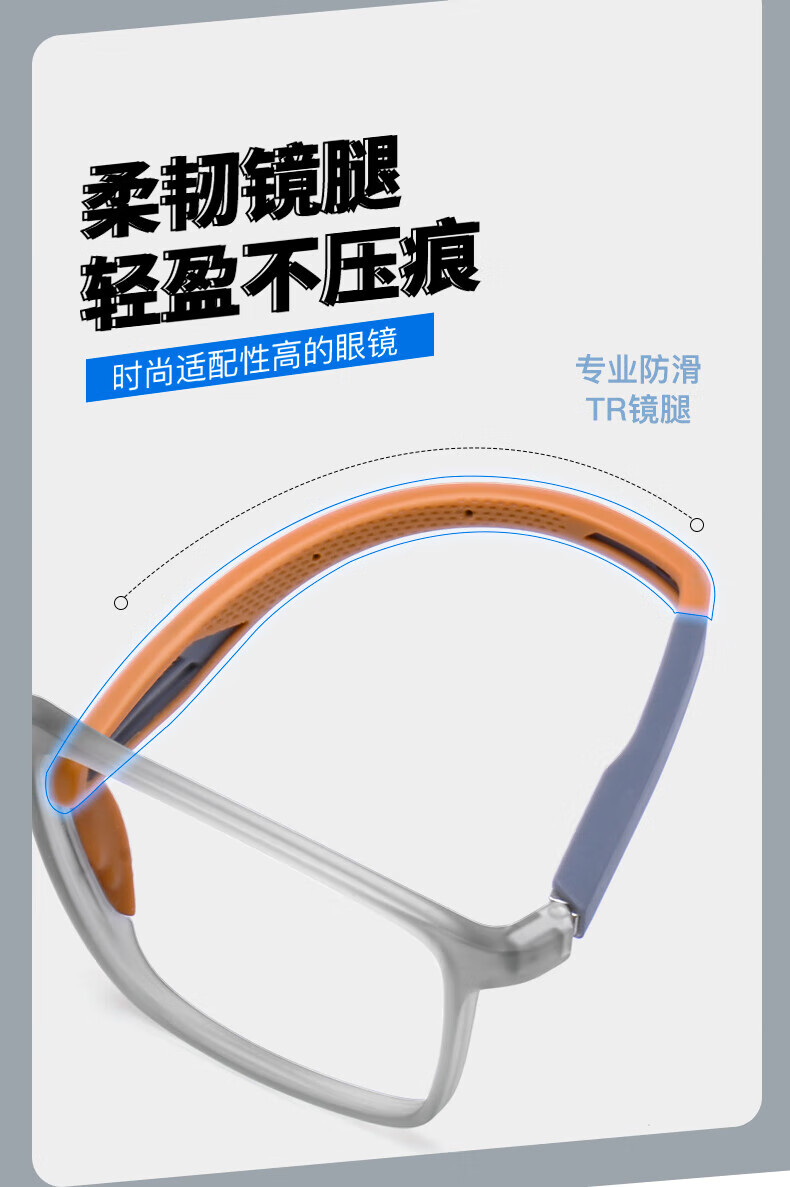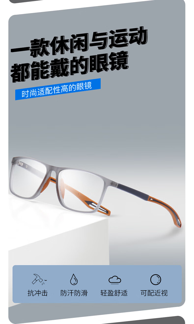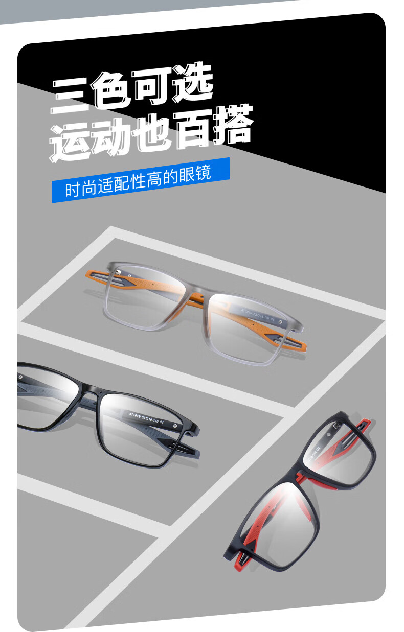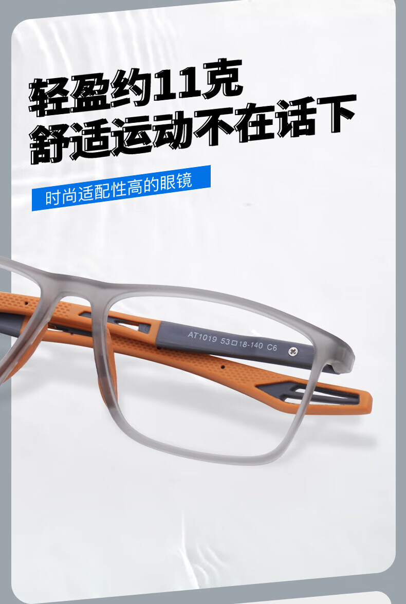 潮库超轻TR90运动男款可配近视眼镜架合集 1019灰橙 配1.67防蓝光0-1000度