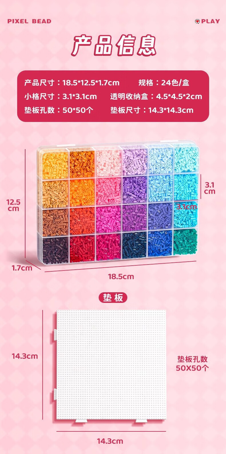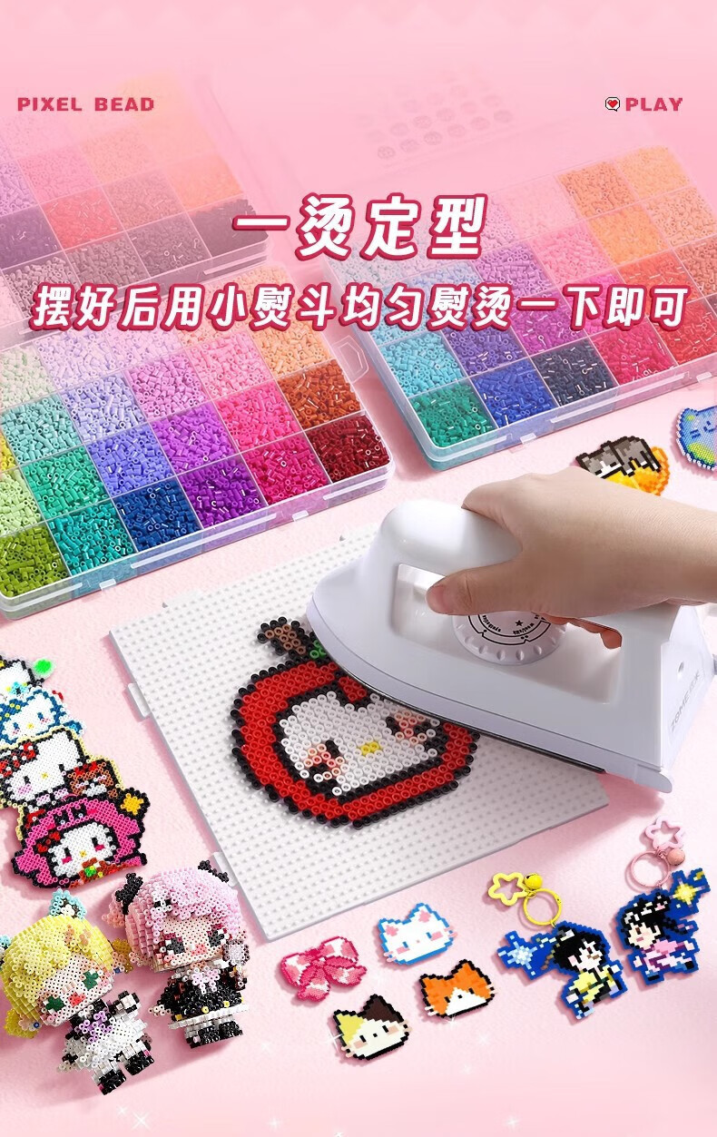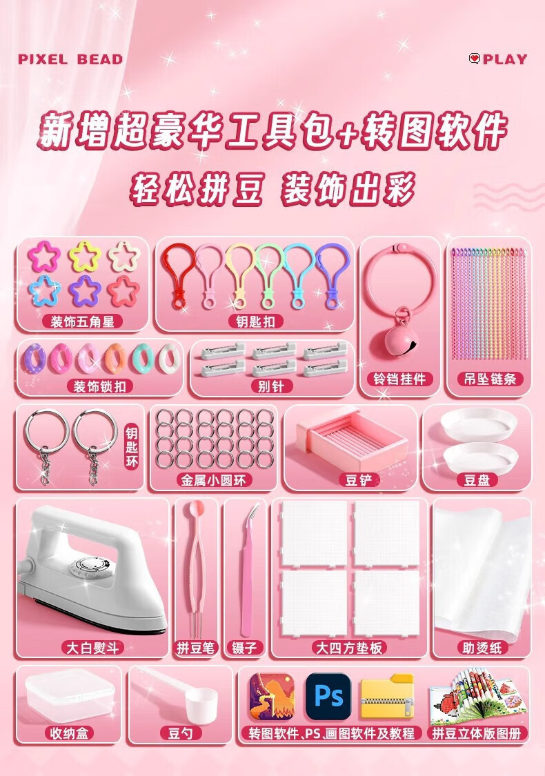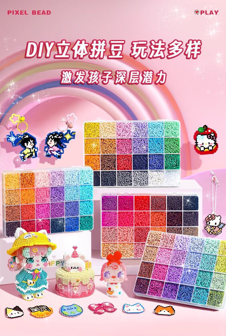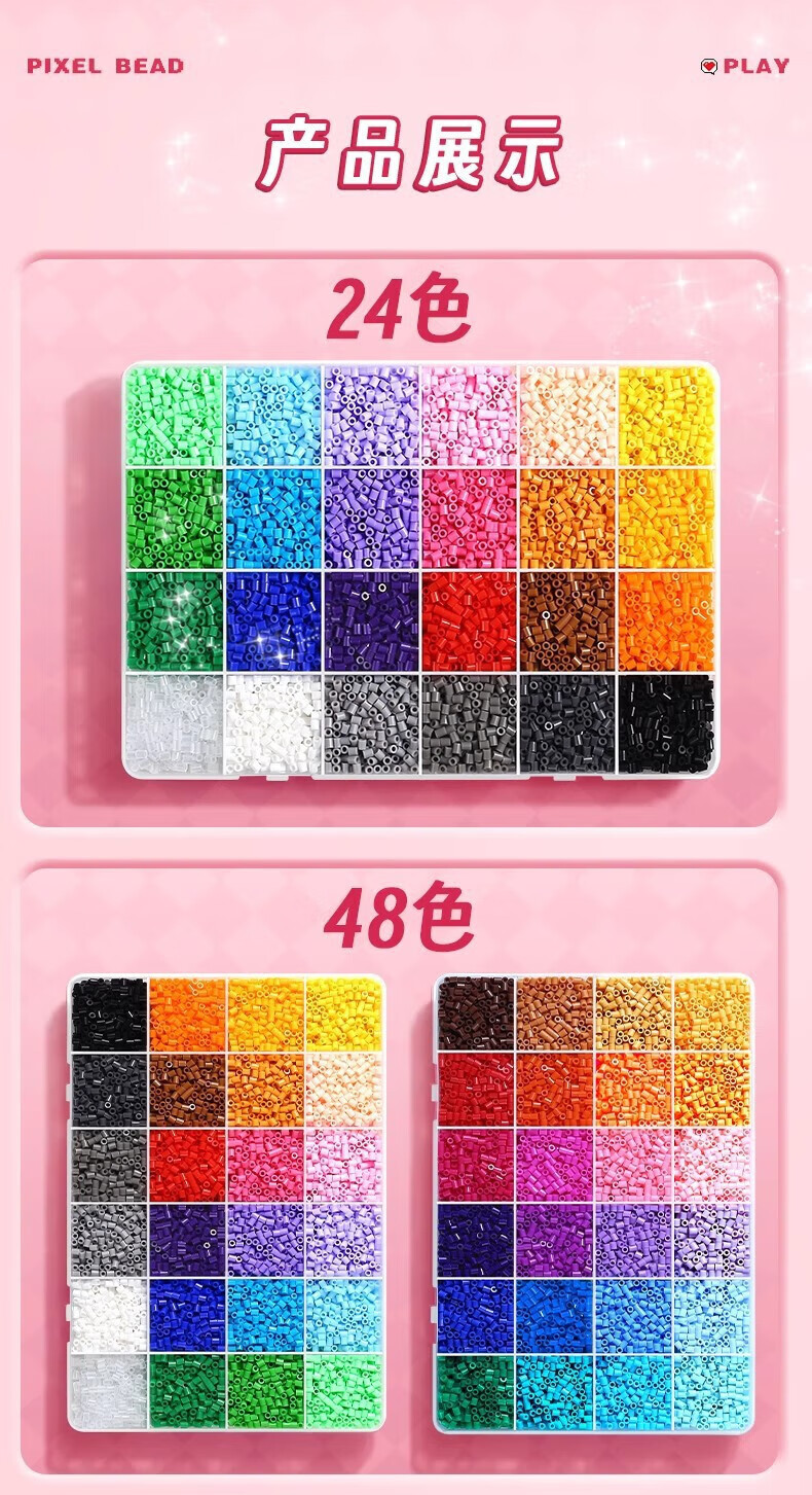 赟娅儿童男女孩生日礼物玩具拼豆豆手工diy套装3d立体融合拼豆拼图 拼豆套装【48色+熨斗+图册神奇24000颗豆+手提包】