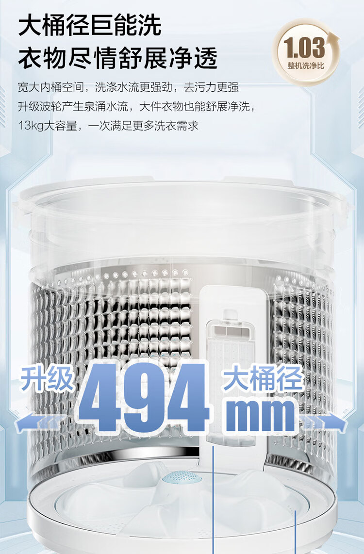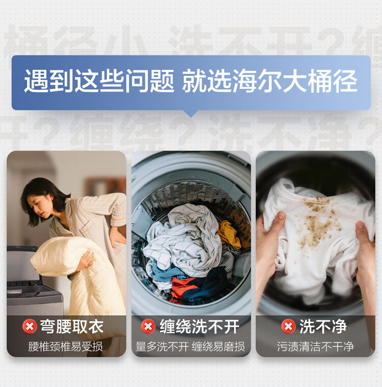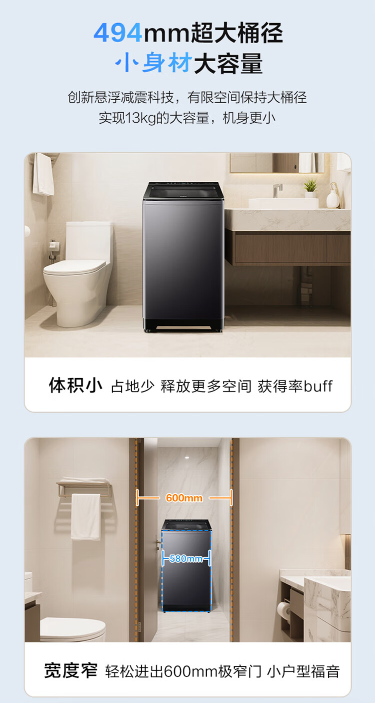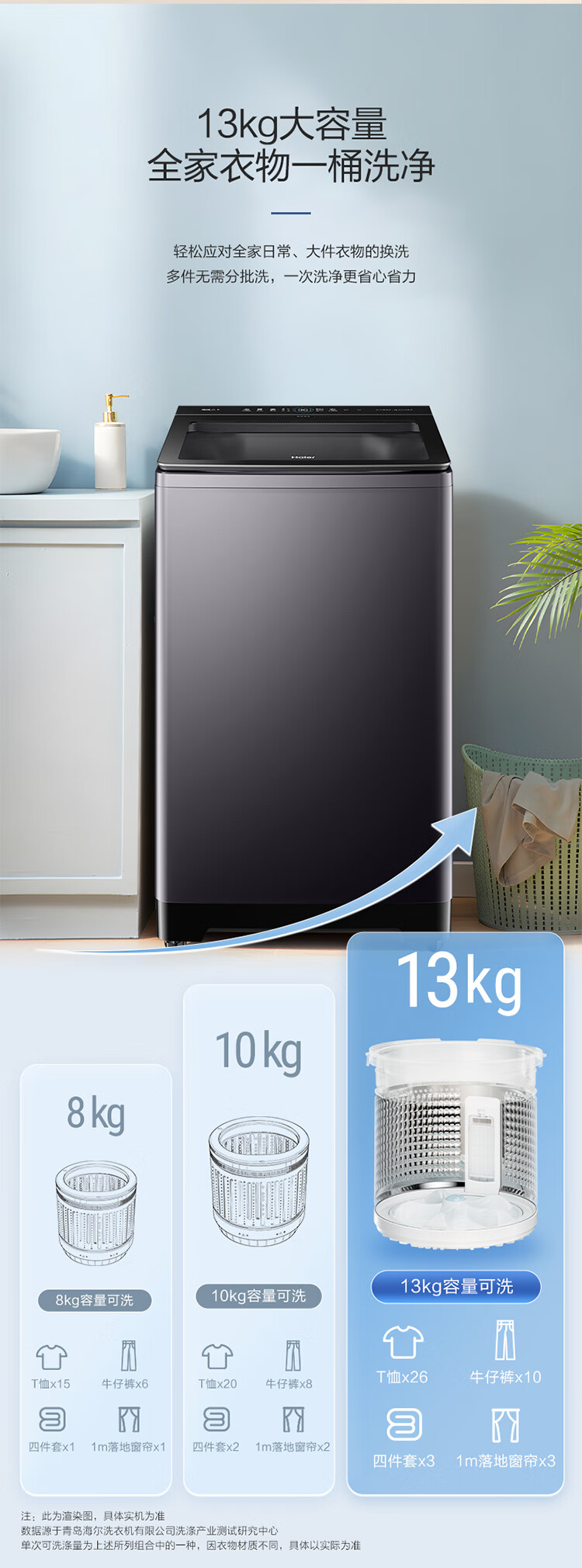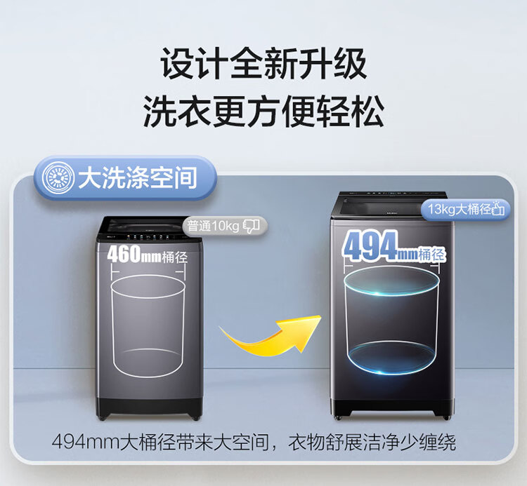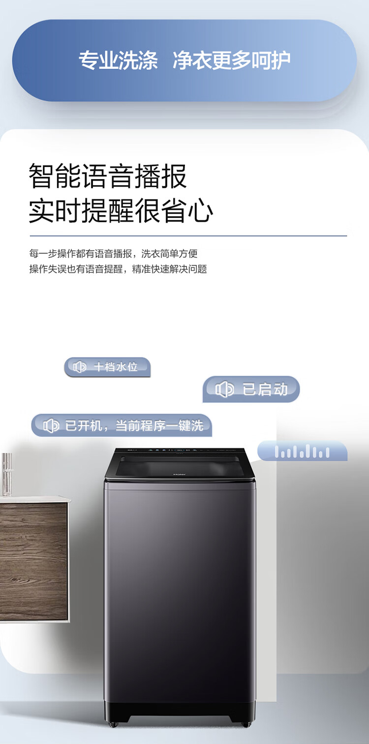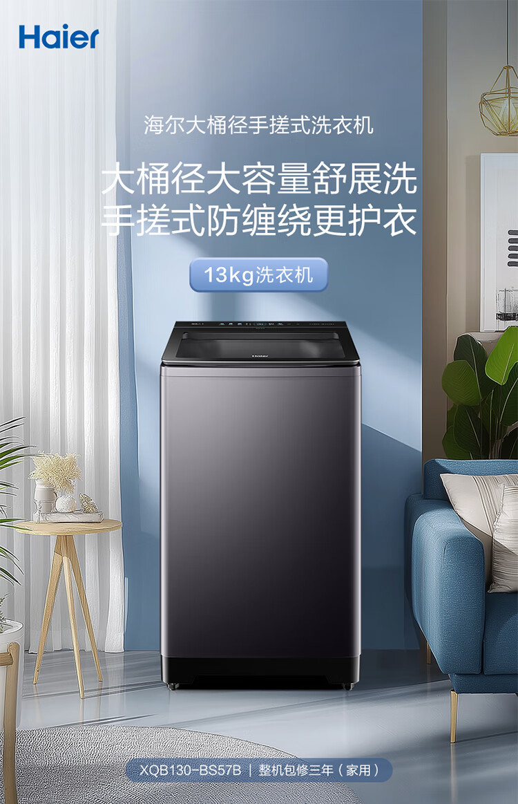 海尔(Haier)波轮洗衣机全自动13公斤大桶径手搓式防缠绕纳米微泡语音播报直驱变频1级能效除菌螨BS57B 13kg|七维减震|494大桶径|一键洗脱