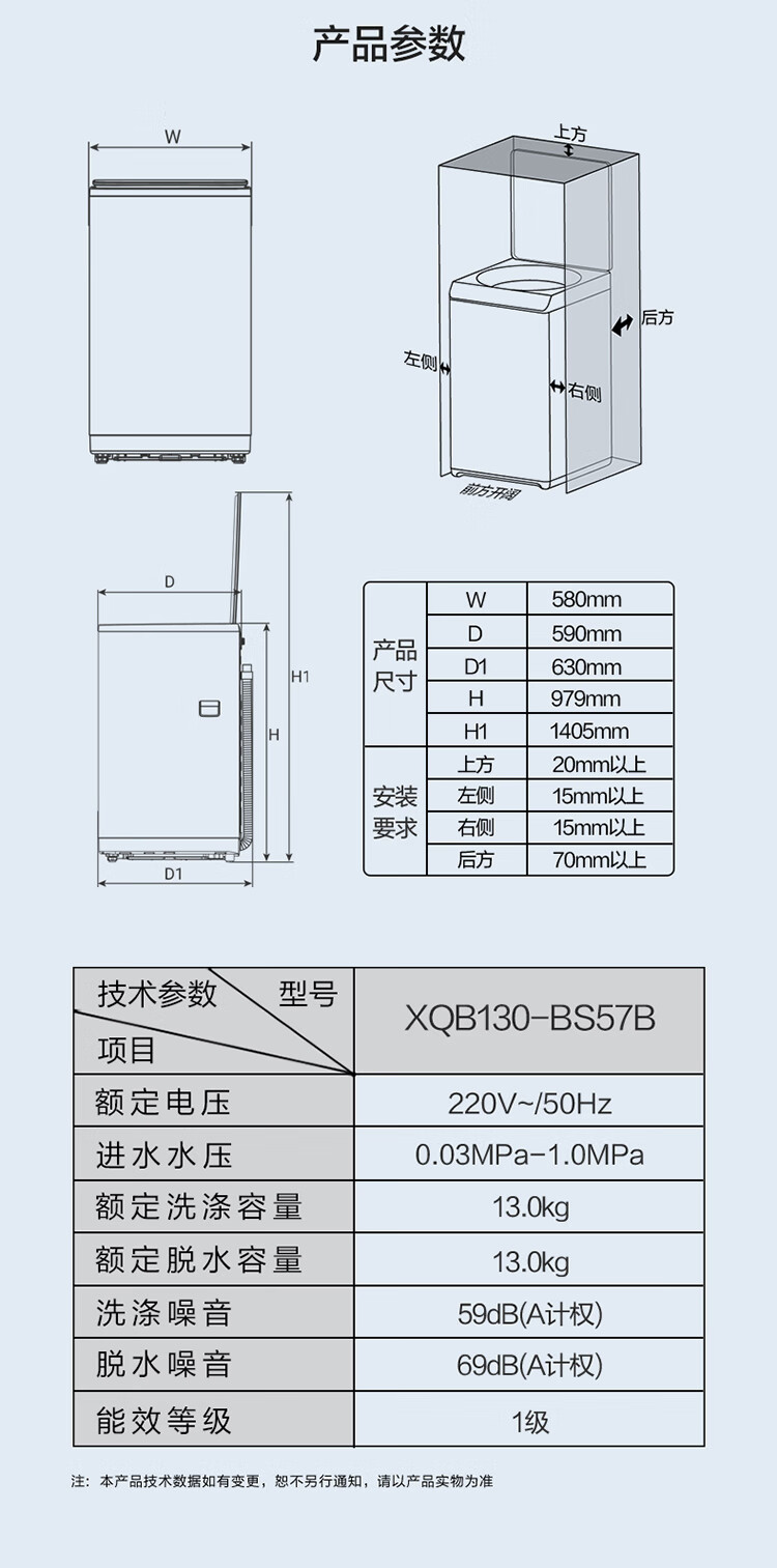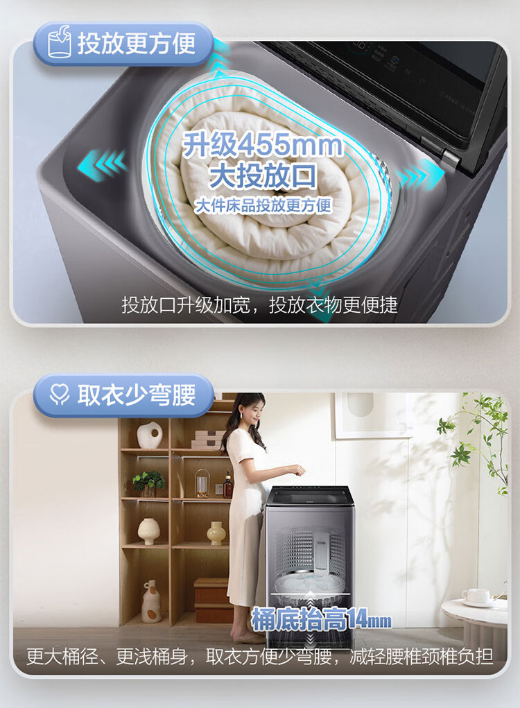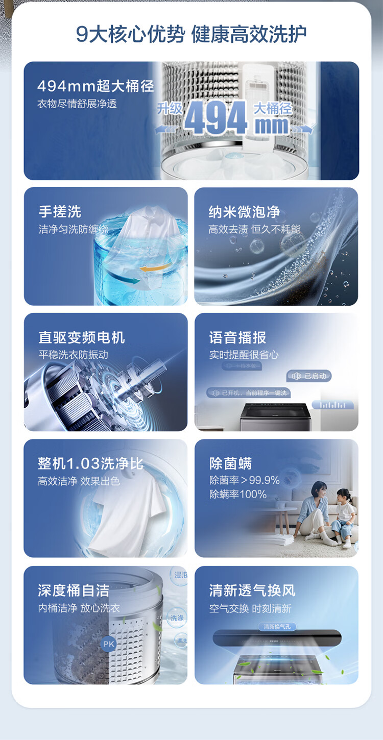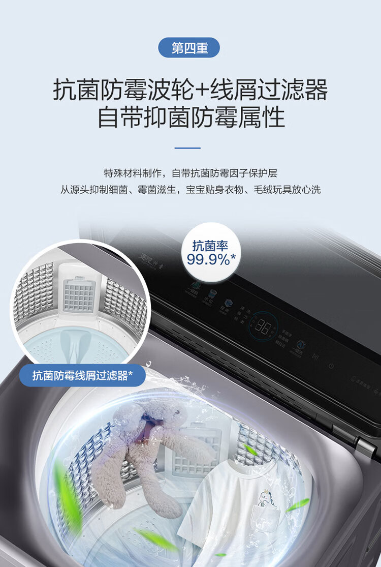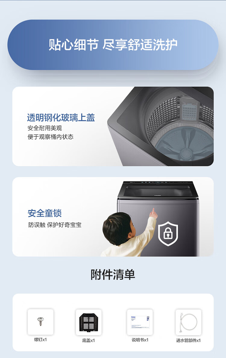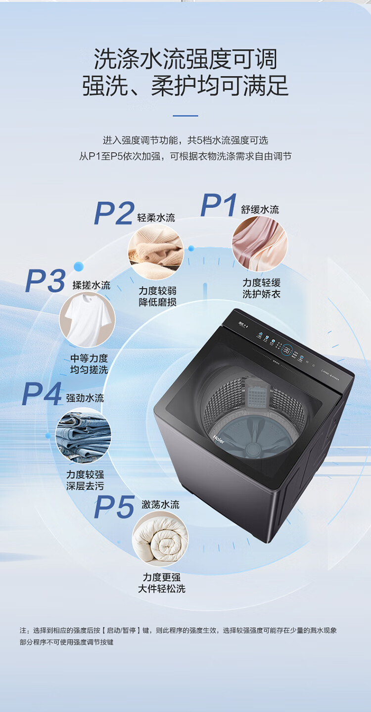 海尔(Haier)波轮洗衣机全自动13公斤大桶径手搓式防缠绕纳米微泡语音播报直驱变频1级能效除菌螨BS57B 13kg|七维减震|494大桶径|一键洗脱