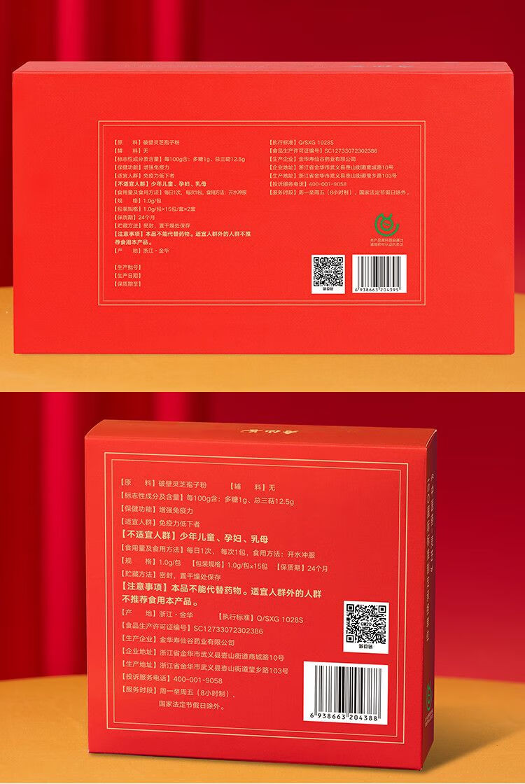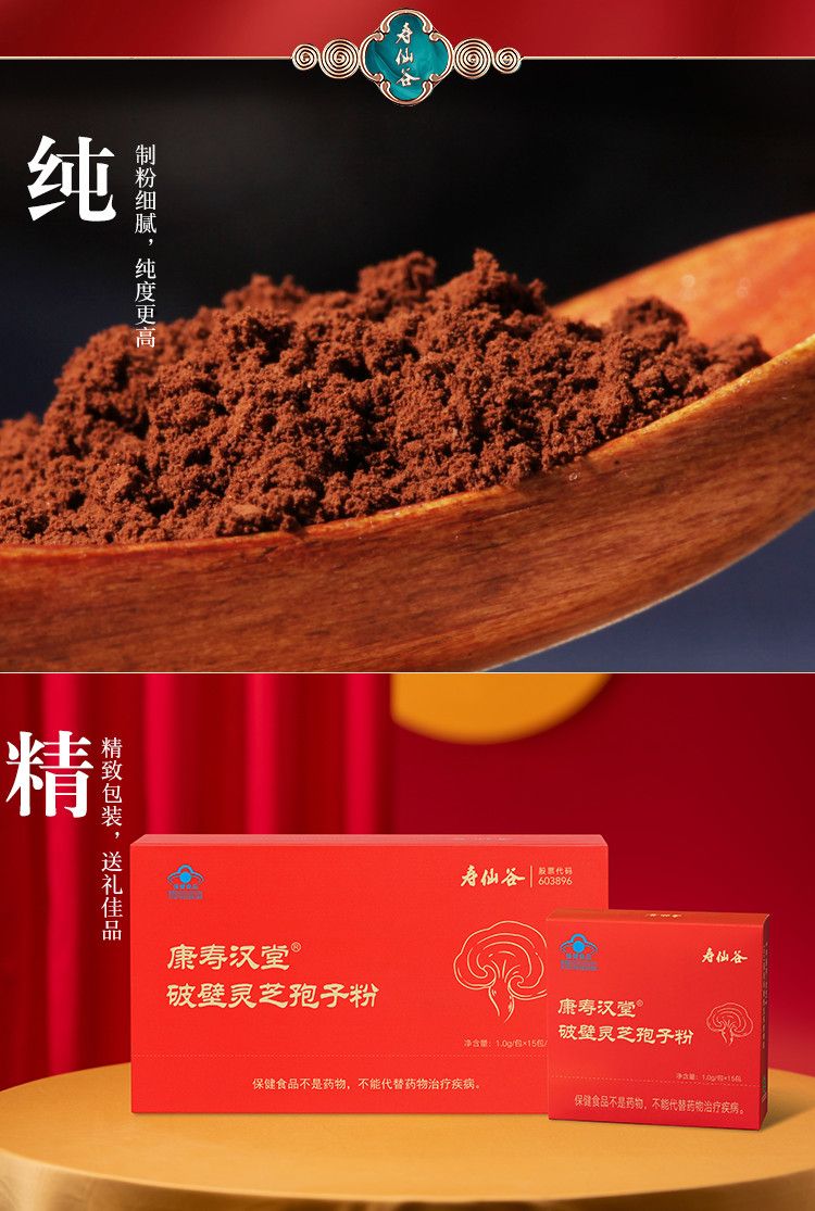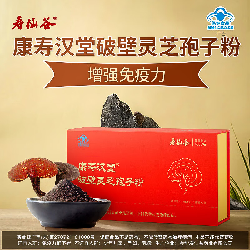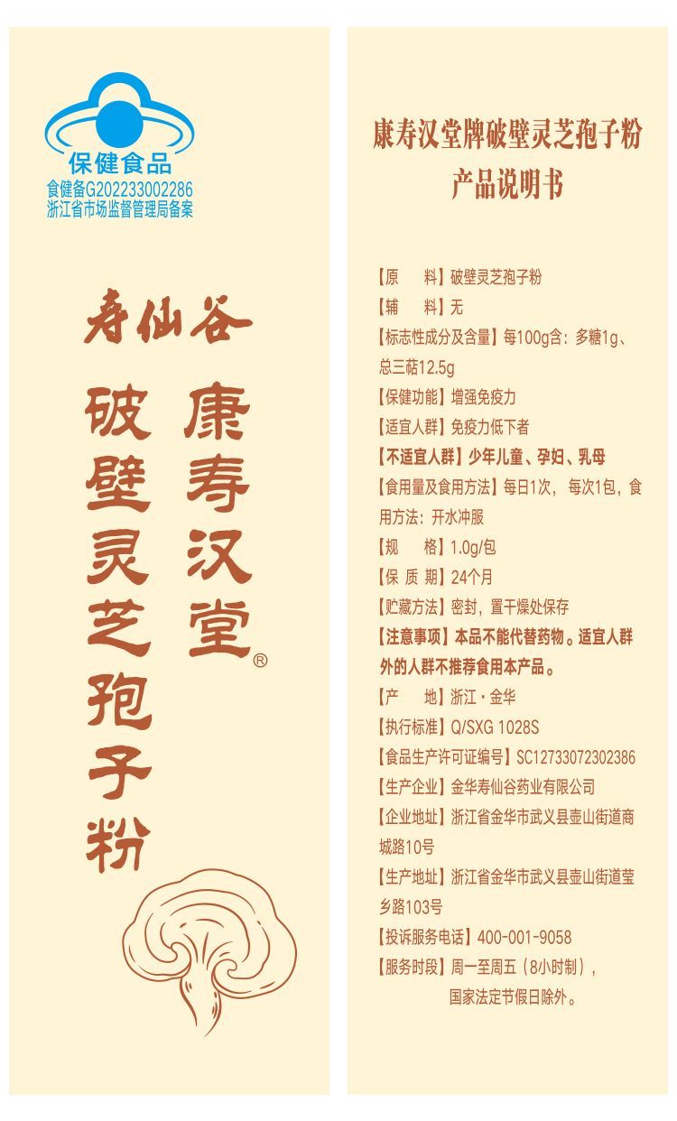 寿仙谷康寿汉堂破壁灵芝孢子粉增强免疫力30g有机营养保健品破壁 1盒 15包