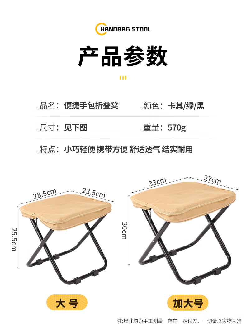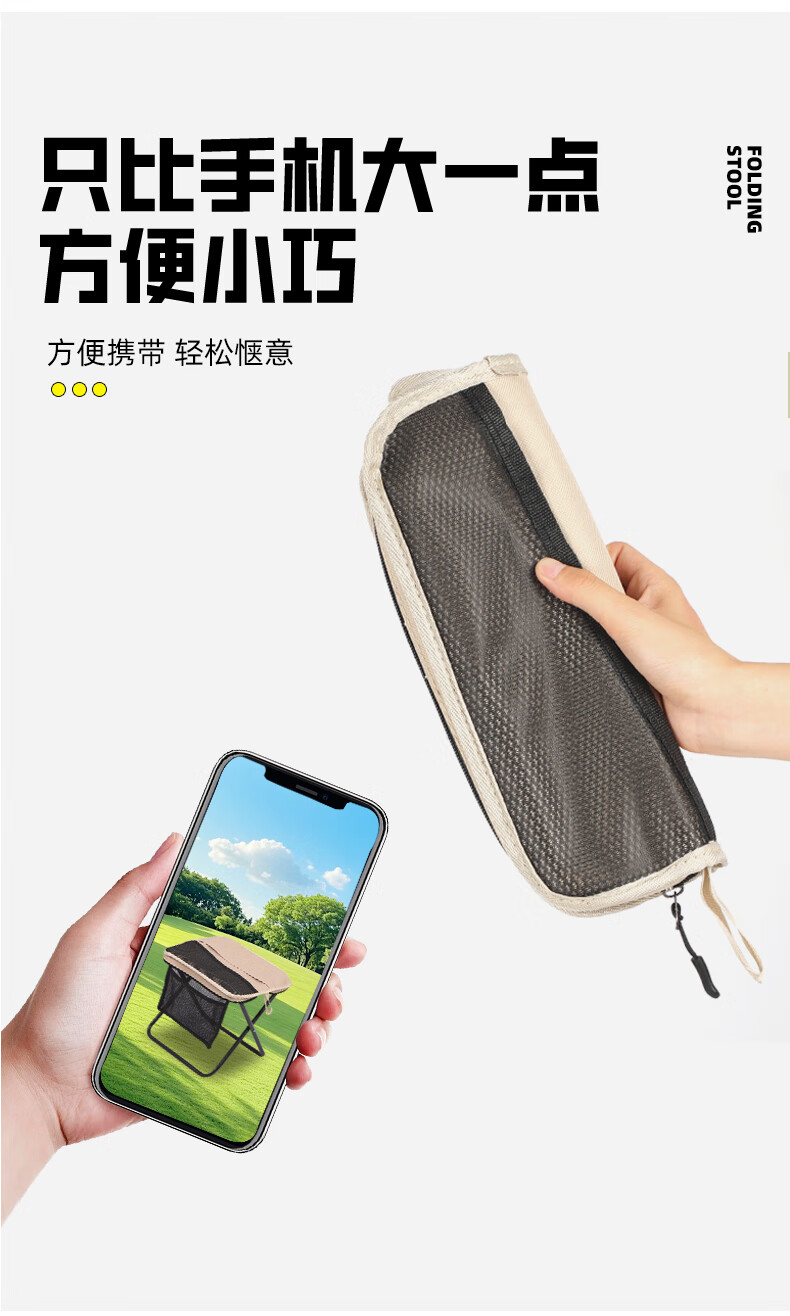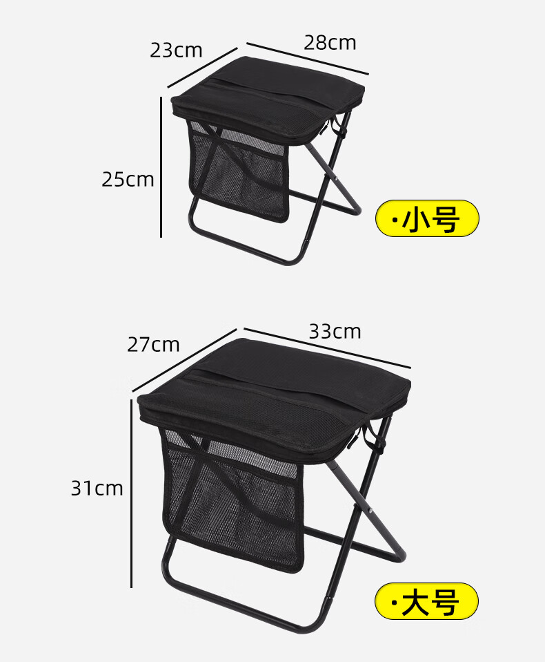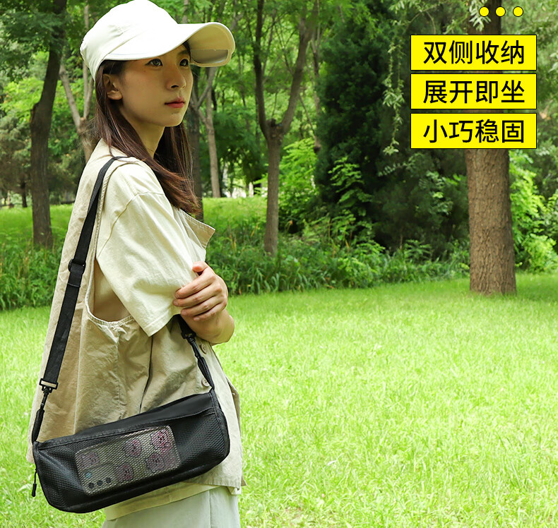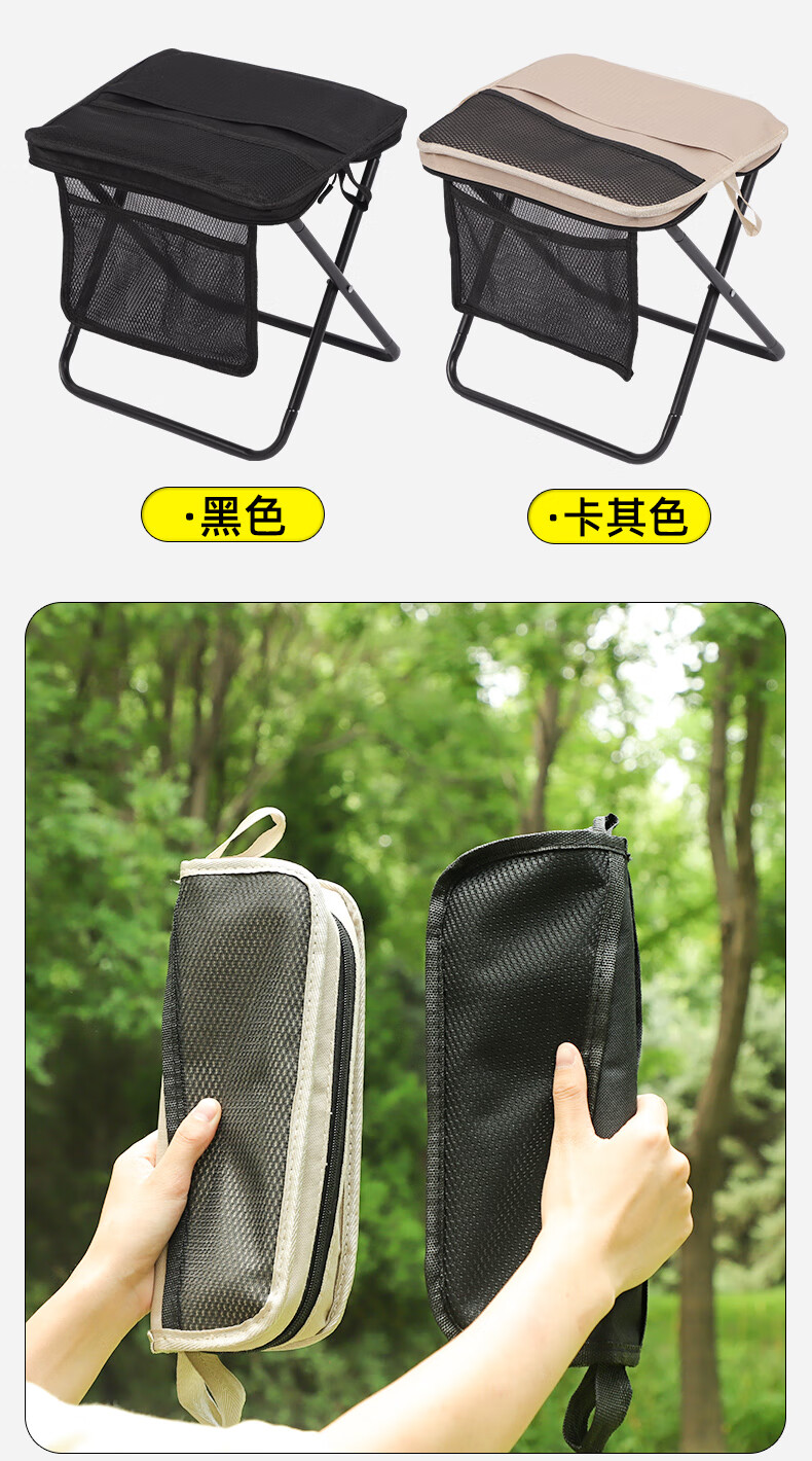 月逸清辉户外折叠椅露营手包凳便携收纳马扎可携带高铁板凳摆摊椅可折叠 【大号-手提款】黑色