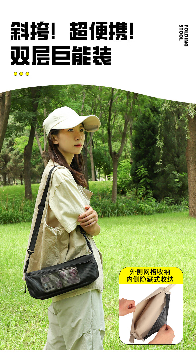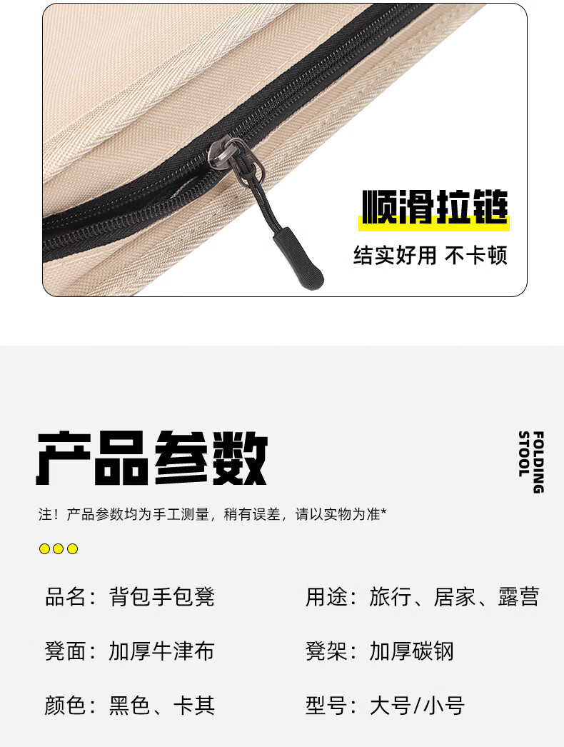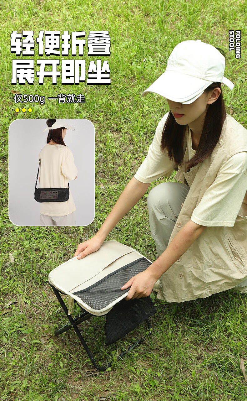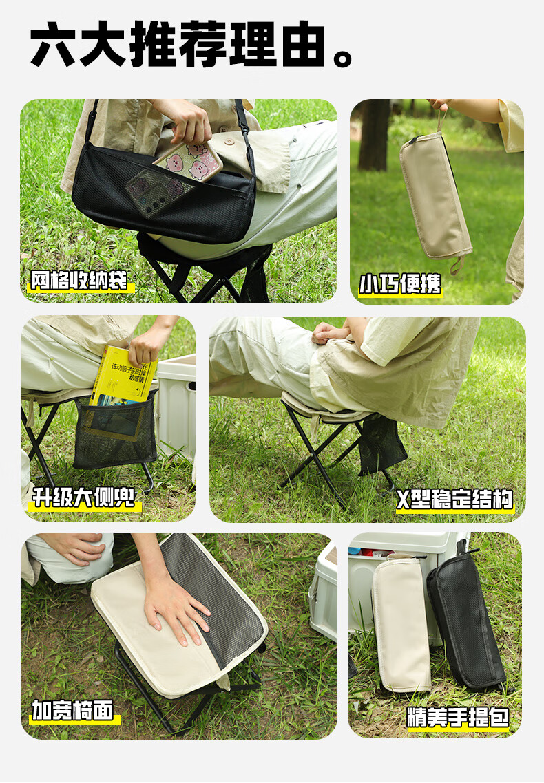月逸清辉户外折叠椅露营手包凳便携收纳马扎可携带高铁板凳摆摊椅可折叠 【大号-手提款】黑色