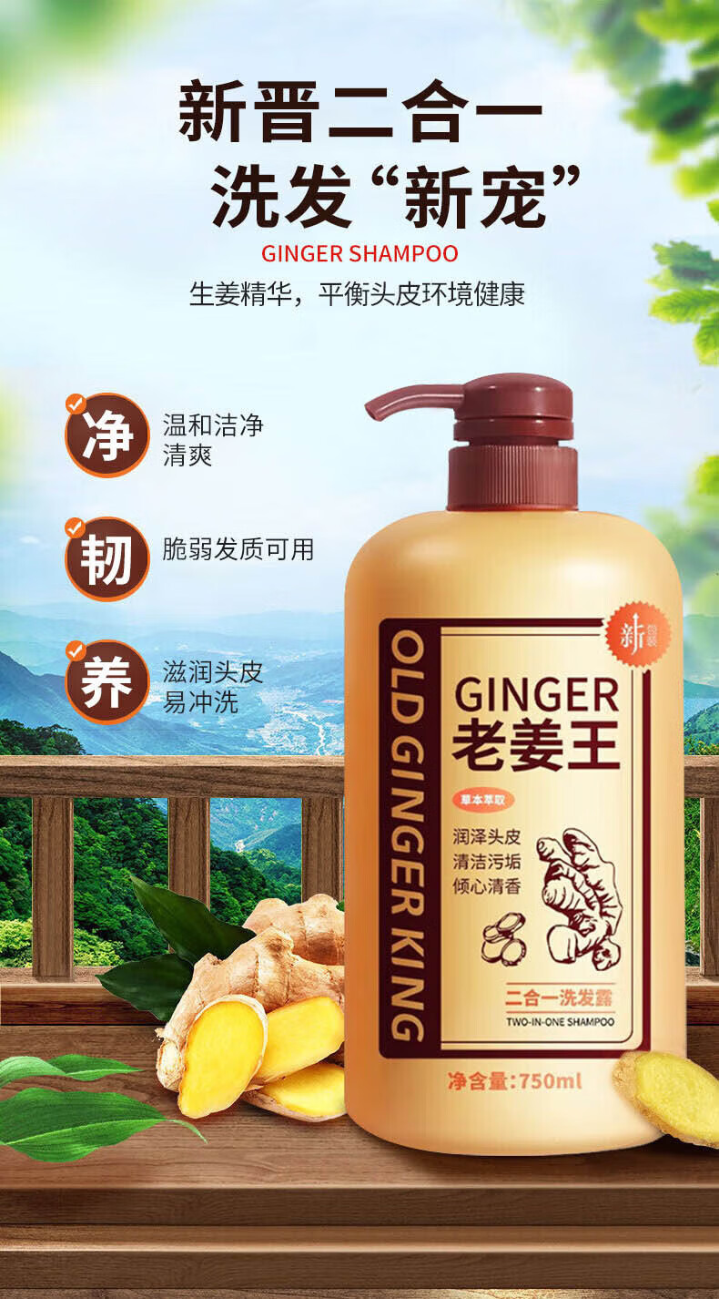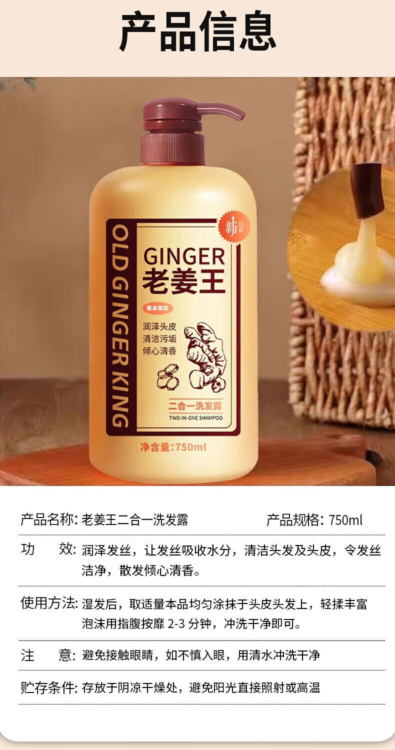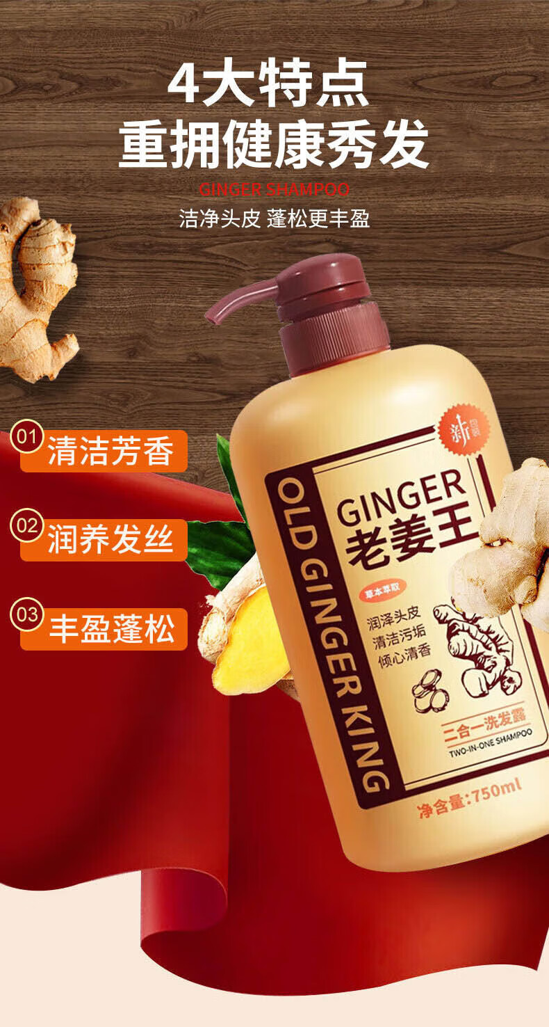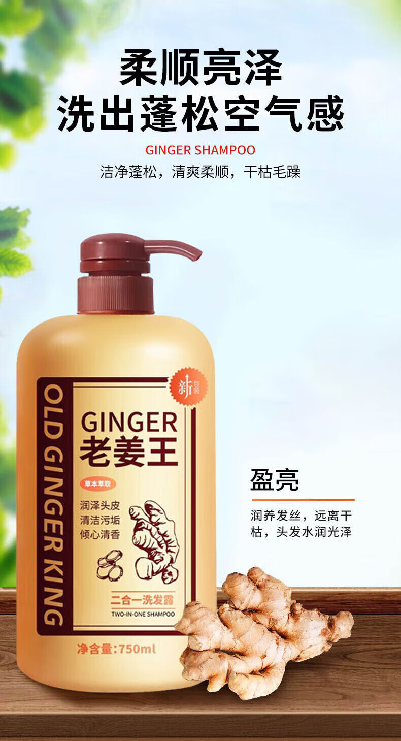 Limeisi国货老姜王生姜洗发水发根健发柔顺清洁蓬松强韧洗发 750ml*1瓶 老姜王洗发水