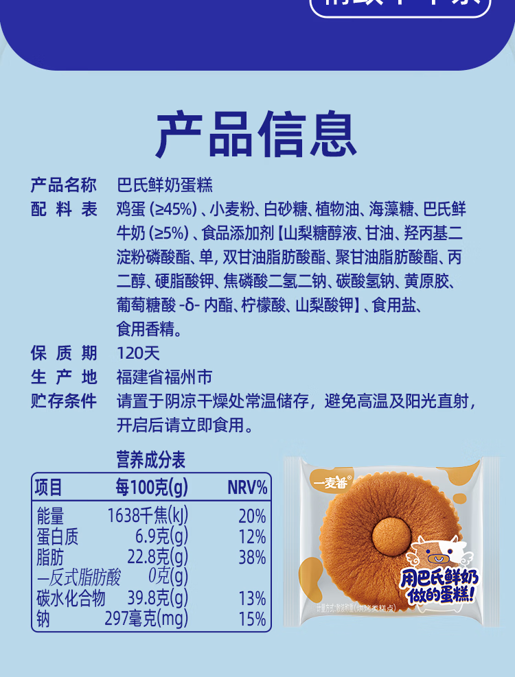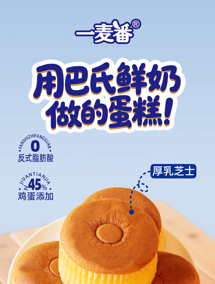 【三只松鼠同厂】一麦番巴氏鲜奶蛋糕休闲零食早餐办公营养面包 【约15个】巴氏鲜奶蛋糕800g