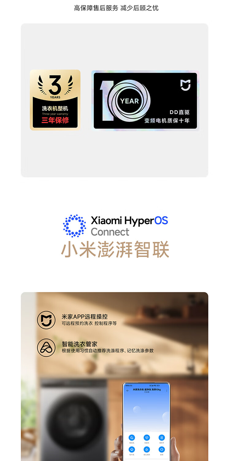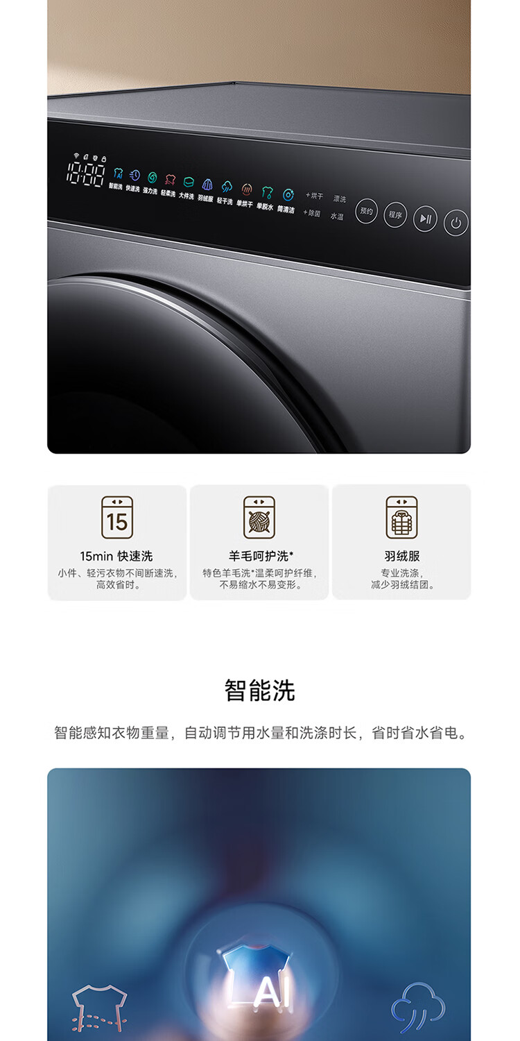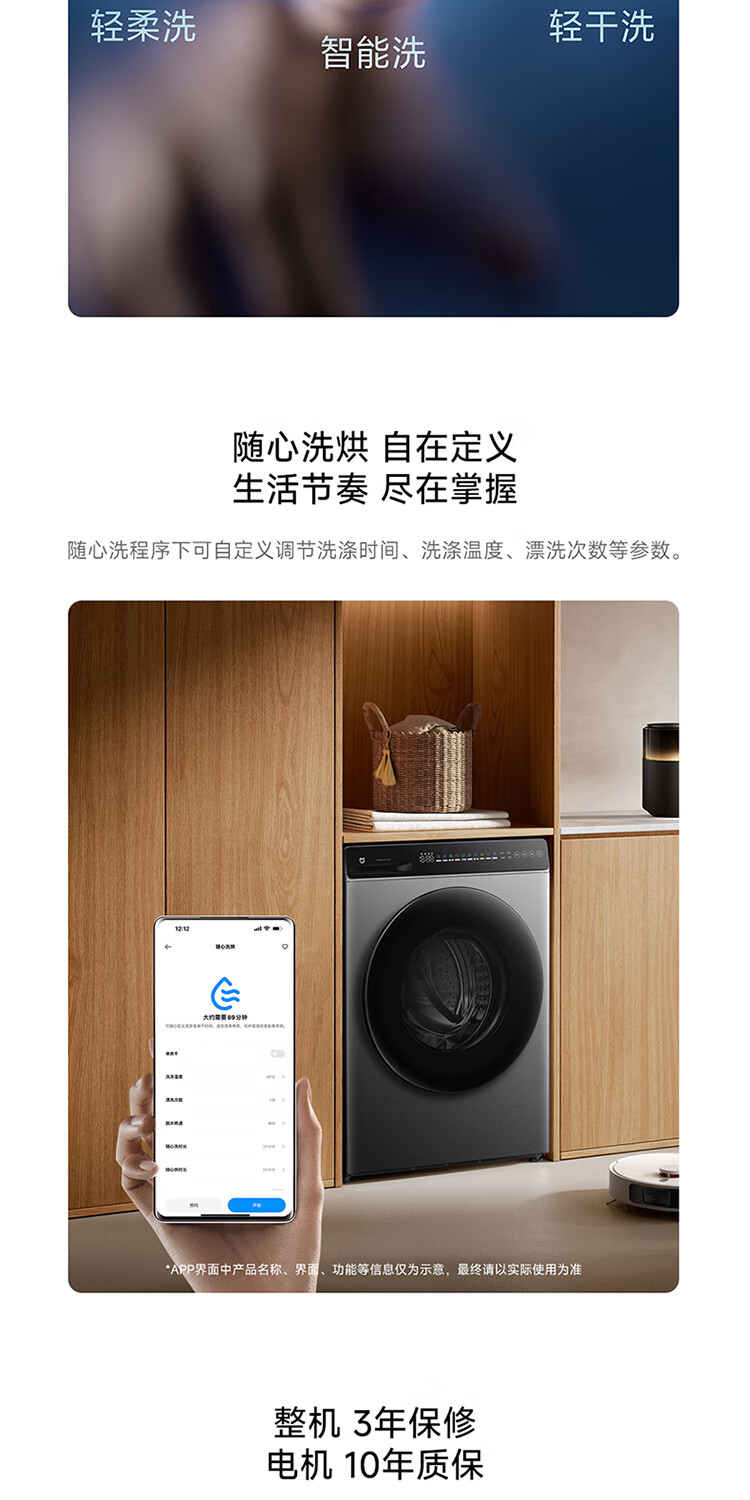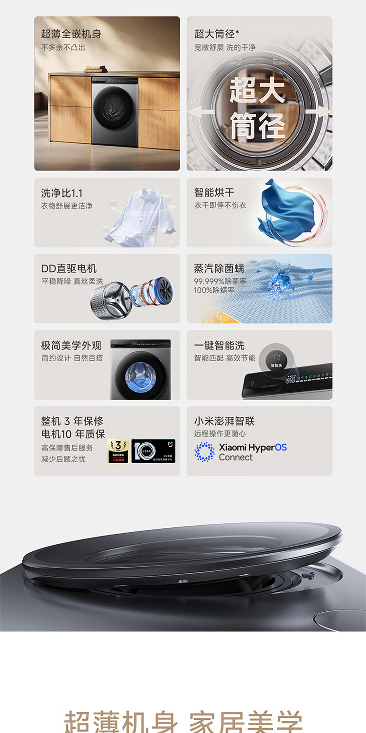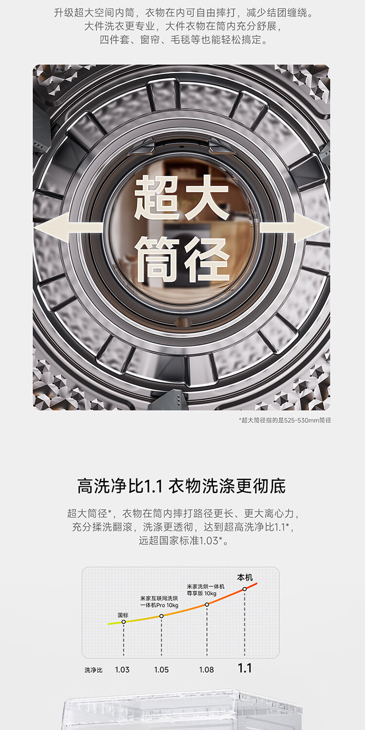 米家【国家至高补贴20%】小米超净洗10公斤滚筒全自动洗烘一体洗衣机超大筒径 1.1高洗净比 直驱电机