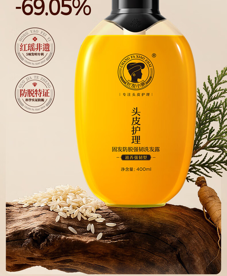 长发小寨【新华社同款】非遗防脱洗发水 红瑶淘米水防脱育发固发养发男女