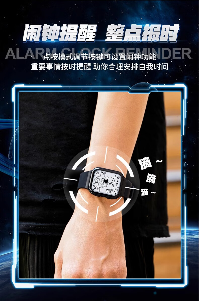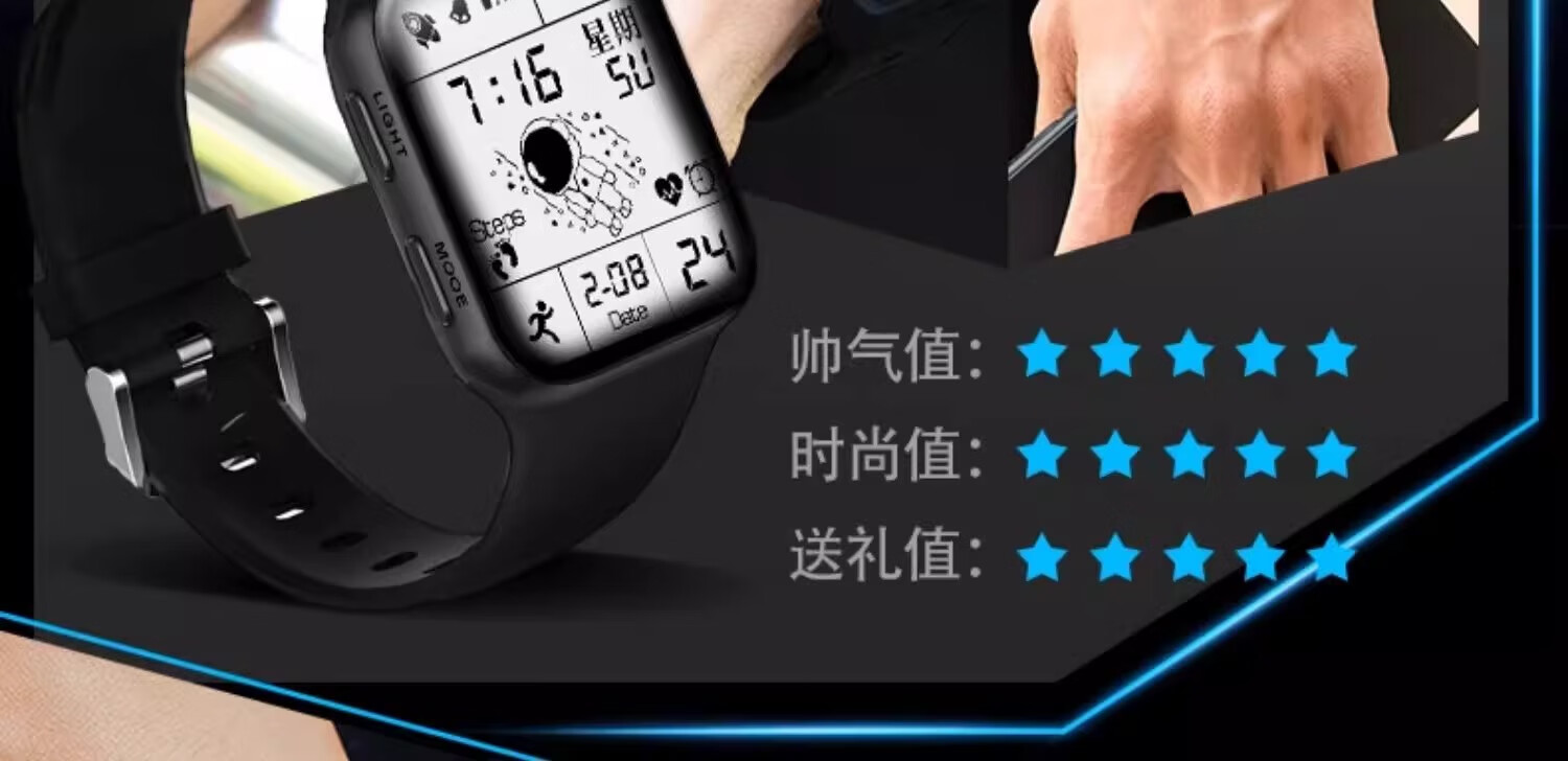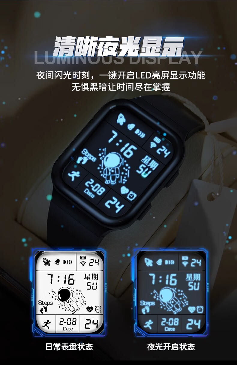 MAX-G全面屏手表青少年初中学生男孩电子表防水夜光多功能运动儿童黑色