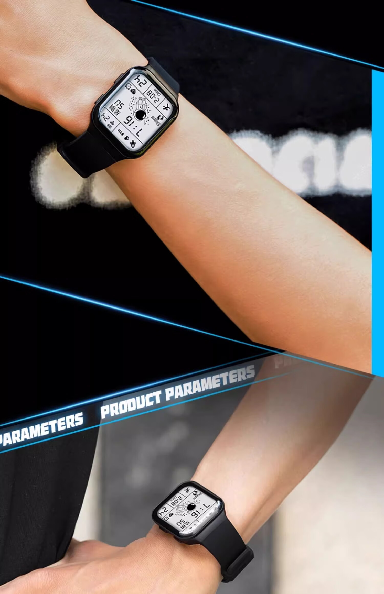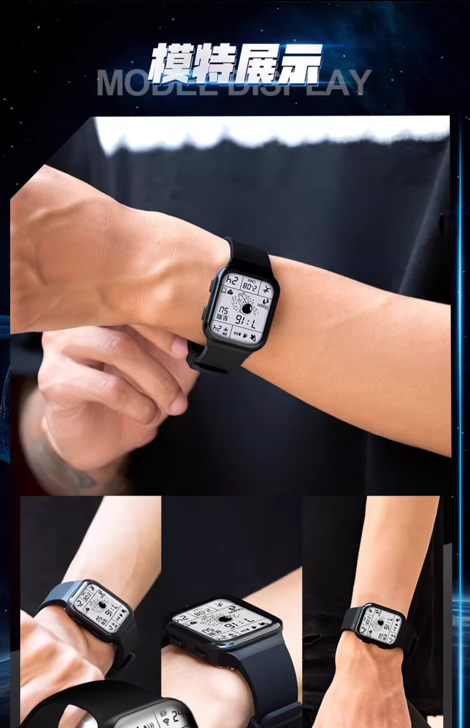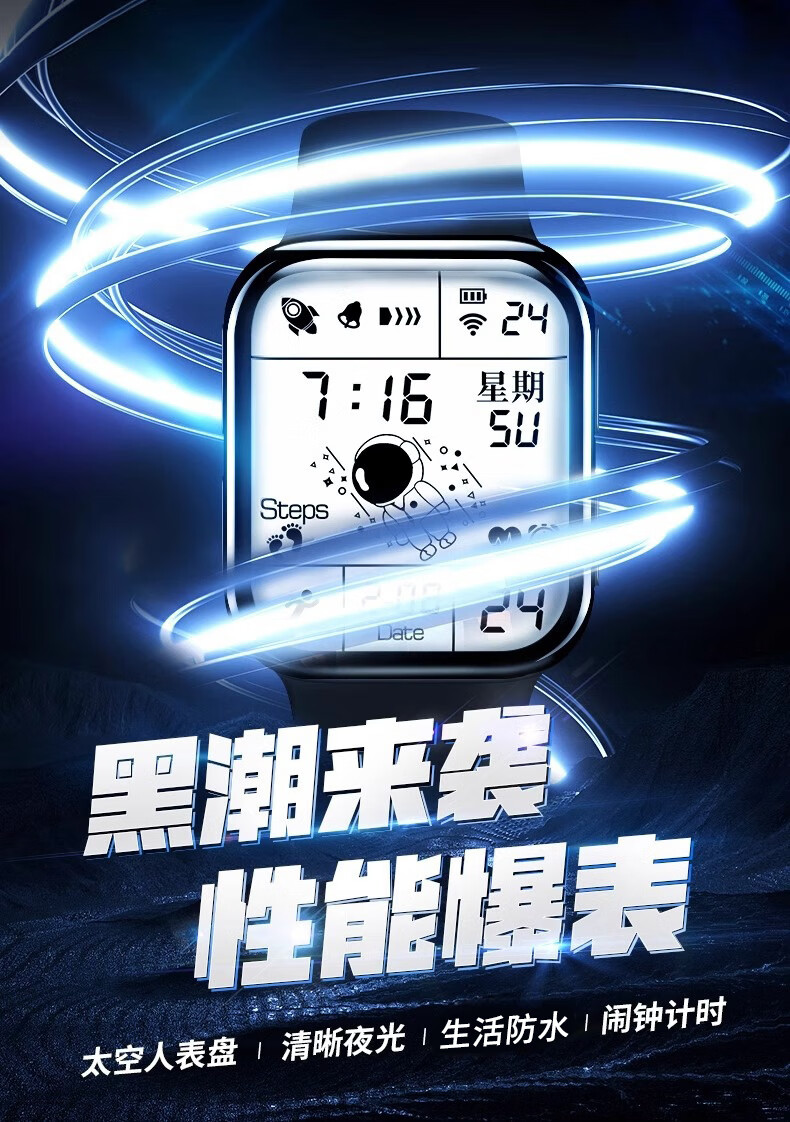 MAX-G全面屏手表青少年初中学生男孩电子表防水夜光多功能运动儿童黑色