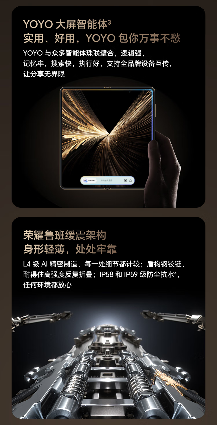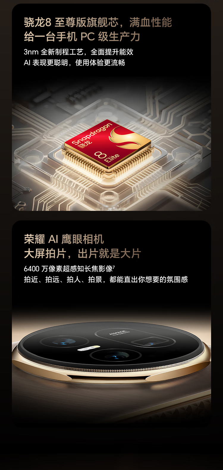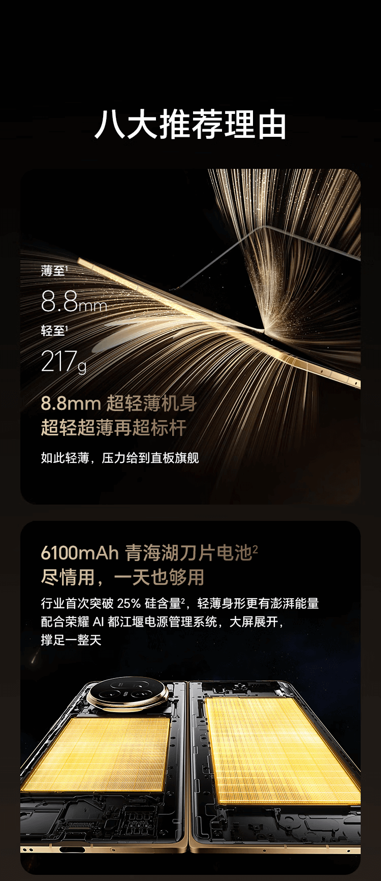 荣耀(HONOR)Magic V5 曙光金 16G+512GB 8.8mm轻薄长续航 6100mAh青海湖刀片电池 AI 折叠屏手机【小时达】
