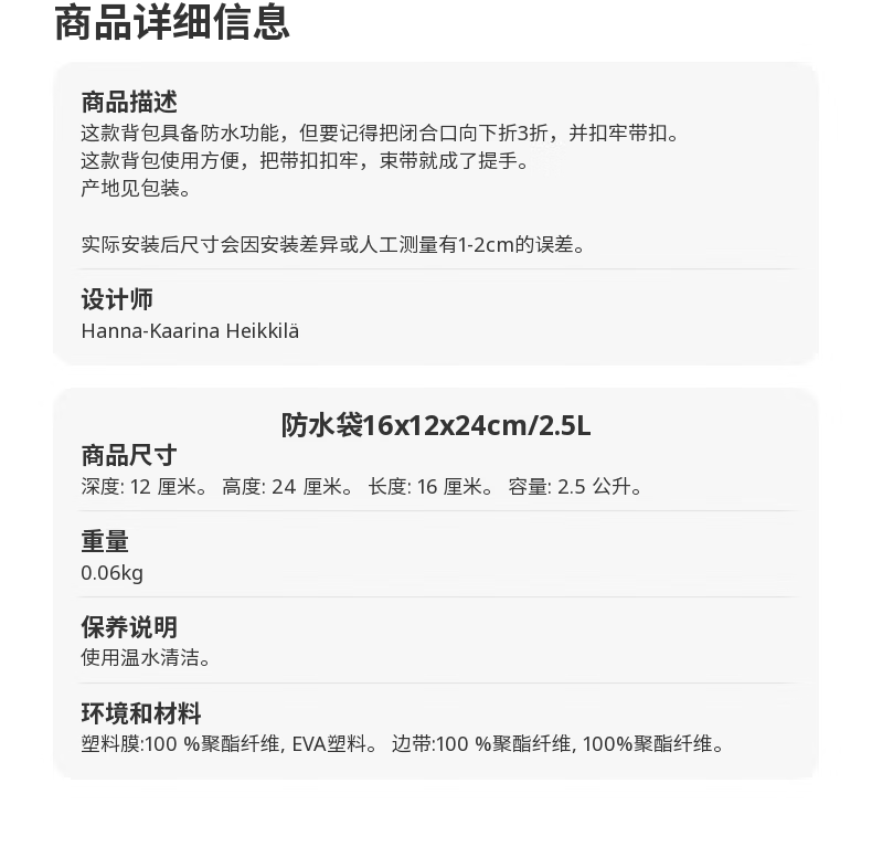 宜家(IKEA)顺手买一件RENSARE 雷恩萨瑞 防水袋 16x12x24 厘米/2.5 公升 防水袋16x12x24 厘米/2.5 公升