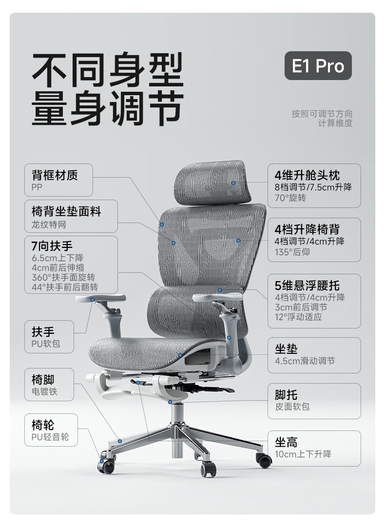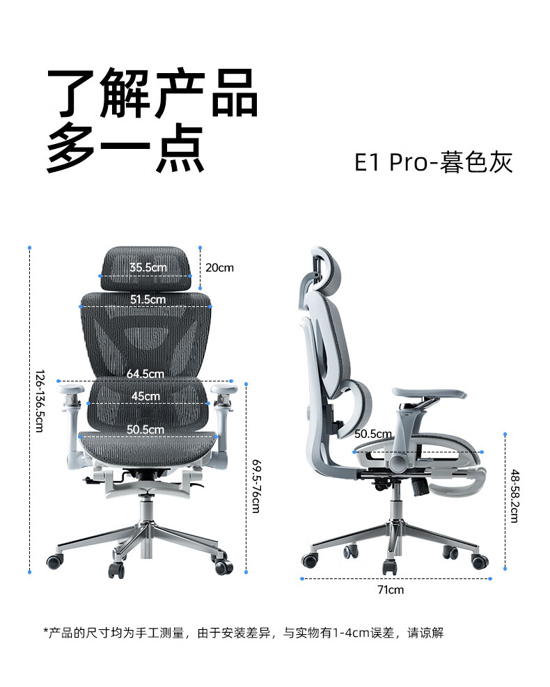Totguard 人体工学椅电脑椅办公椅子电竞椅学习椅人工力学椅 E1Pro-暮色灰
