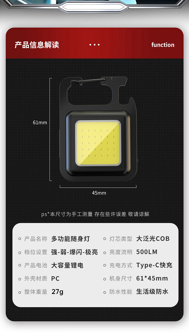 神鱼(SHENYU)钥匙扣灯充电式照明灯工作小手电筒方块灯随身钓鱼灯露营灯野外用 【顶配】持久续航