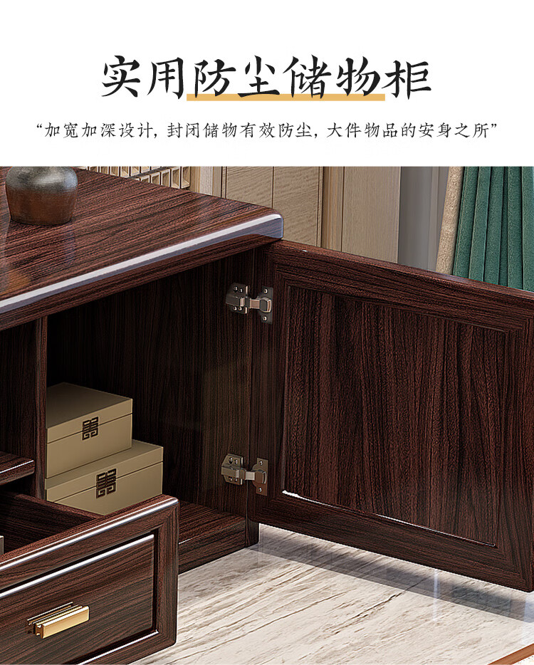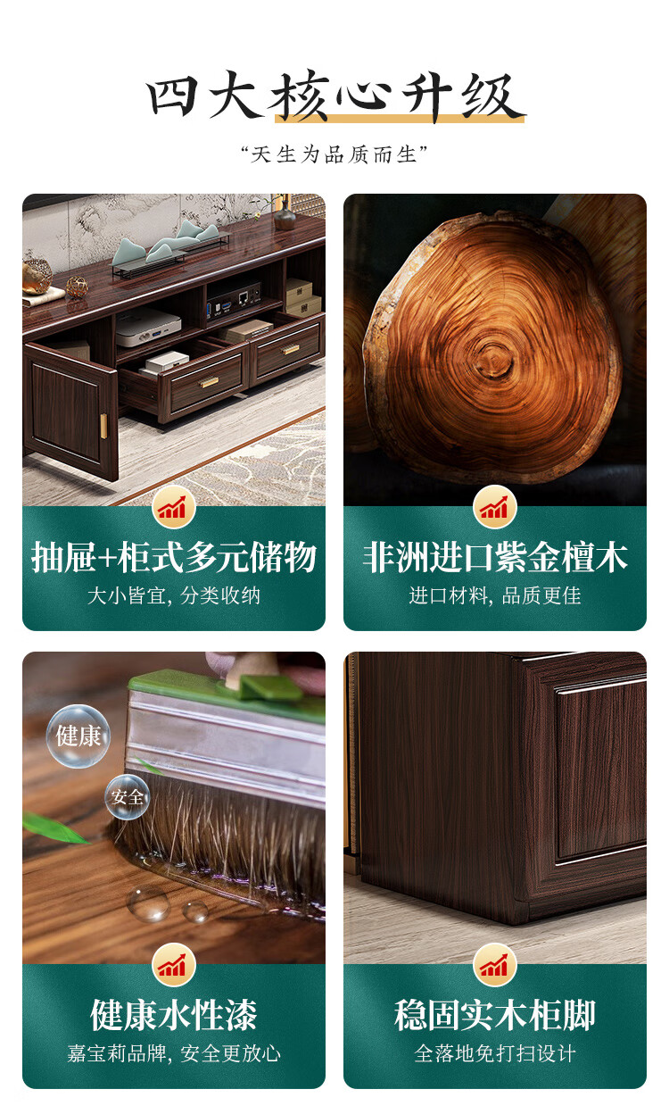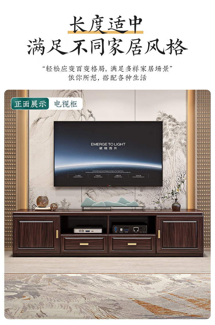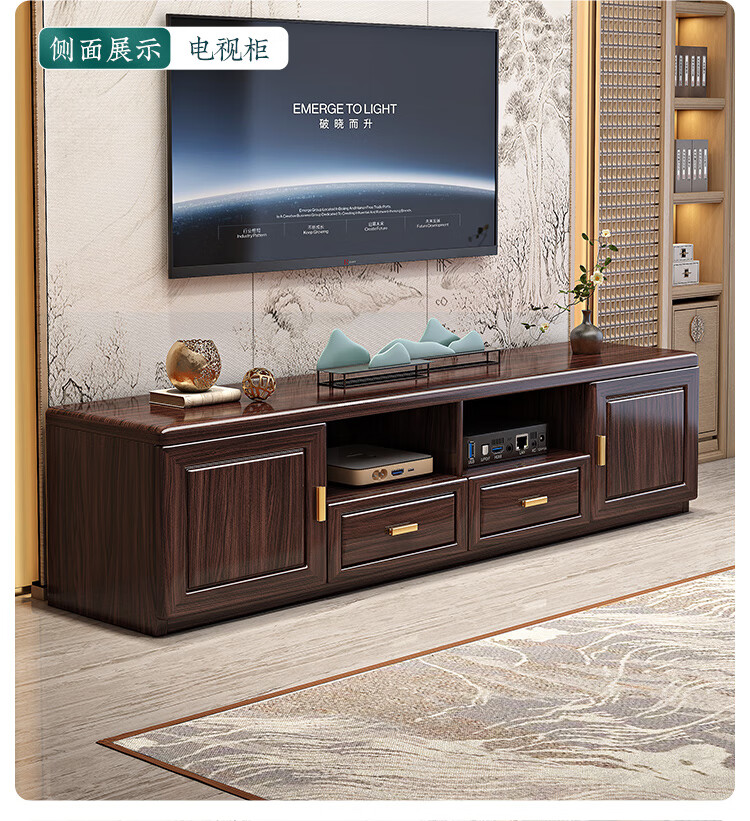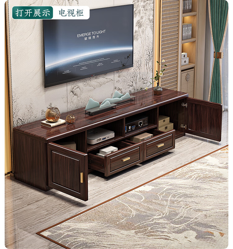 澜轩紫金檀木实木电视柜茶几组合新中式客厅伸缩影视柜地柜大储物柜 【紫金檀木】808#电视柜(2.0米)