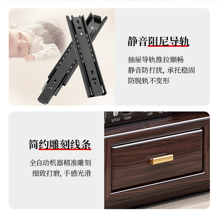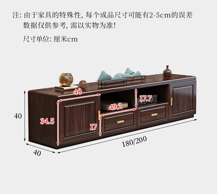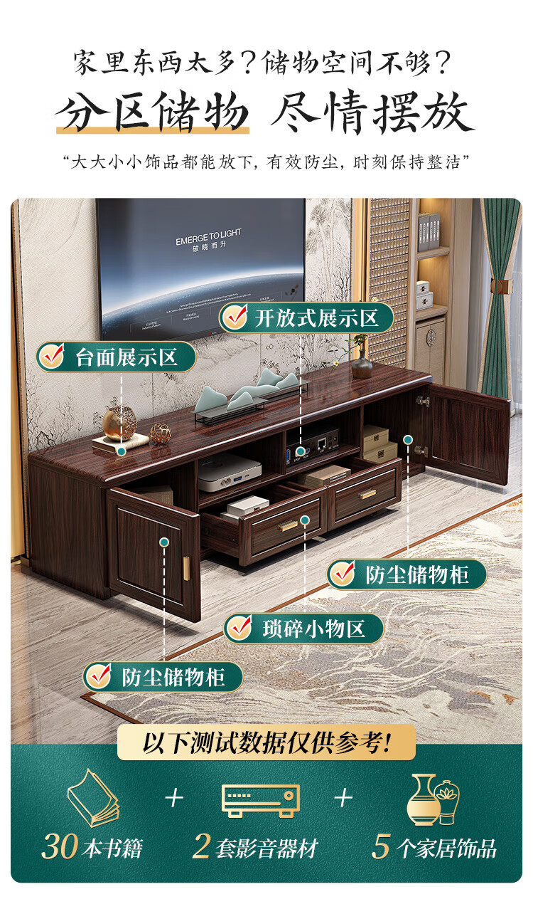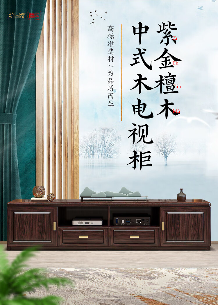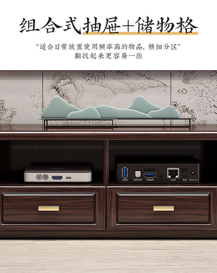 澜轩紫金檀木实木电视柜茶几组合新中式客厅伸缩影视柜地柜大储物柜 【紫金檀木】808#电视柜(2.0米)