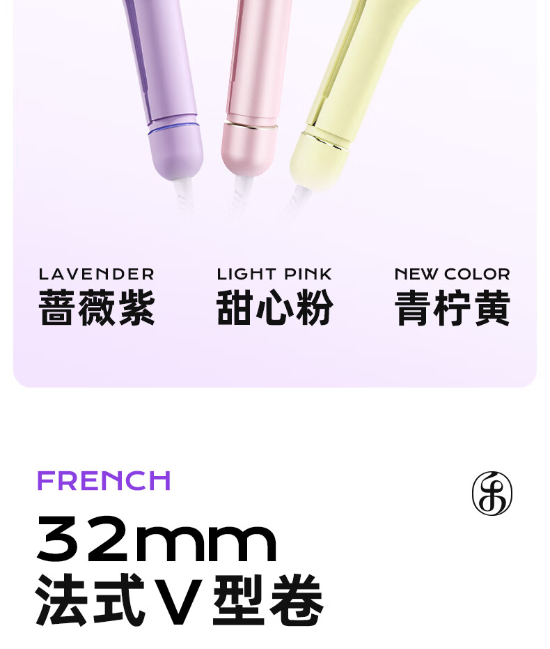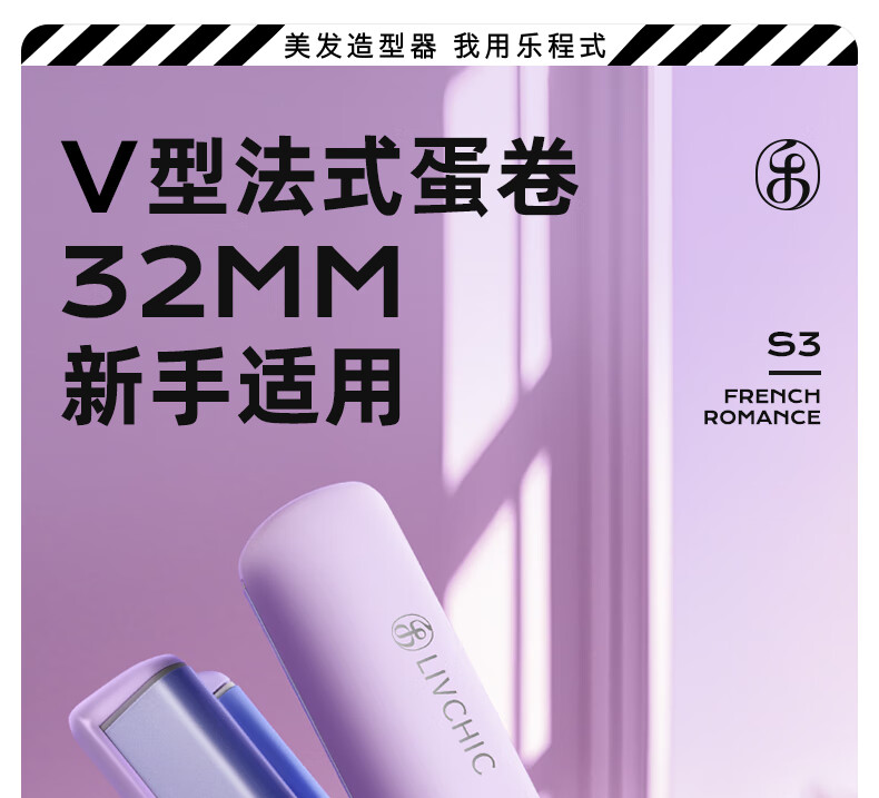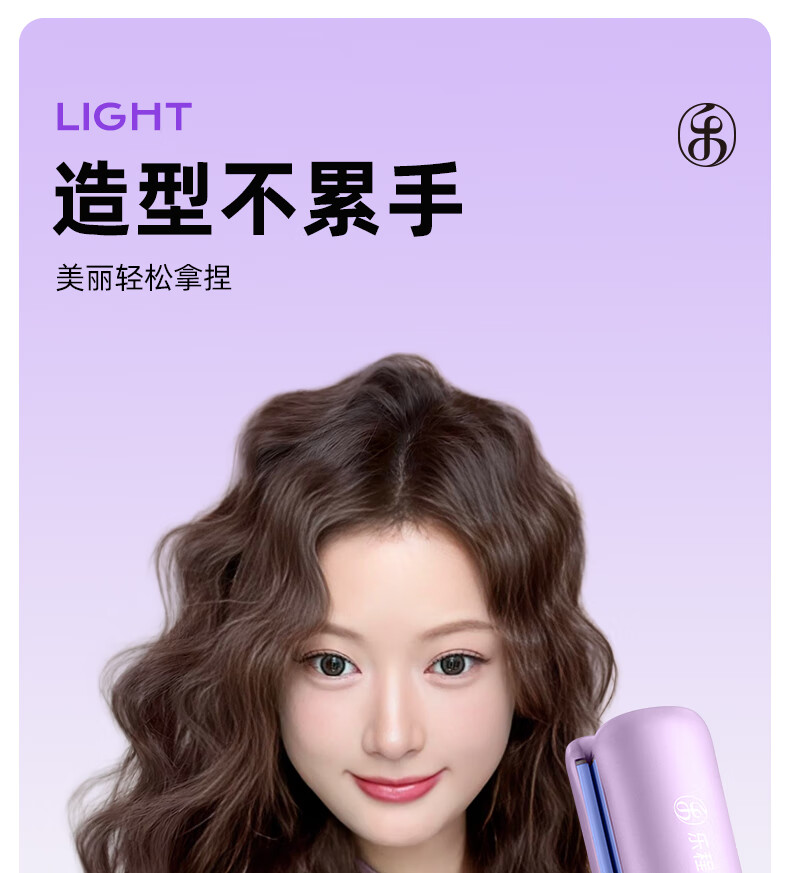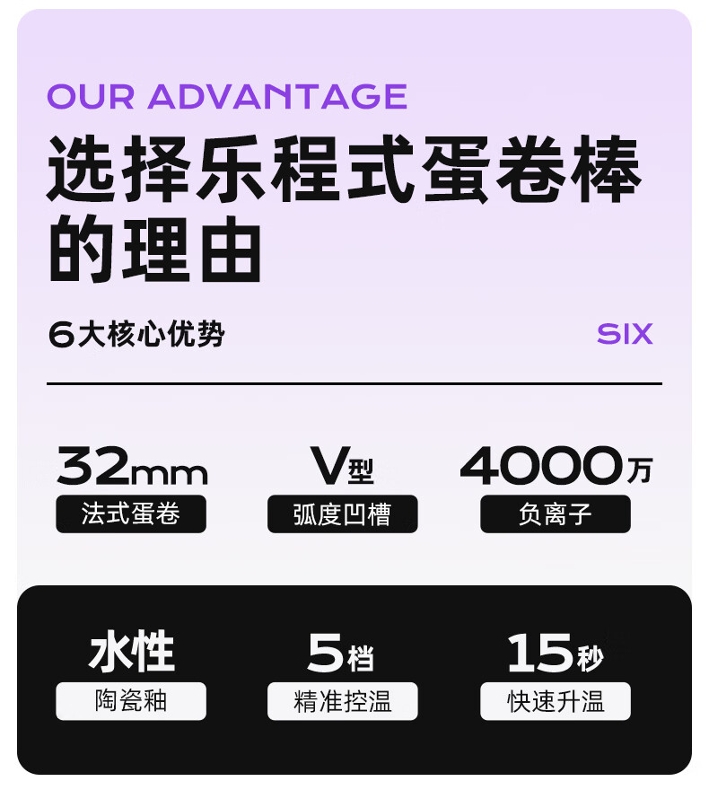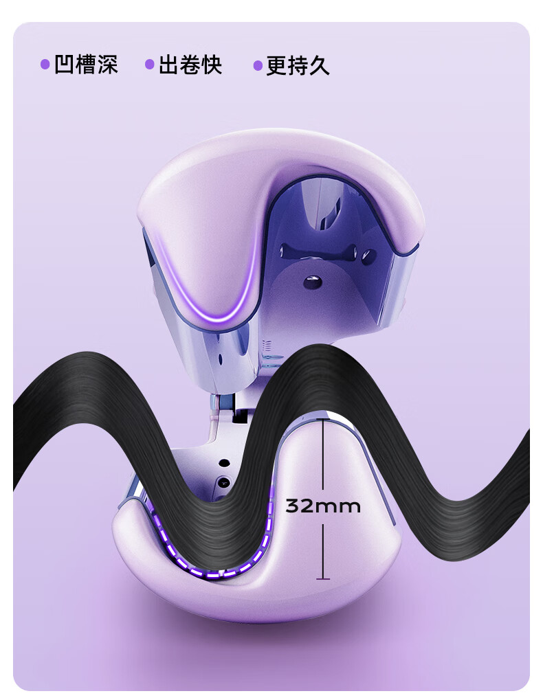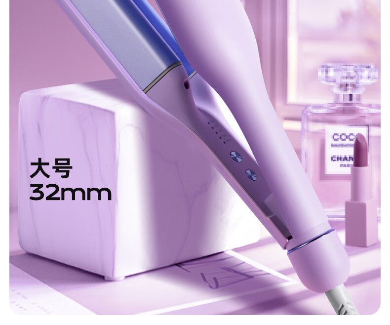 乐程式深V蛋卷卷发棒32mm负离子水波纹蛋卷头大波浪法式蛋蛋卷蛋卷棒夹板烫发棒卷发神器送礼礼物 星黛紫