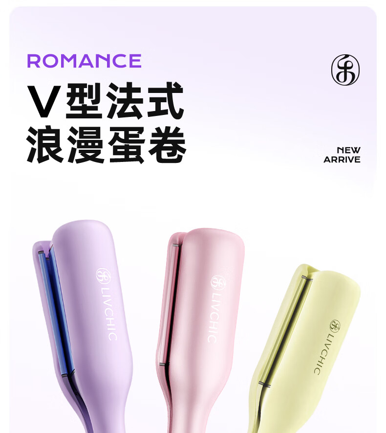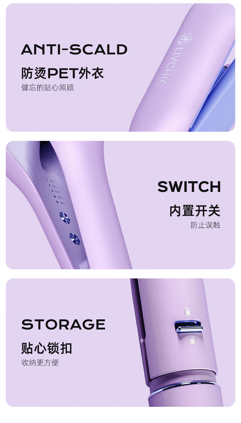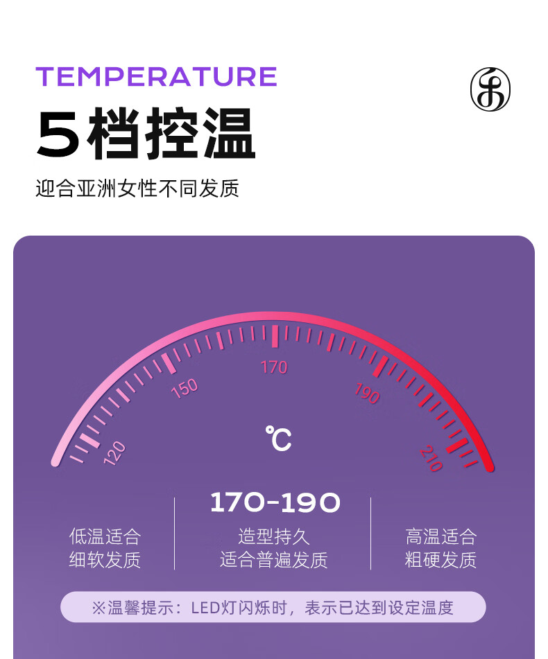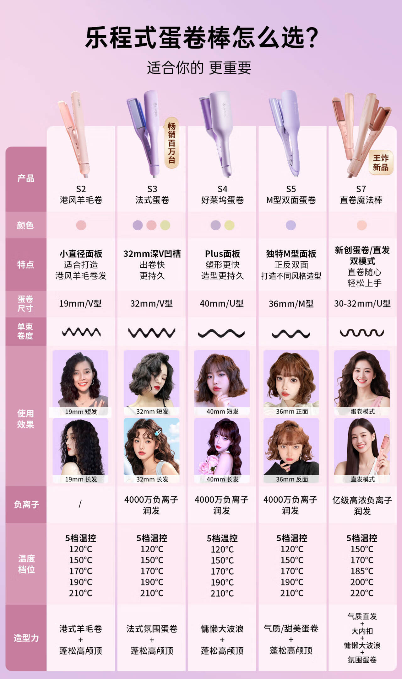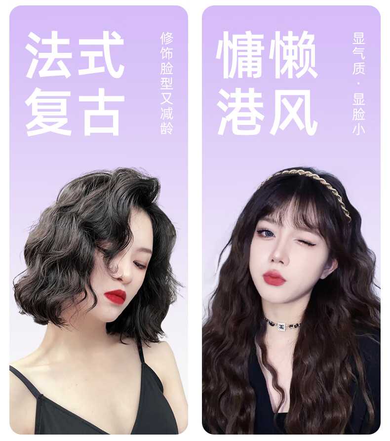 乐程式深V蛋卷卷发棒32mm负离子水波纹蛋卷头大波浪法式蛋蛋卷蛋卷棒夹板烫发棒卷发神器送礼礼物 星黛紫
