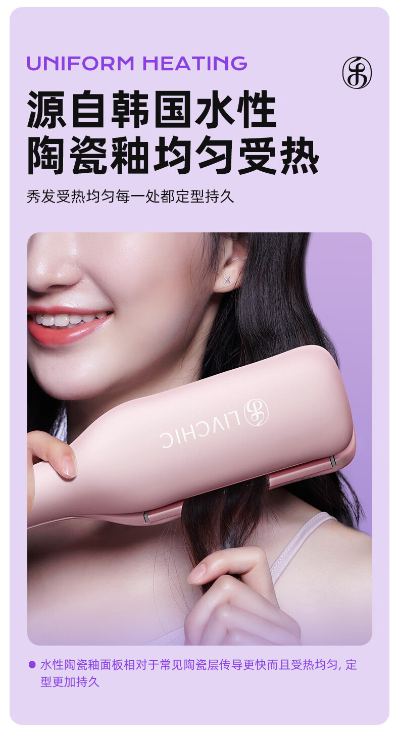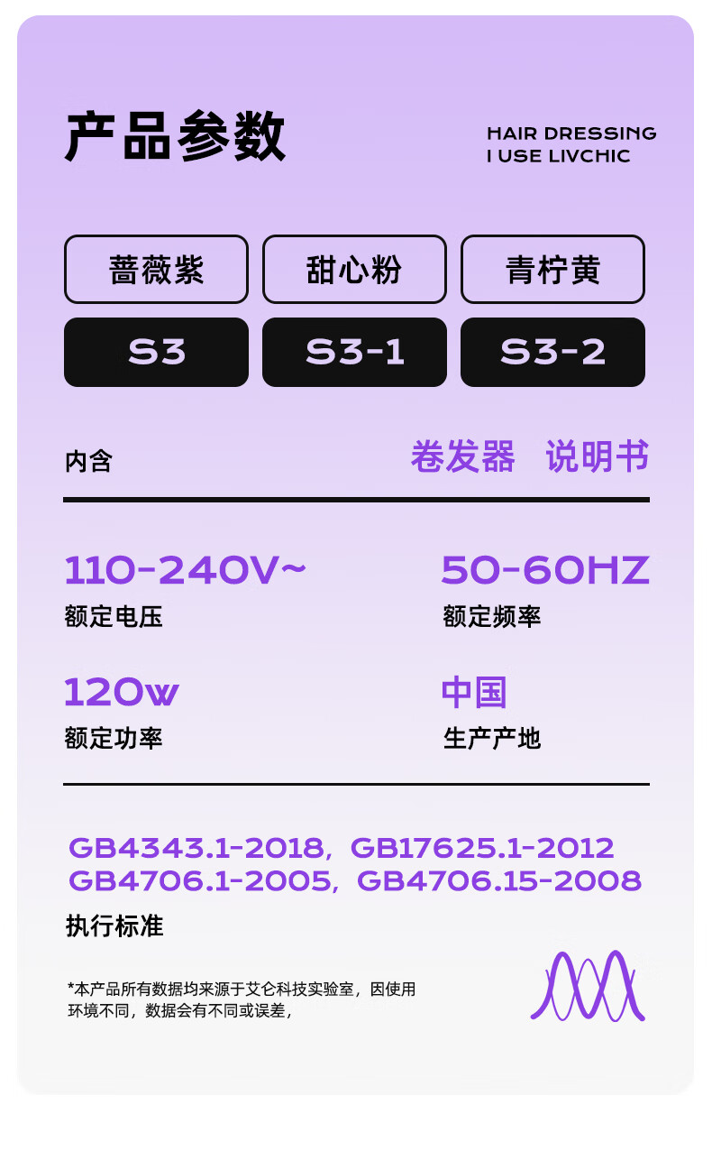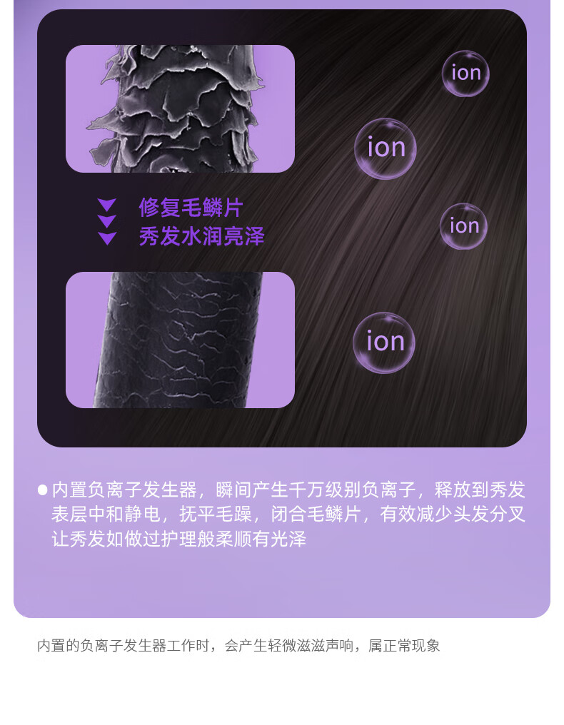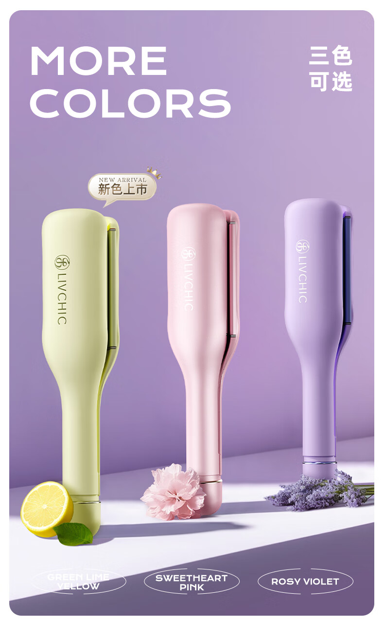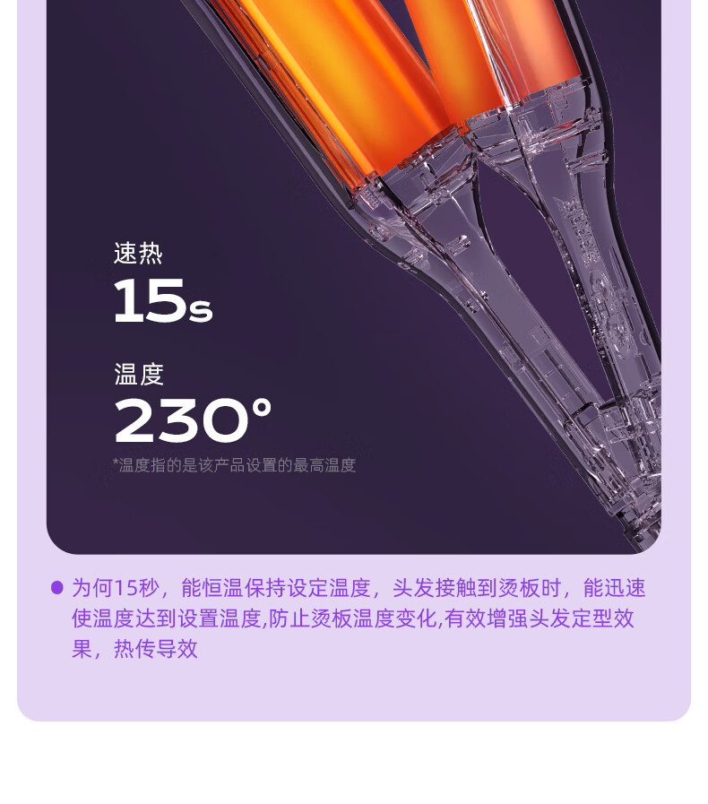 乐程式深V蛋卷卷发棒32mm负离子水波纹蛋卷头大波浪法式蛋蛋卷蛋卷棒夹板烫发棒卷发神器送礼礼物 星黛紫