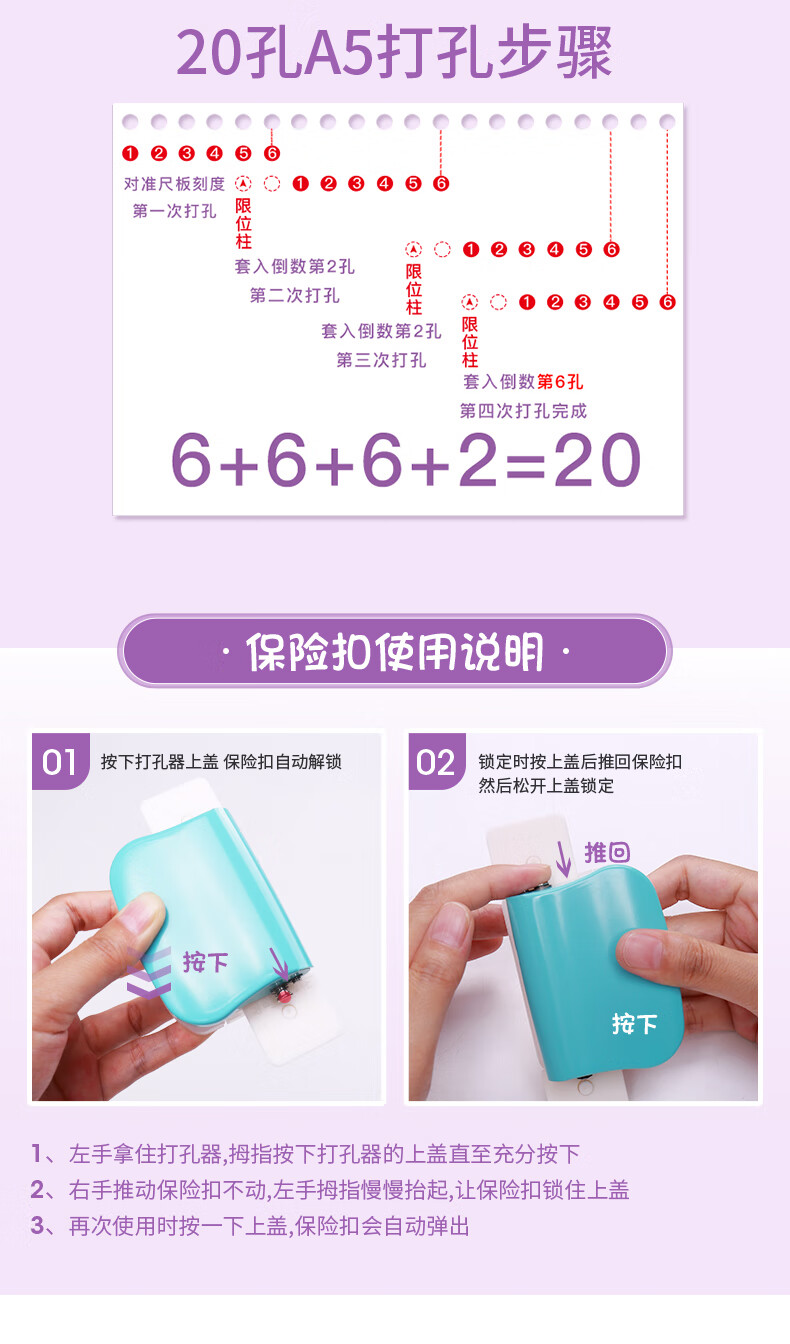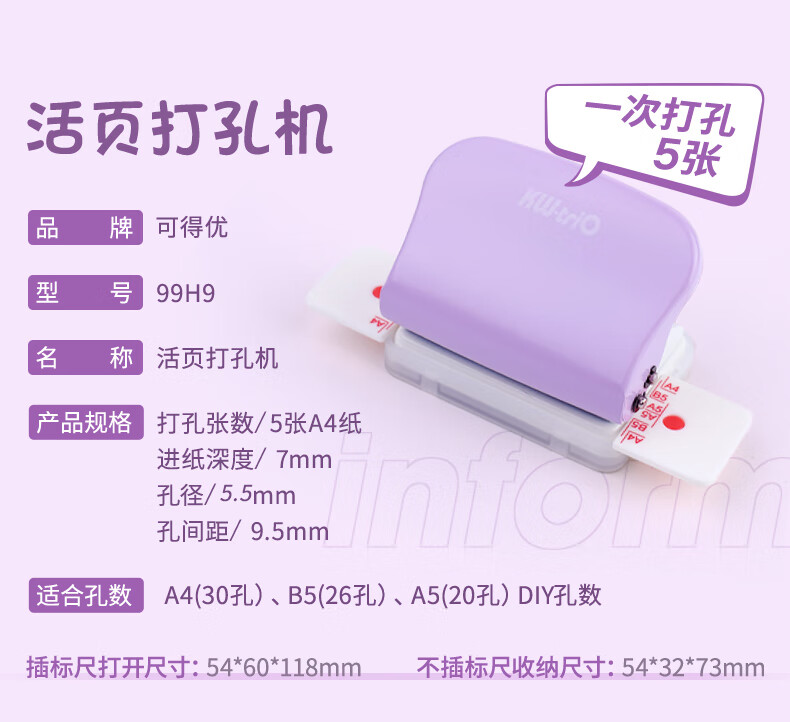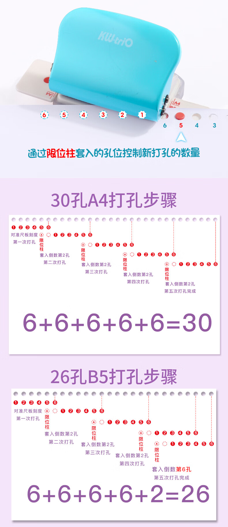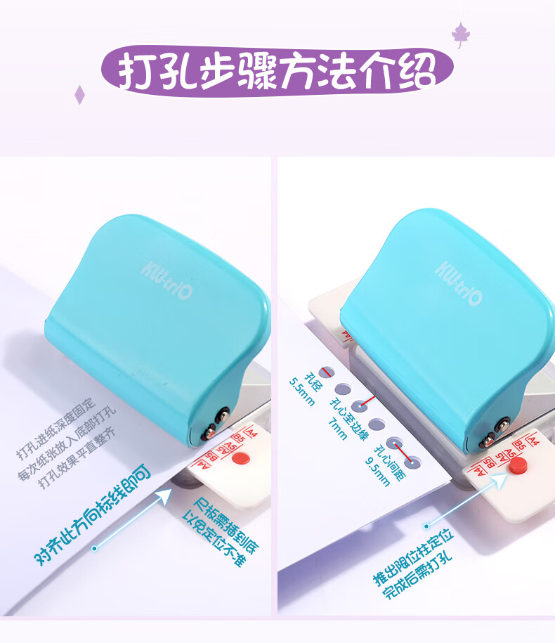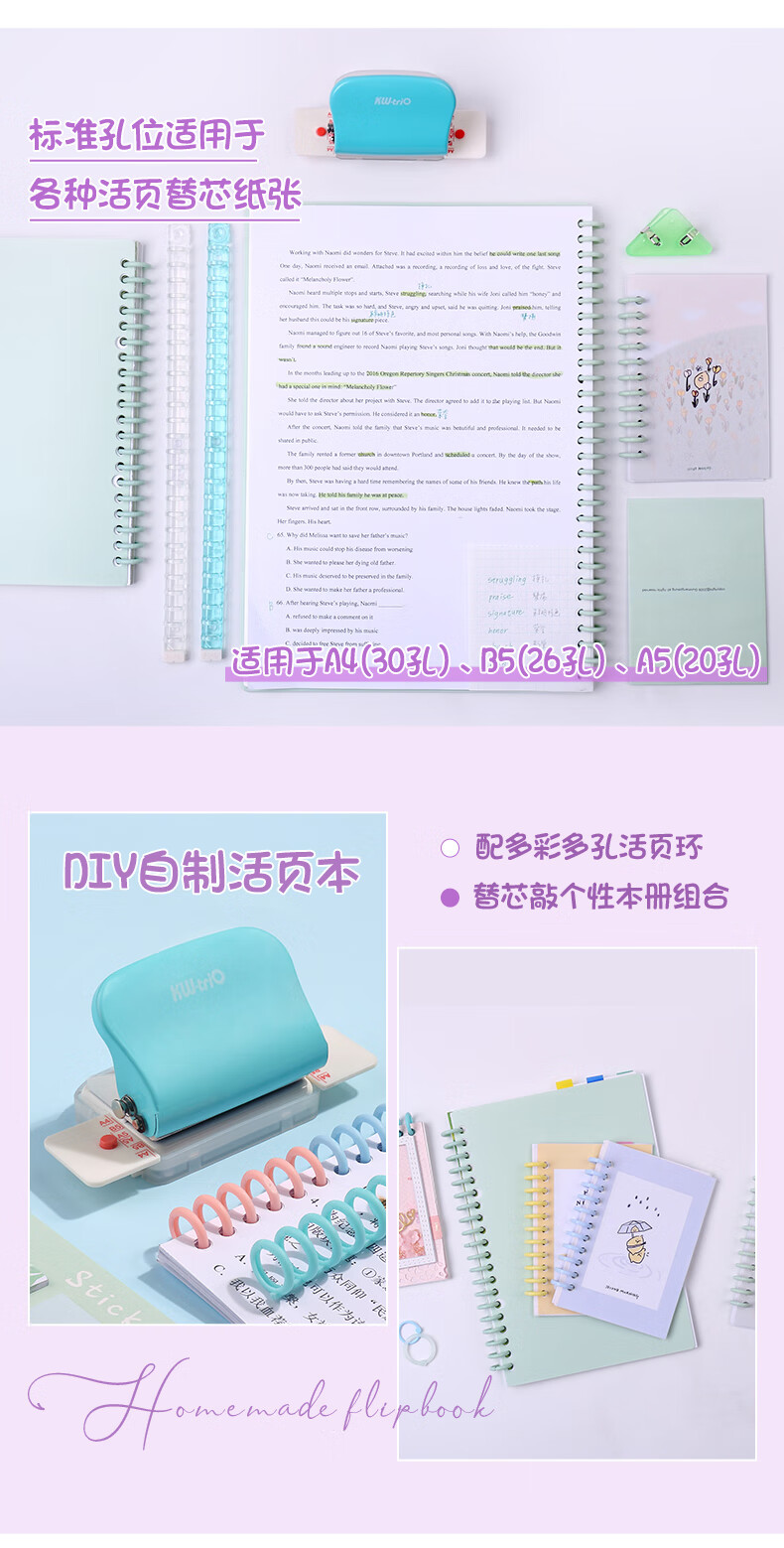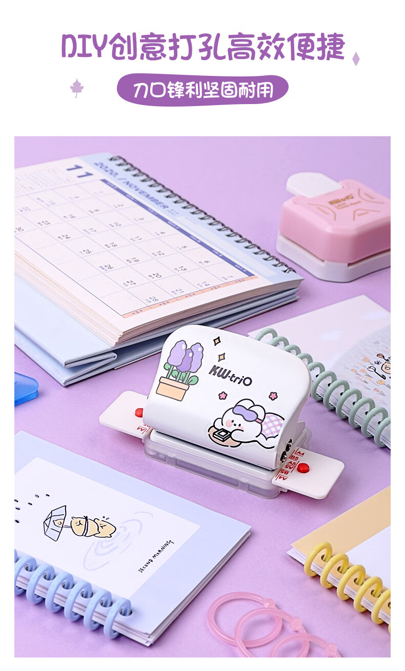 可得优A520/B526/A430孔6孔打孔机装订活页本打孔器打孔机打洞器活页打孔器多孔打孔器活页环 【限量款】卡通款
